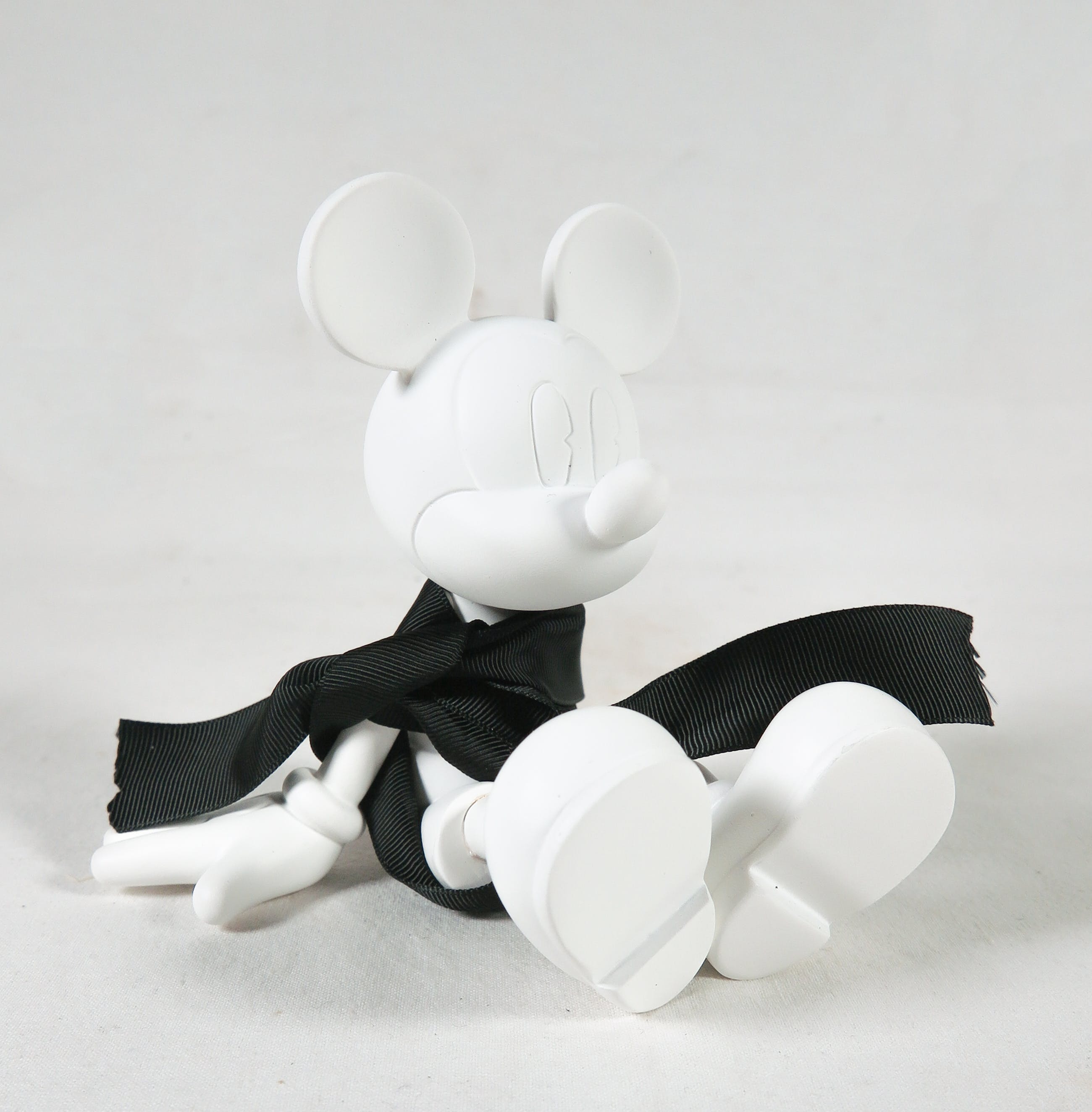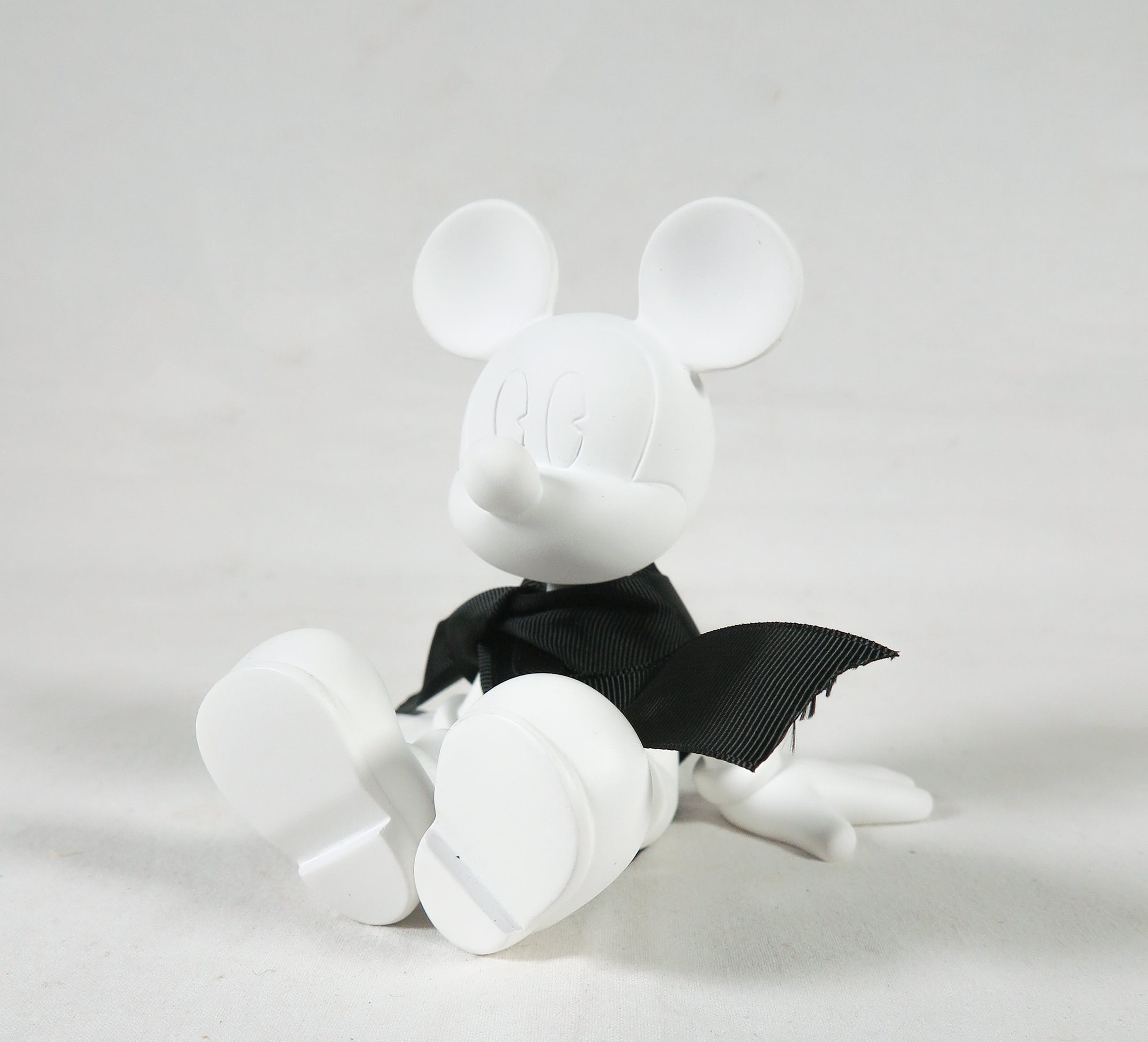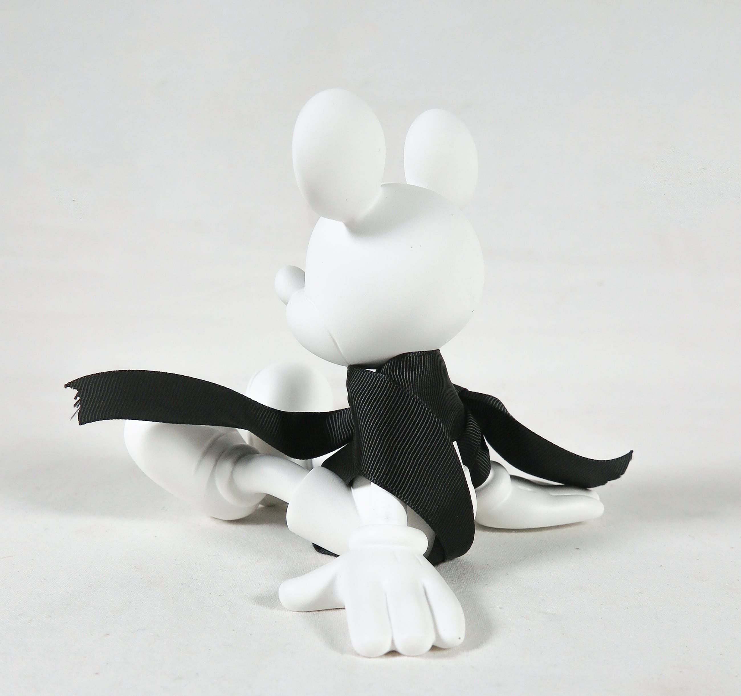 Mickey Mouse is een van de meest iconische figuren van onze generatie, die al bijna een eeuw lang de geest van een generatie verheft. Het iconische stuk is ontworpen om Mickey in een ontspannen, speelse staat te presenteren. Hij zit comfortabel achterover leunend, met zijn benen gestrekt, ondersteund door zijn handen op de grond achter hem.