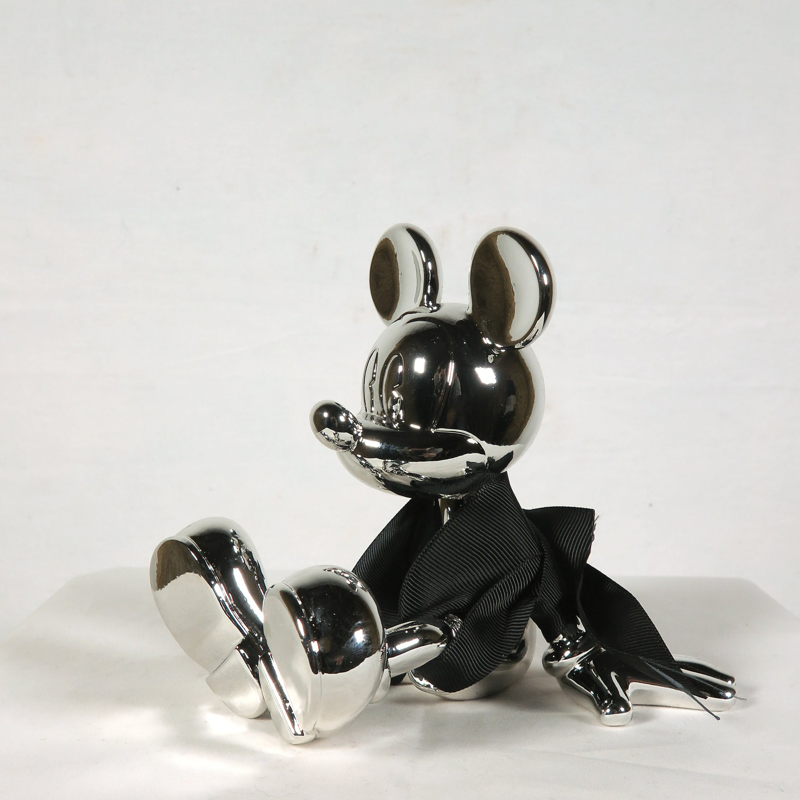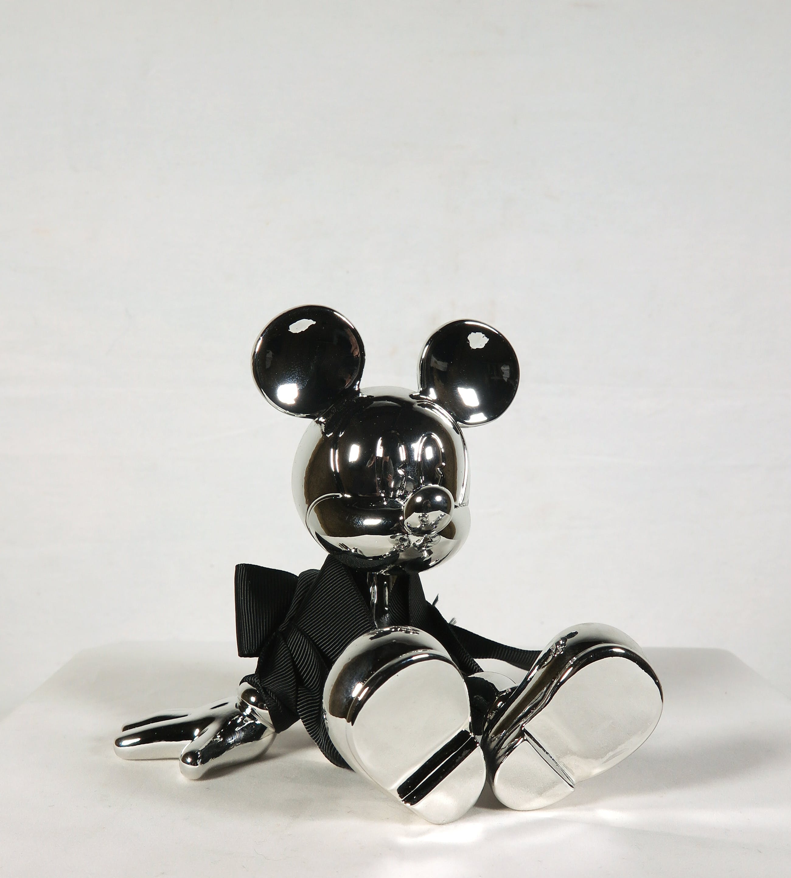 Mickey Mouse is een van de meest iconische figuren van onze generatie, die al bijna een eeuw lang de geest van een generatie verheft. Het iconische stuk is ontworpen om Mickey in een ontspannen, speelse staat te presenteren. Hij zit comfortabel achterover leunend, met zijn benen gestrekt, ondersteund door zijn handen op de grond achter hem.