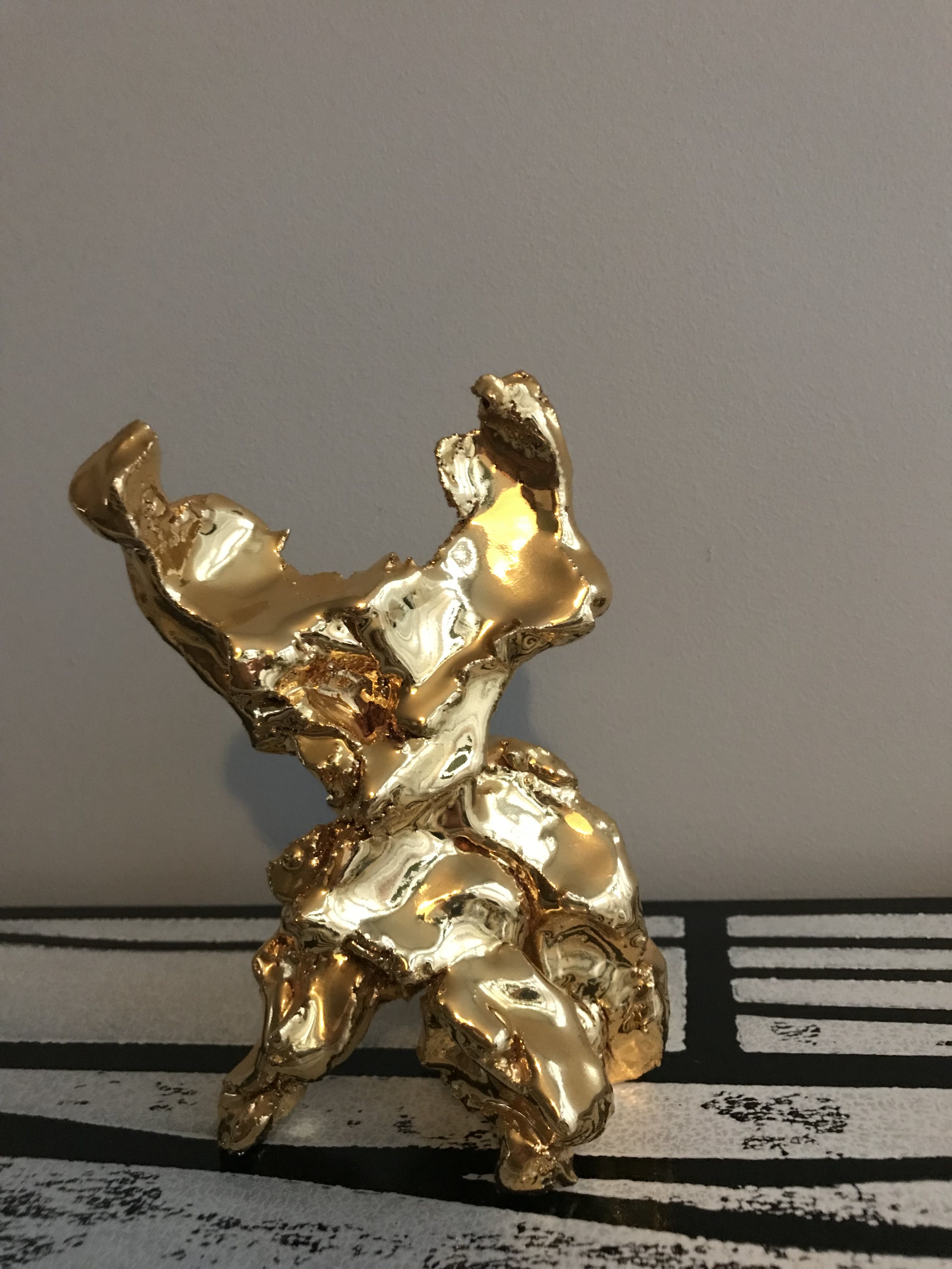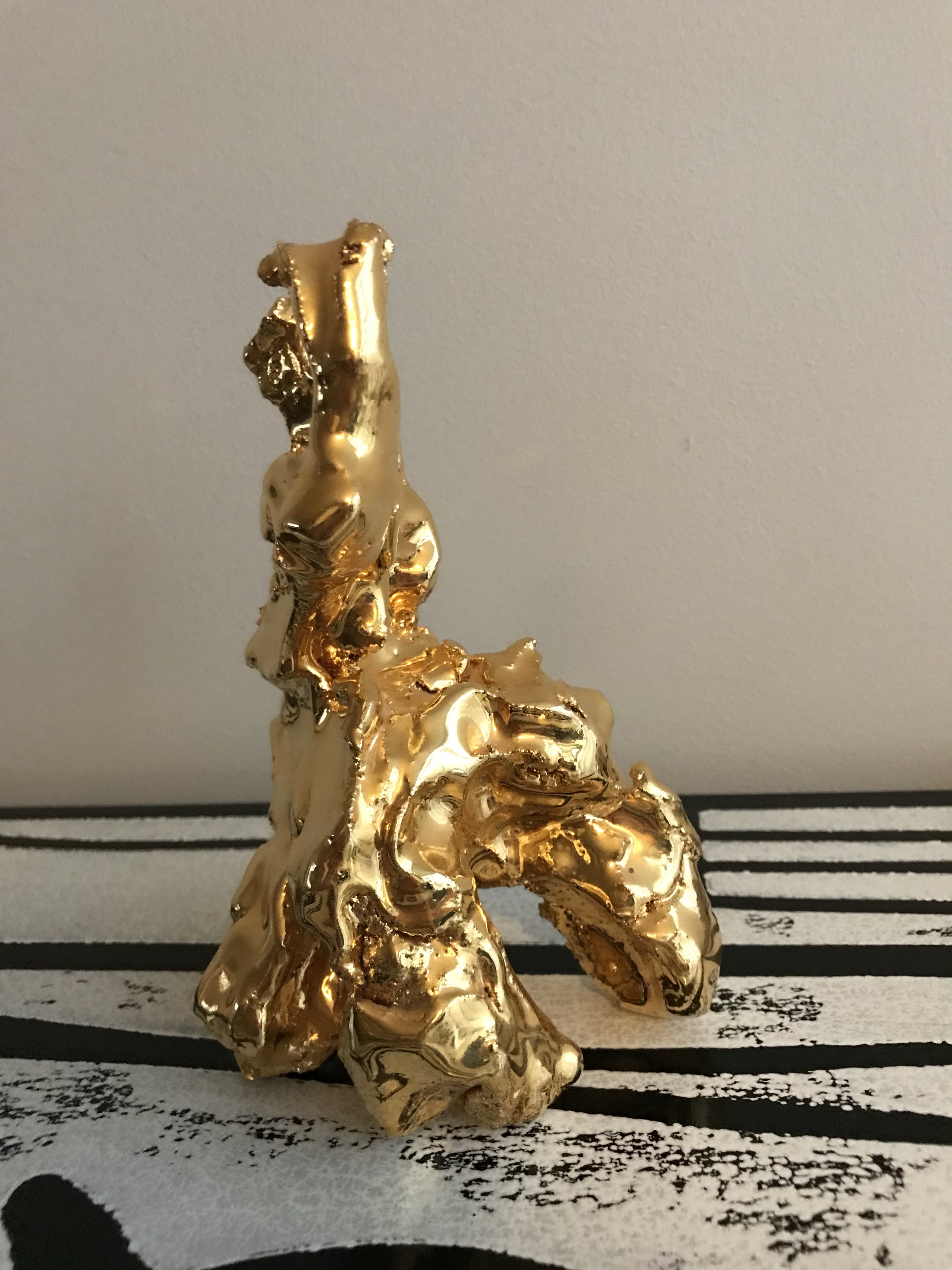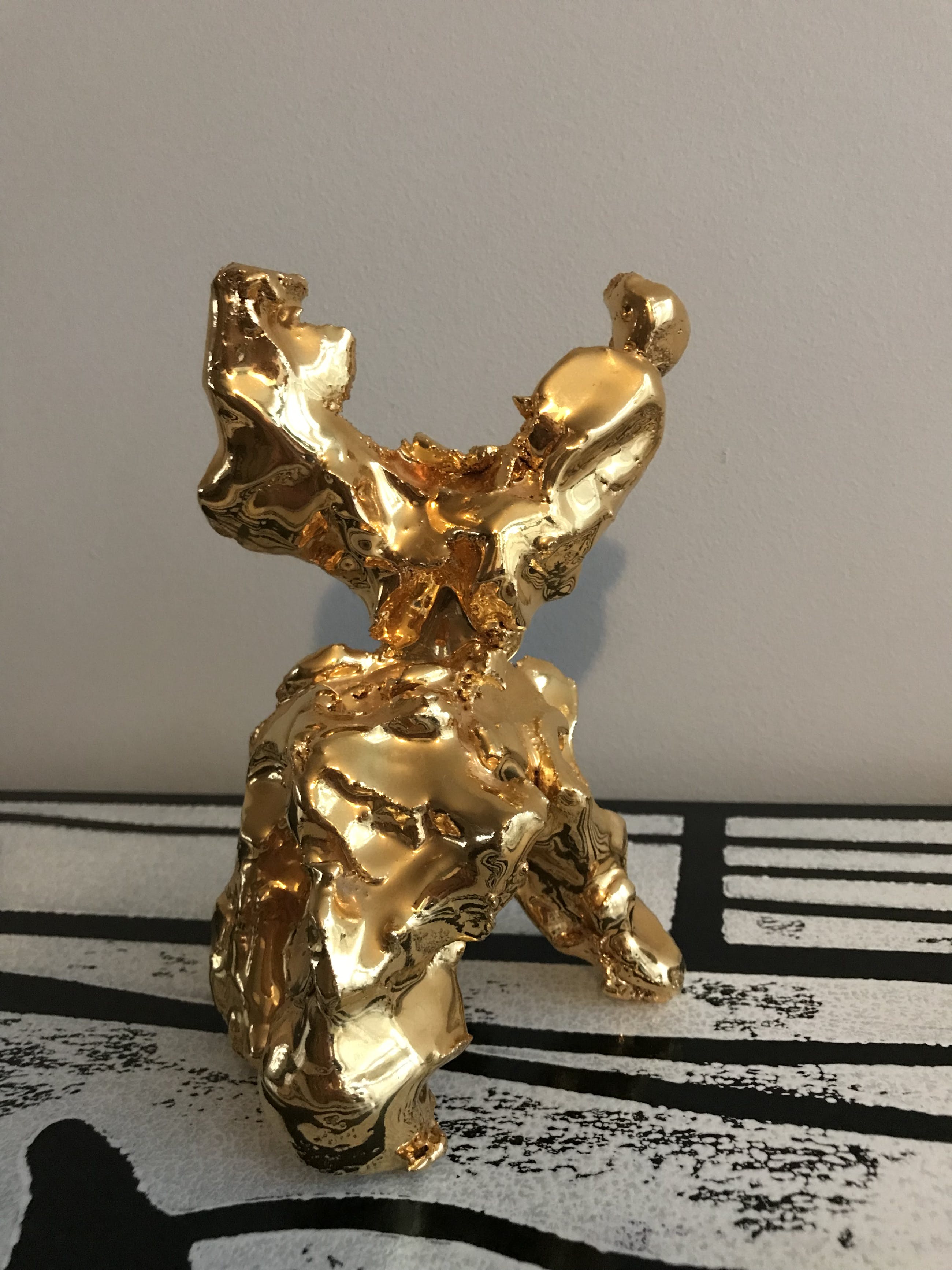 Originele One Minute Sculpture van Marcel Wanders, keramiek bekleed met bladgoud. Afmetingen ongeveer 18 cm hoog en 12 cm breed, gewicht tussen 1.5 en 2 kg. Eerste eigenaar