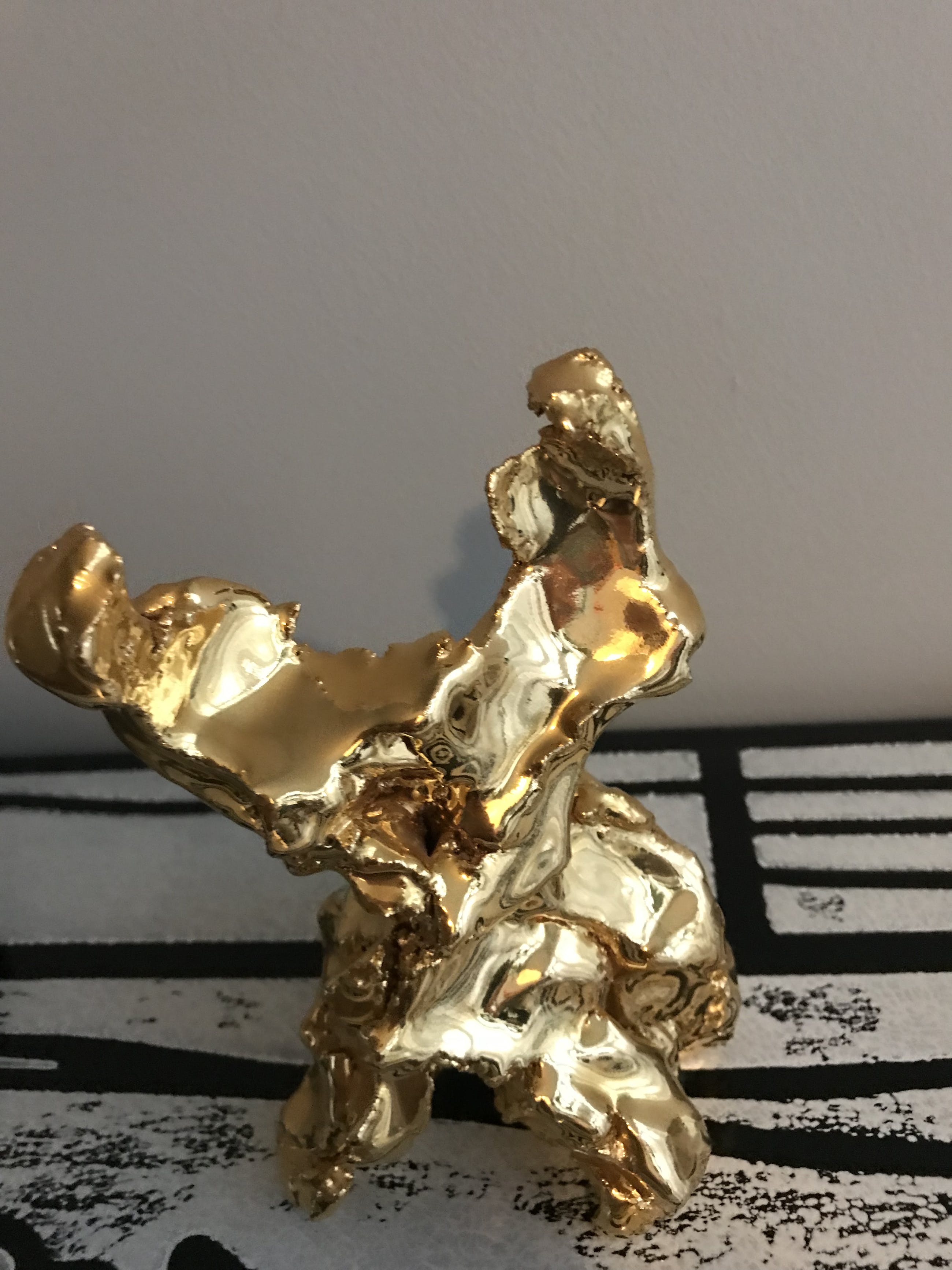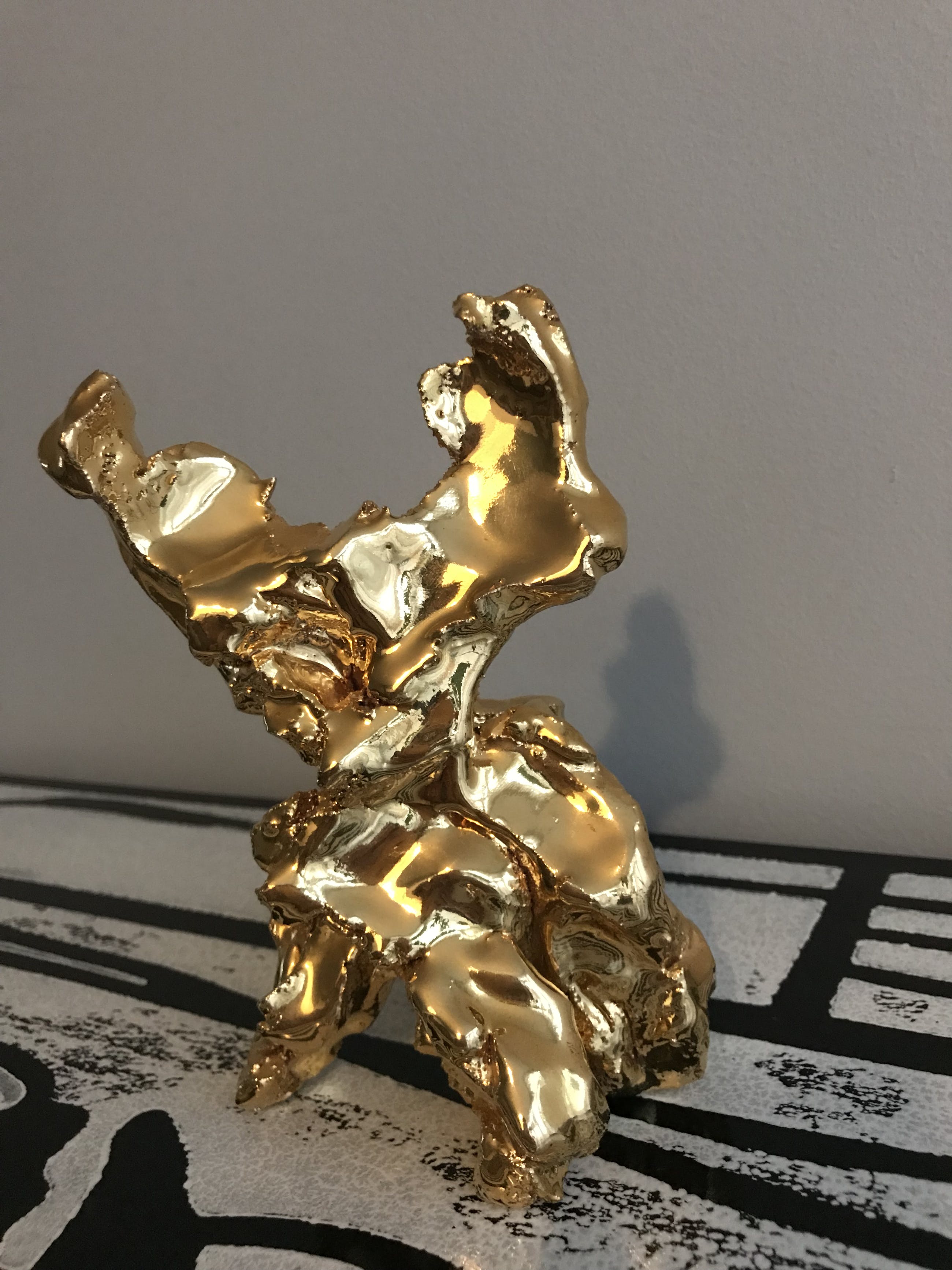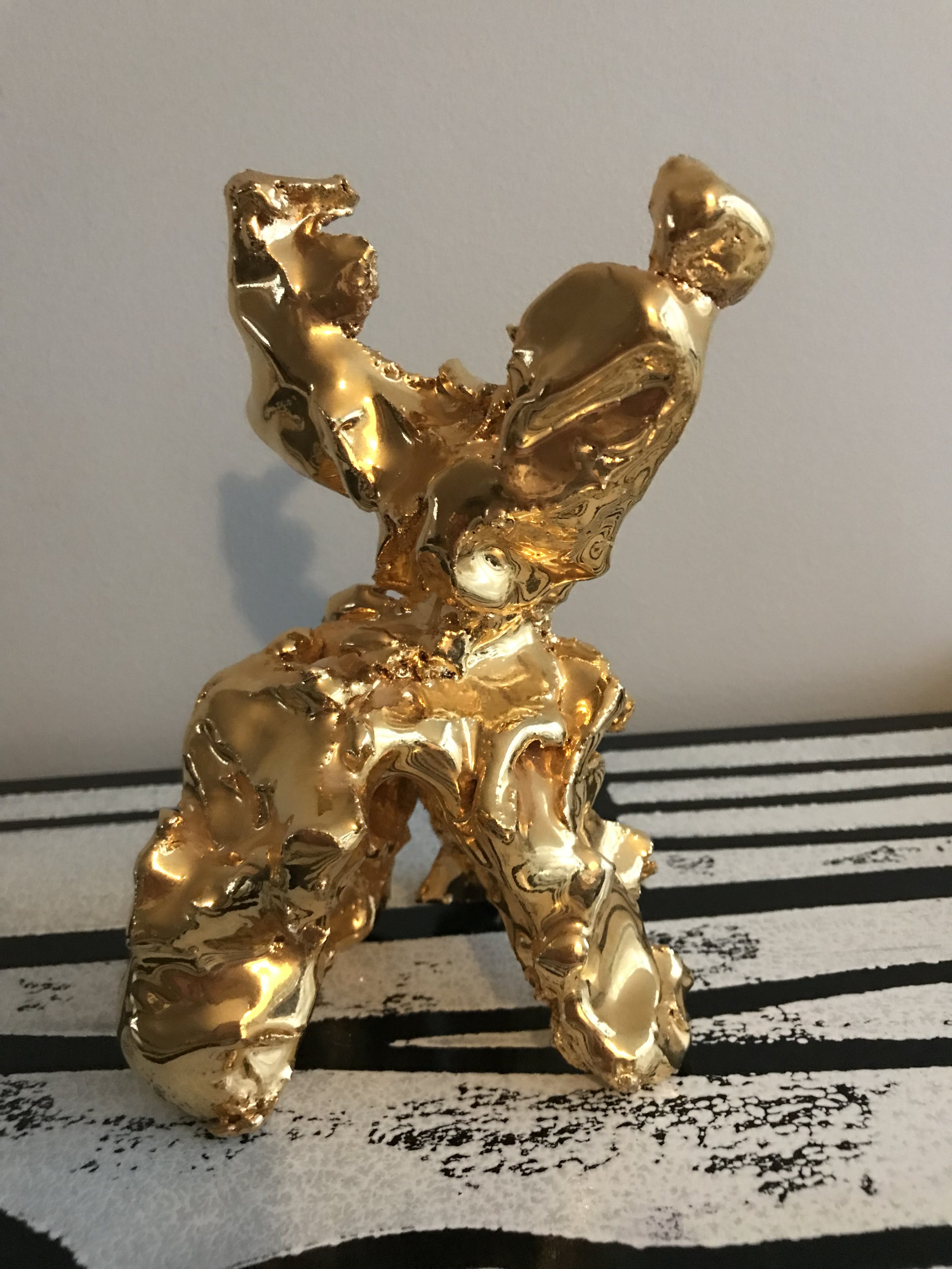 Originele One Minute Sculpture van Marcel Wanders, keramiek bekleed met bladgoud. Afmetingen ongeveer 18 cm hoog en 12 cm breed, gewicht tussen 1.5 en 2 kg. Eerste eigenaar