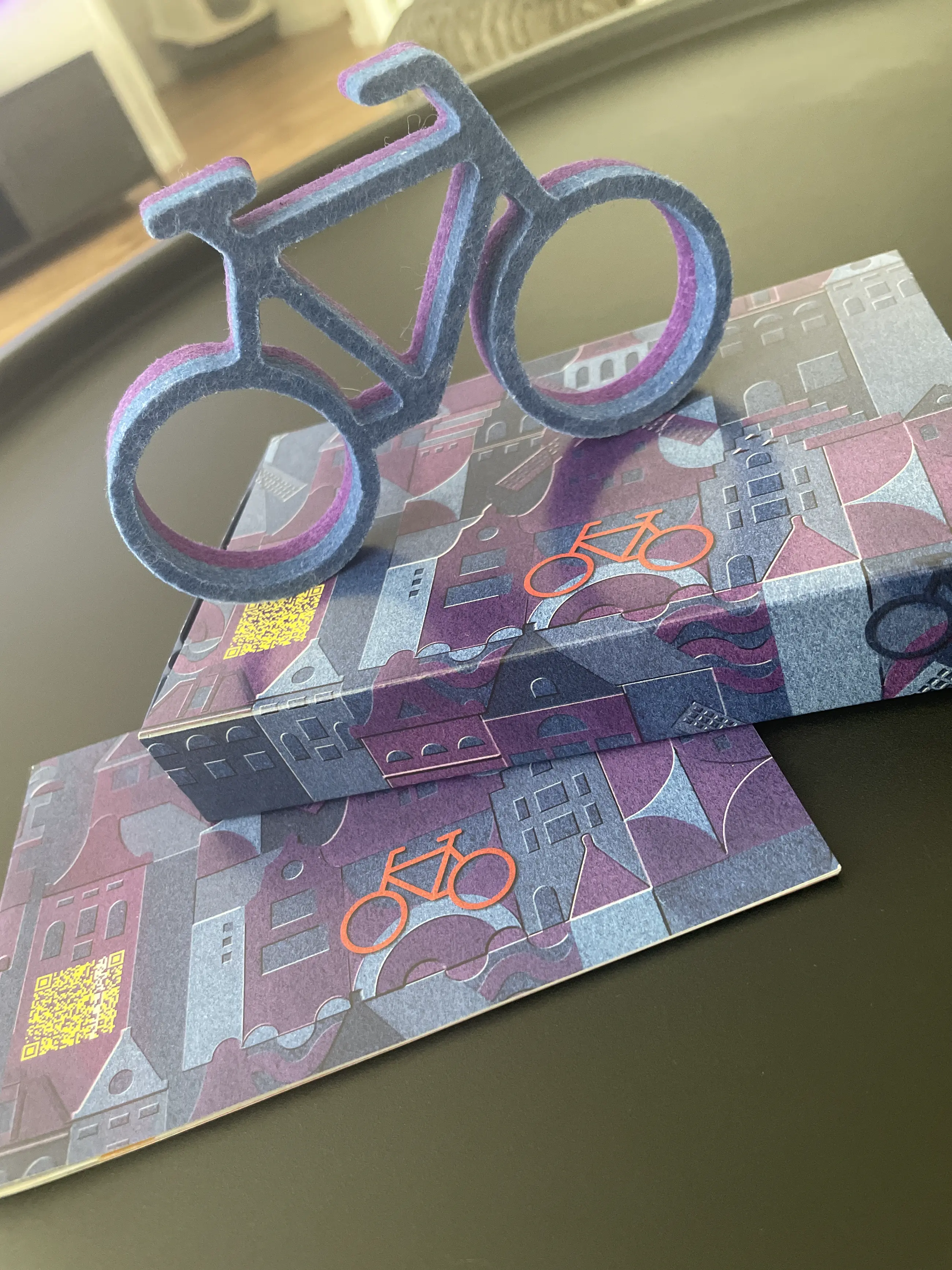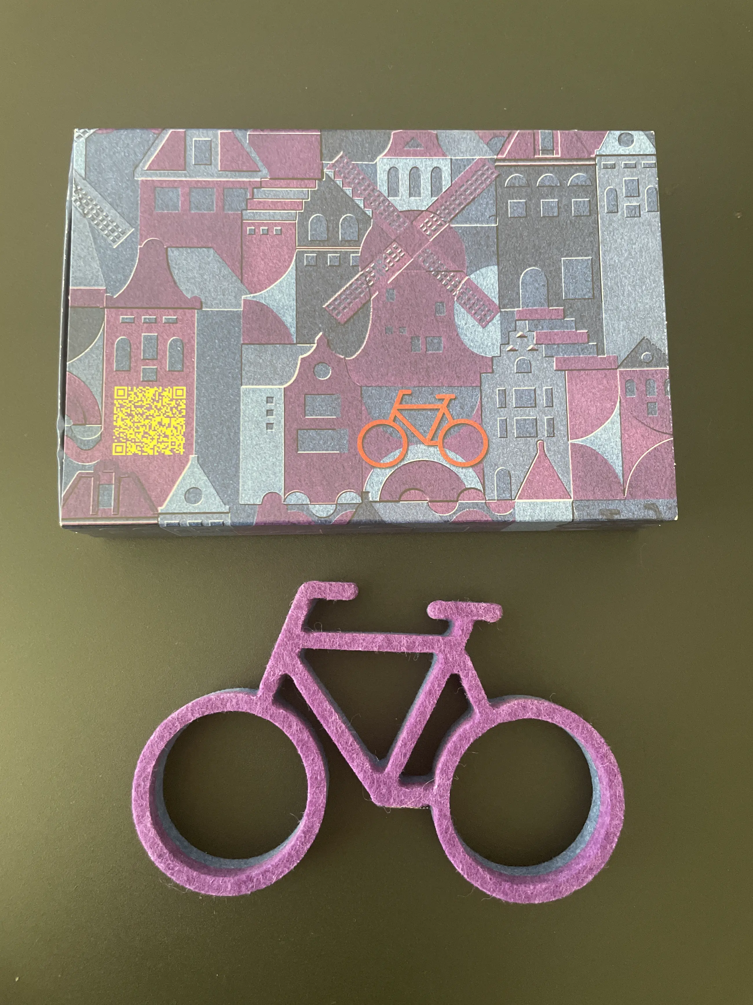 Deze fiets is gemaakt van PET-vilt, van gerecycled plastic flessen. PET is een duurzaam materiaal dat in veel verschillende kleuren verkrijgbaar is. Deze editie is ontworpen namens Randstad Groep Nederland. In deze combinatie van regenboogkleuren symboliseert het onze inzet voor een eerlijke en inclusieve arbeidsmarkt voor iedereen.