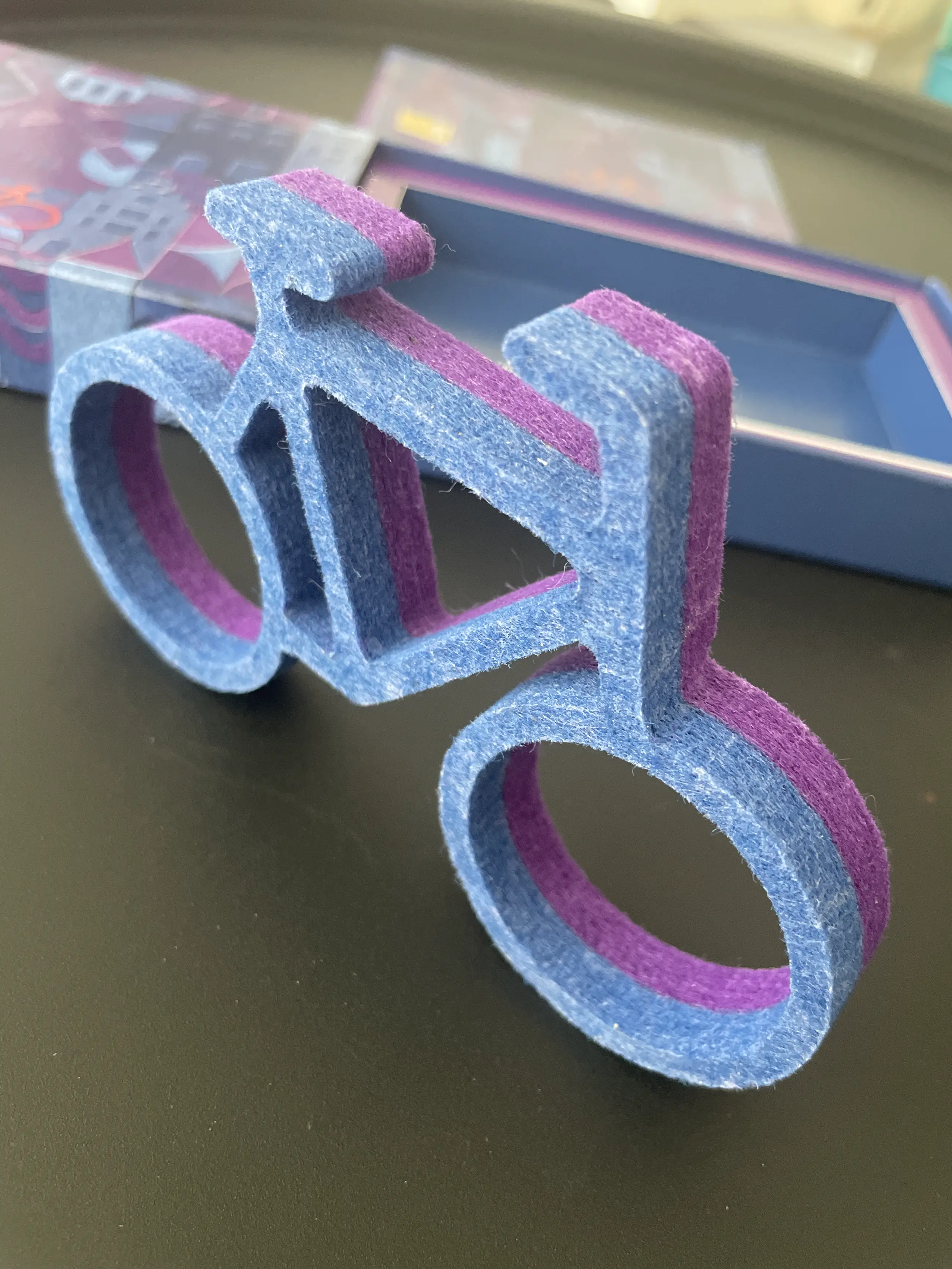 Deze fiets is gemaakt van PET-vilt, van gerecycled plastic flessen. PET is een duurzaam materiaal dat in veel verschillende kleuren verkrijgbaar is.