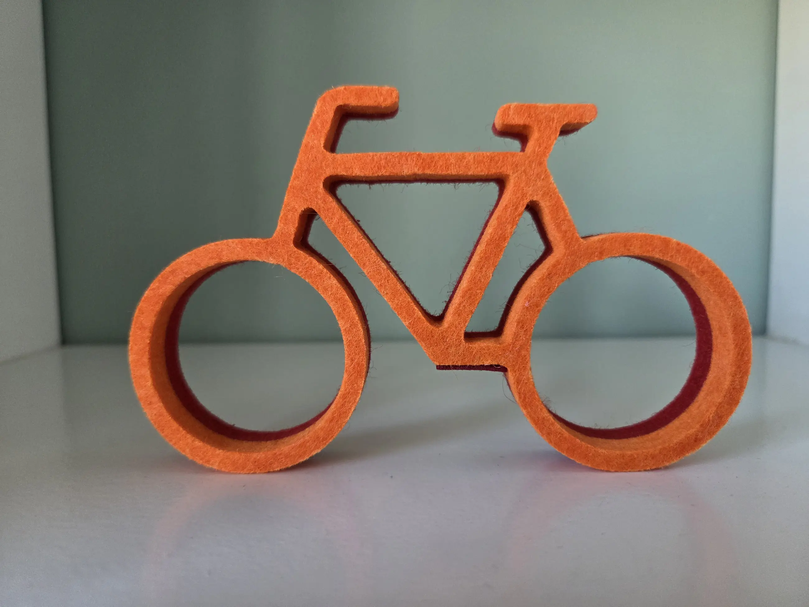 Dit object is een verzamelitem uit de fietscollectie van Marcel Wanders voor World Bicycle Relief. Het betreft een stilistisch ontwerp van een fiets, uitgevoerd in oranje en rood vilt.