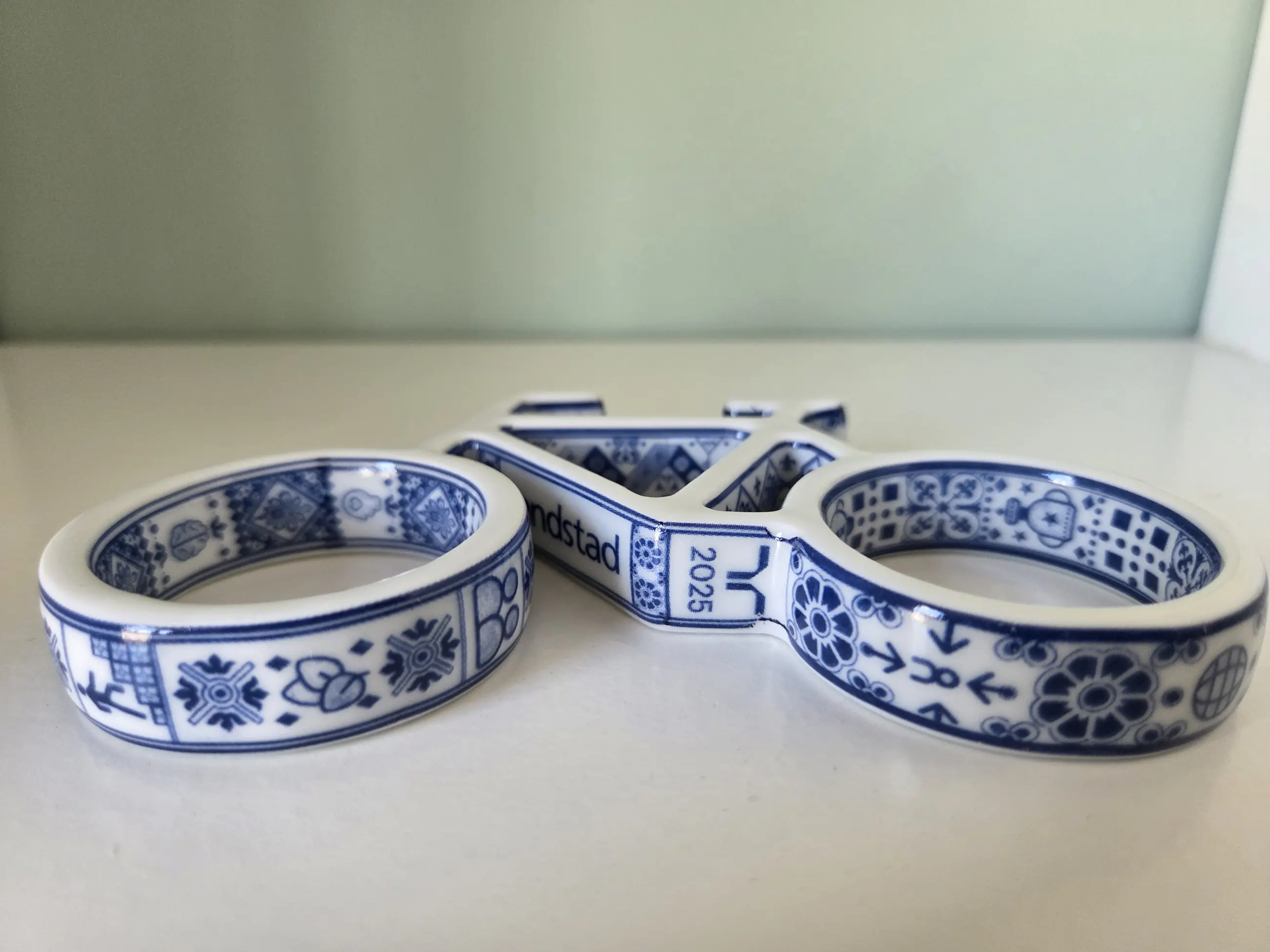 Ontwerp: Sinds 2018 werkt Marcel Wanders jaarlijks samen met Randstad om een uniek ontworpen fietsje te creëren voor werknemers wereldwijd. Deze specifieke 2025-editie is uitgevoerd in een klassieke blauw-witte stijl met een eigentijdse vormgeving.