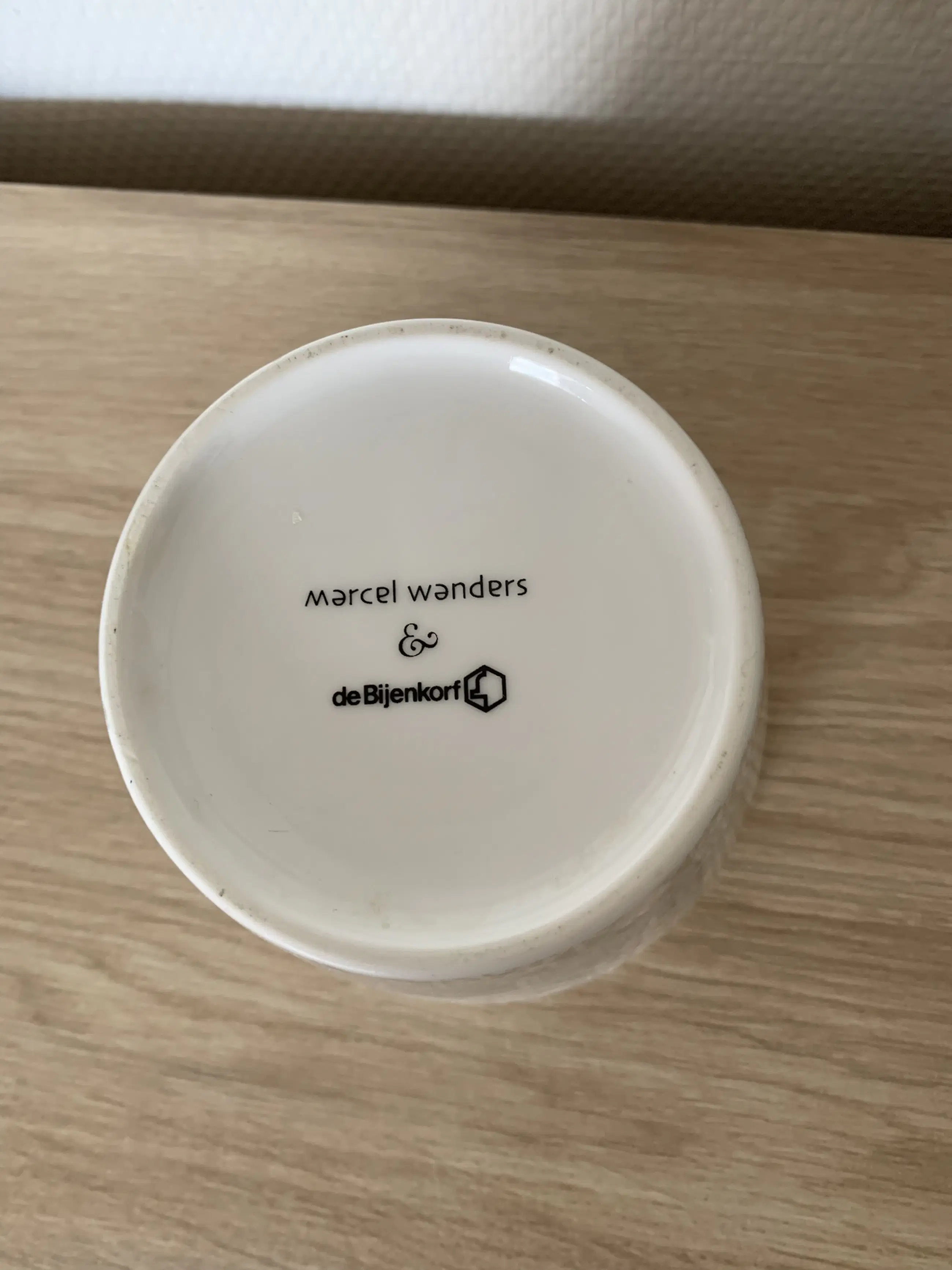 Elegante porseleinen schaal ontworpen door Marcel Wanders voor De Bijenkorf (2008). Het stuk is uitgevoerd met het karakteristieke Bijenkorf-honingraatmotief en verfijnd met een subtiel gouden accent langs de rand. De binnenzijde is geheel glad en wit, zonder decoratie.