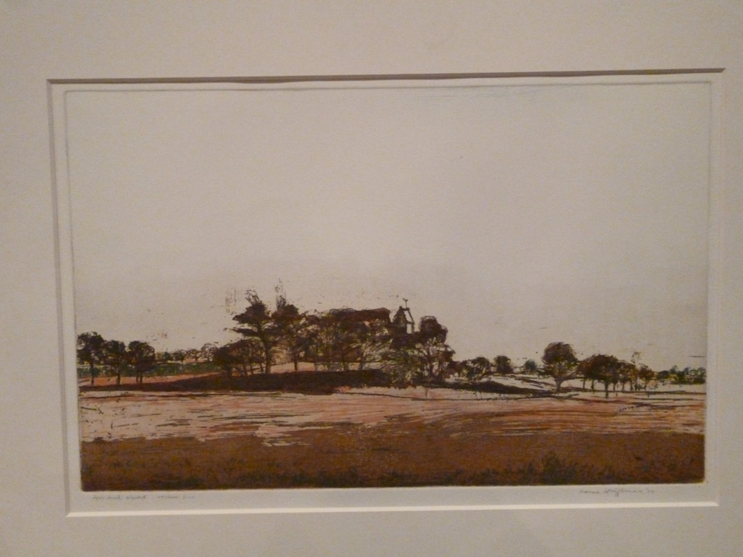 Kleurets met aquatint, getiteld "Oostum", oplage nummer 3/10, potlood gesigneerd.