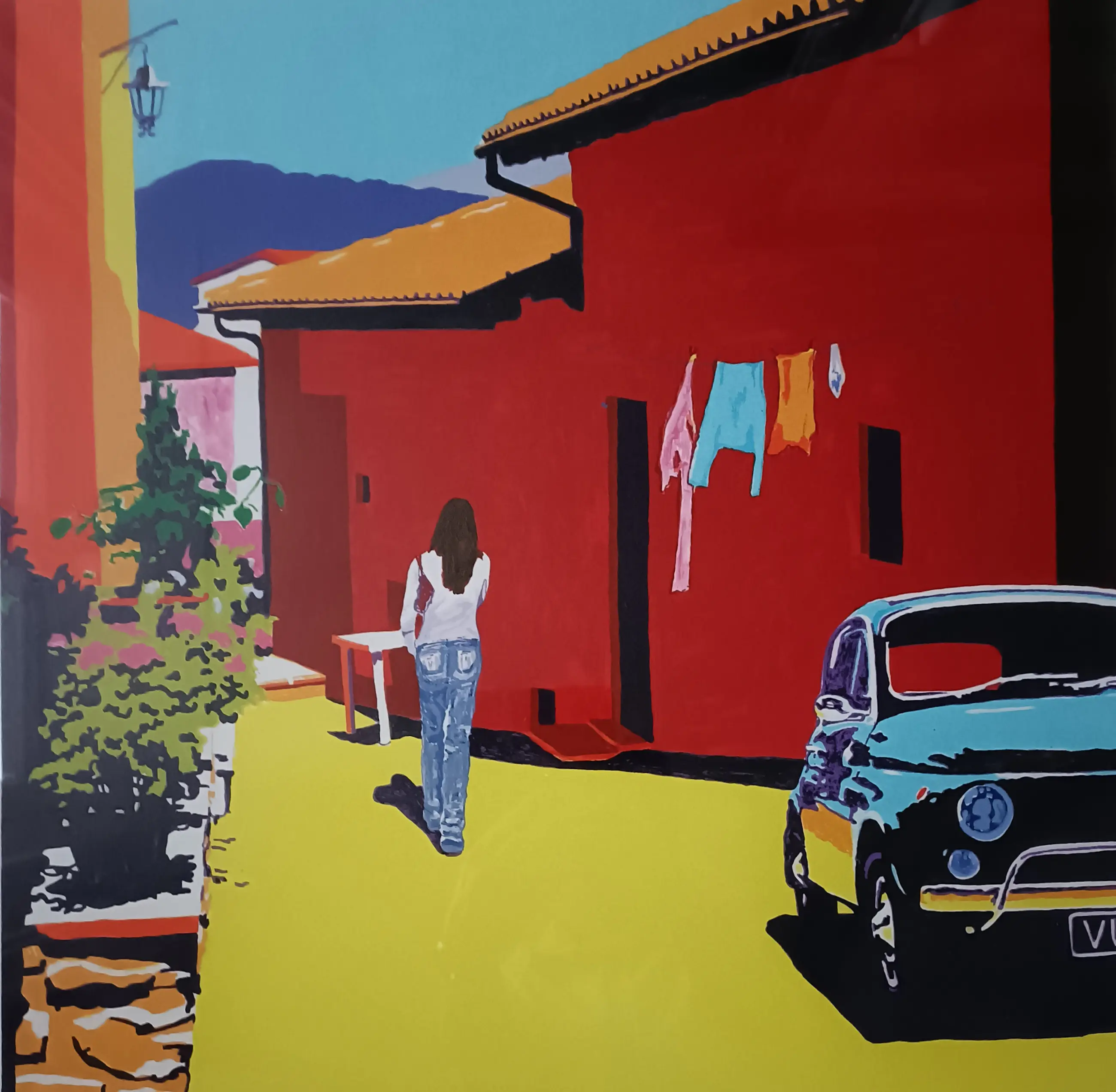 Prachtige, kleurrijke zeefdruk van Marco Kooiman in zijn herkenbare stijl.