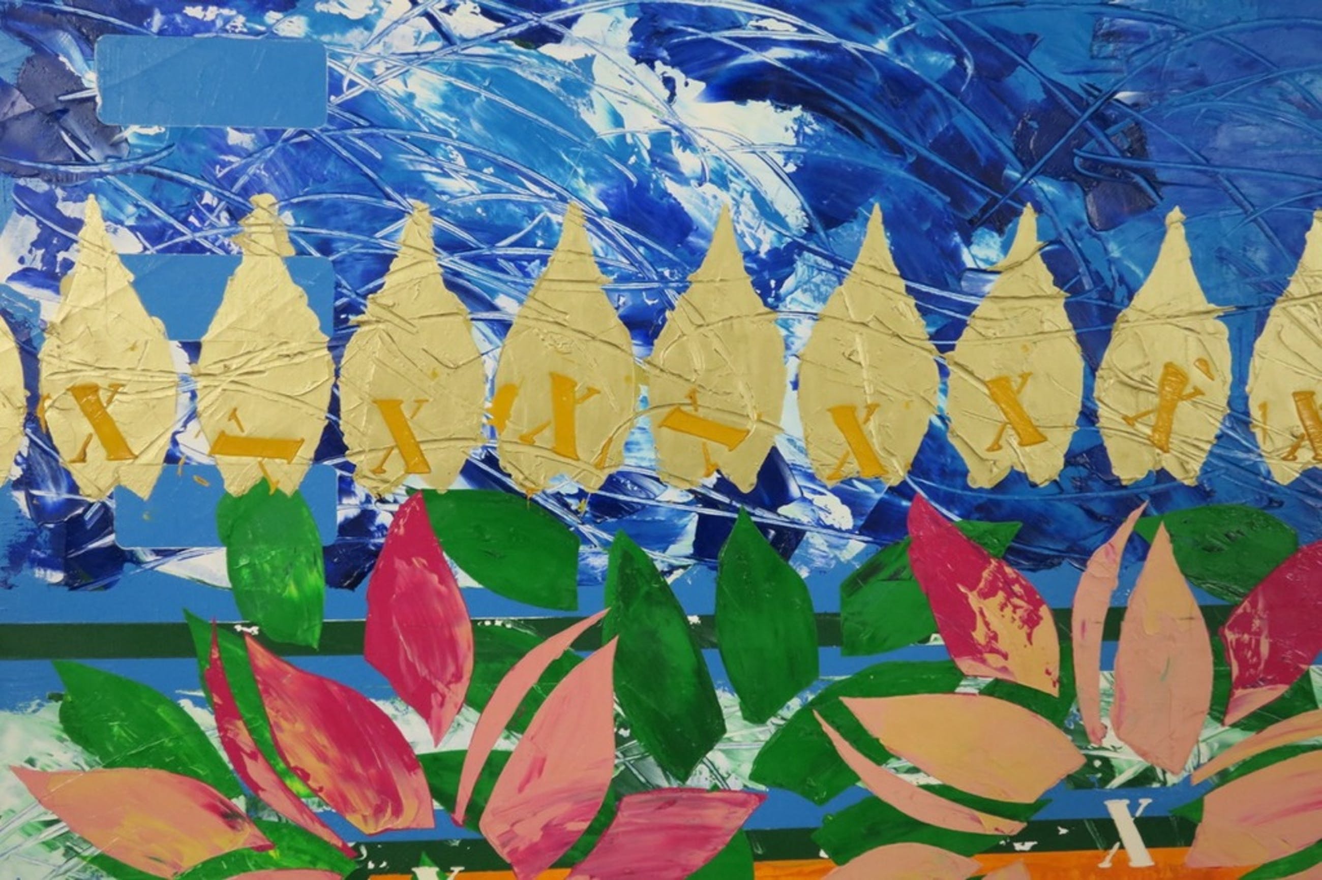 Afmetingen lijst: 150 cm x 150 cm, beeld: 130 cm x 130 cm