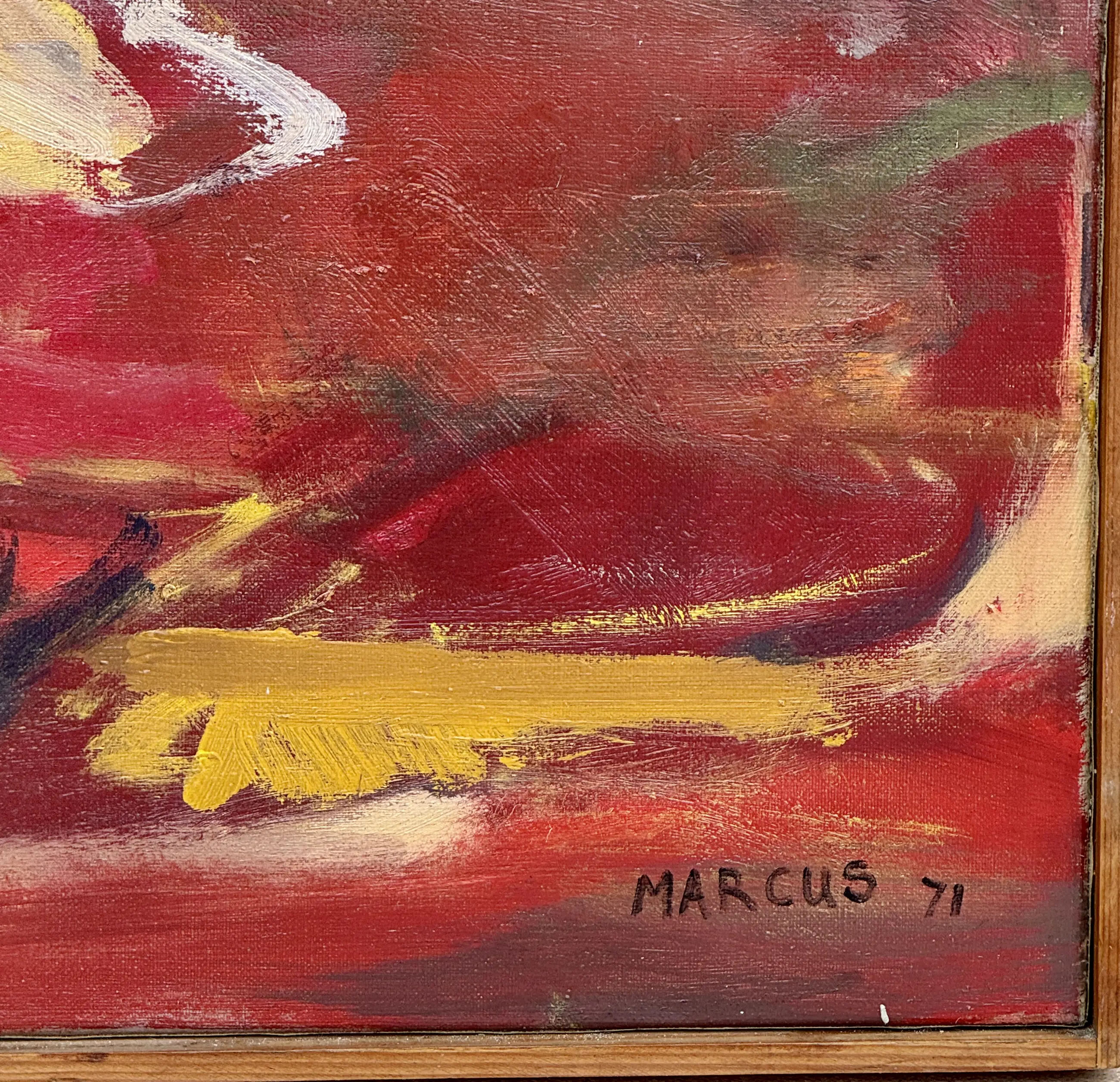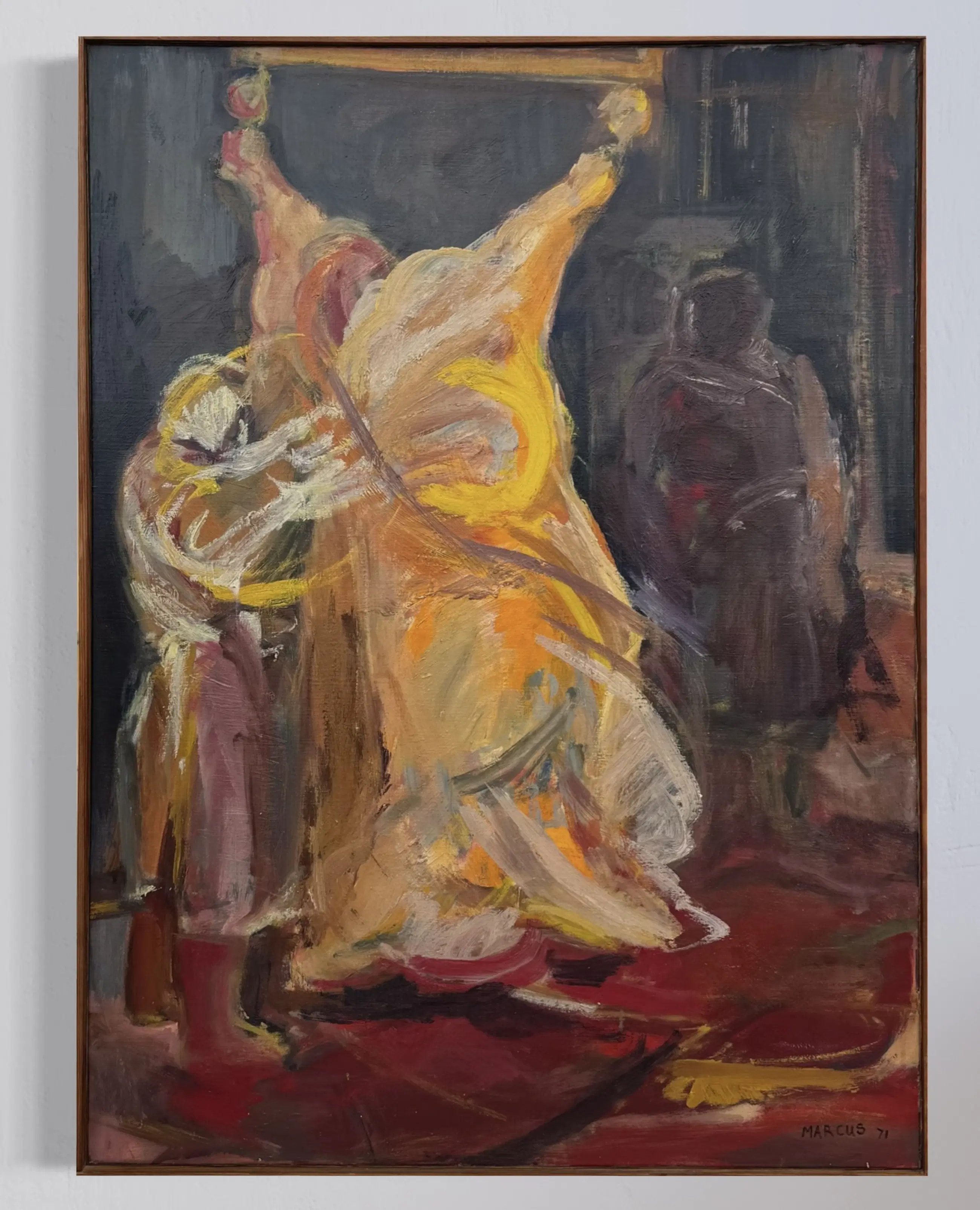 Begin jaren zeventig verkende Marcus de Vestele een schilderstijl vol energie en waarheid, gevoed door het Europese expressionisme en de geest van de Cobra-groep (Appel, Alechinsky, Jorn). Het Rode Offer behoort tot deze periode van creatieve intensiteit, waarin de schilder de gewelddadigheid van de wereld probeerde te vertalen door middel van de vrijheid van gebaren.