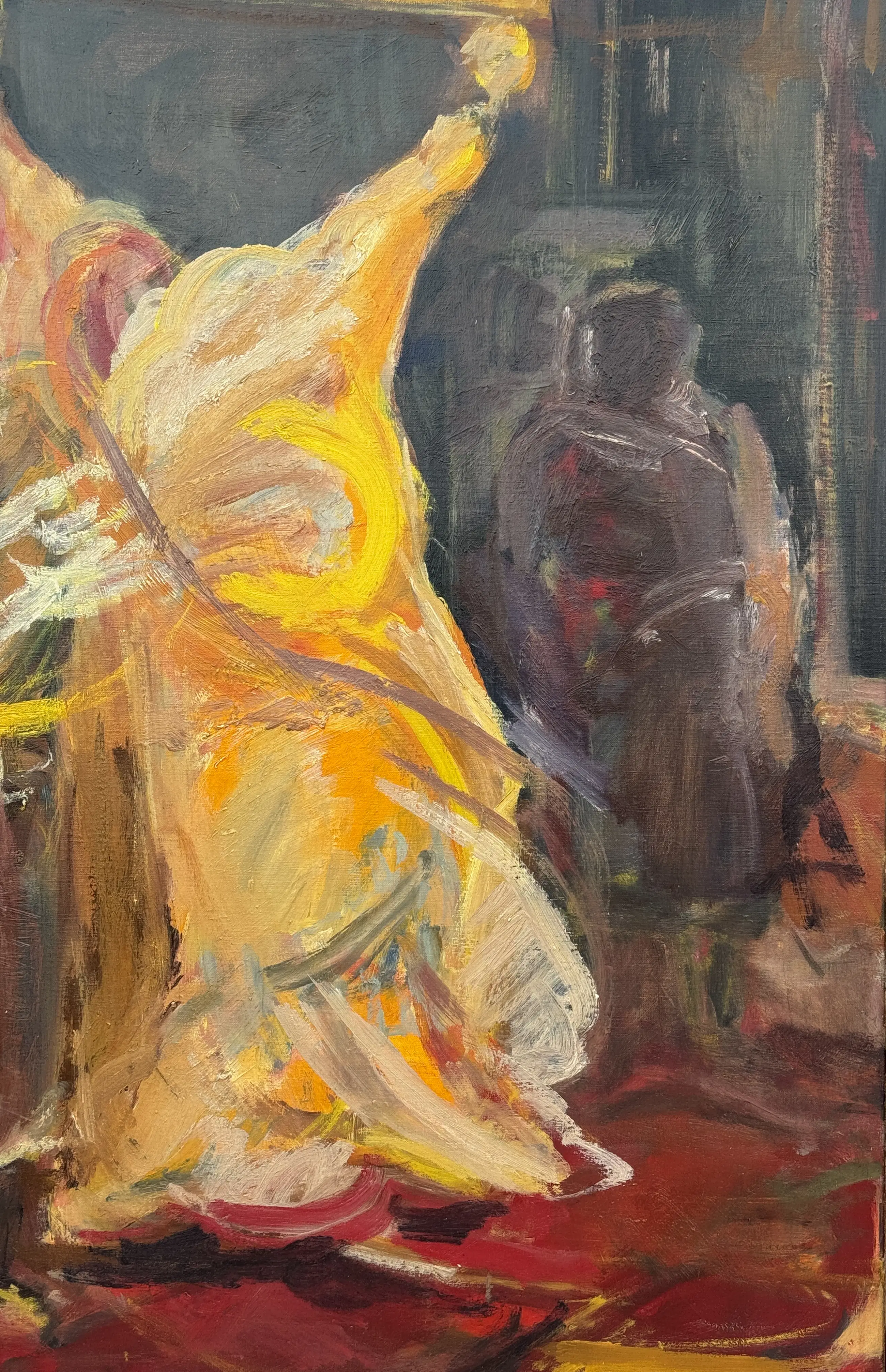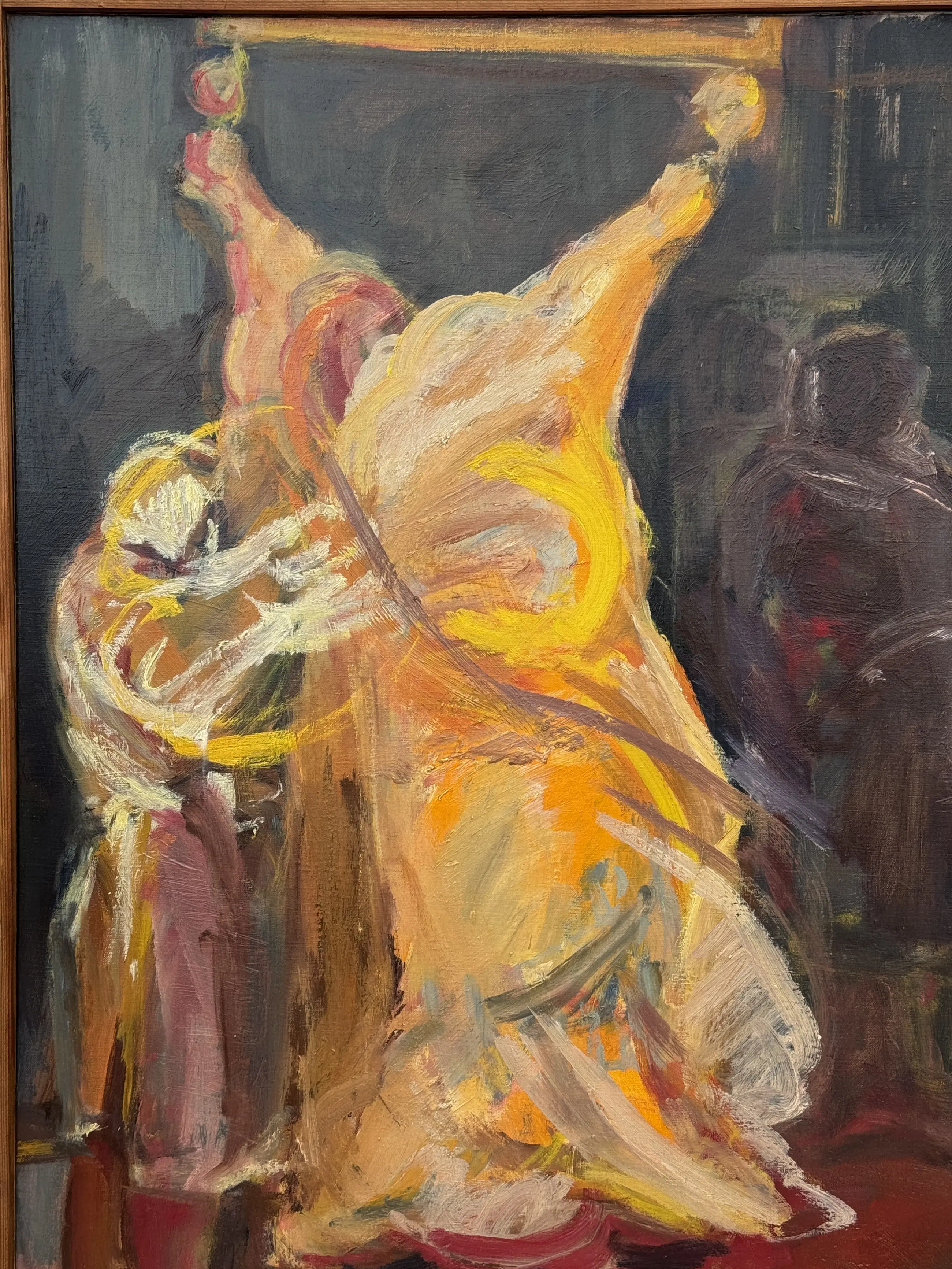 In dit grote olieverfschilderij op doek worden de beeldende elementen vlees, licht en een kreet.
