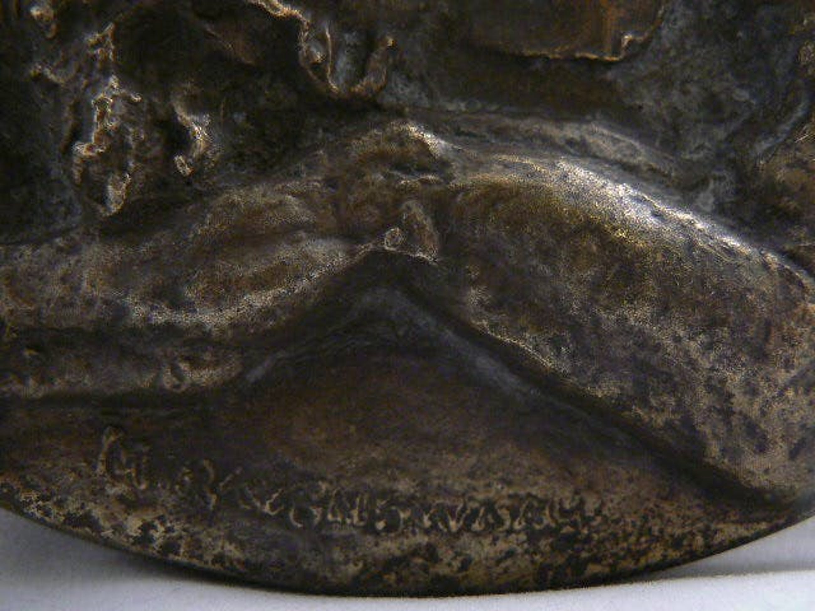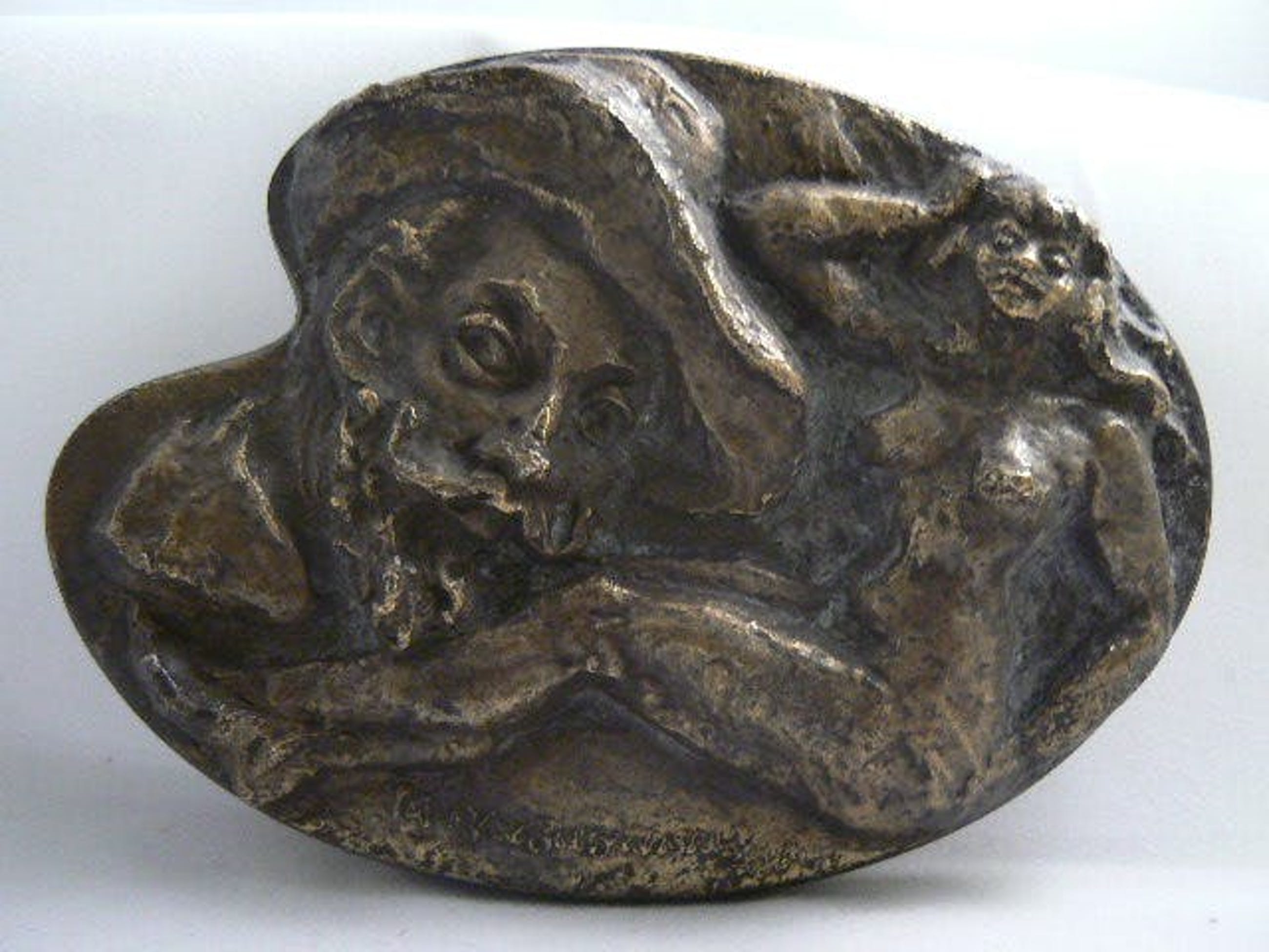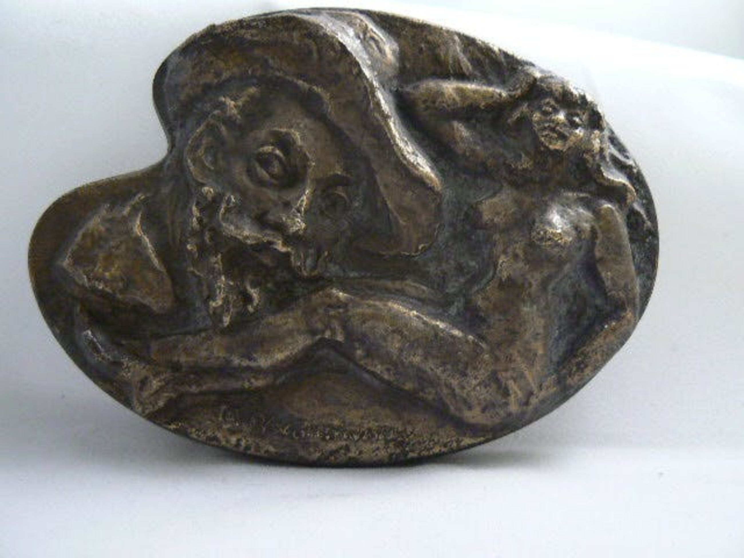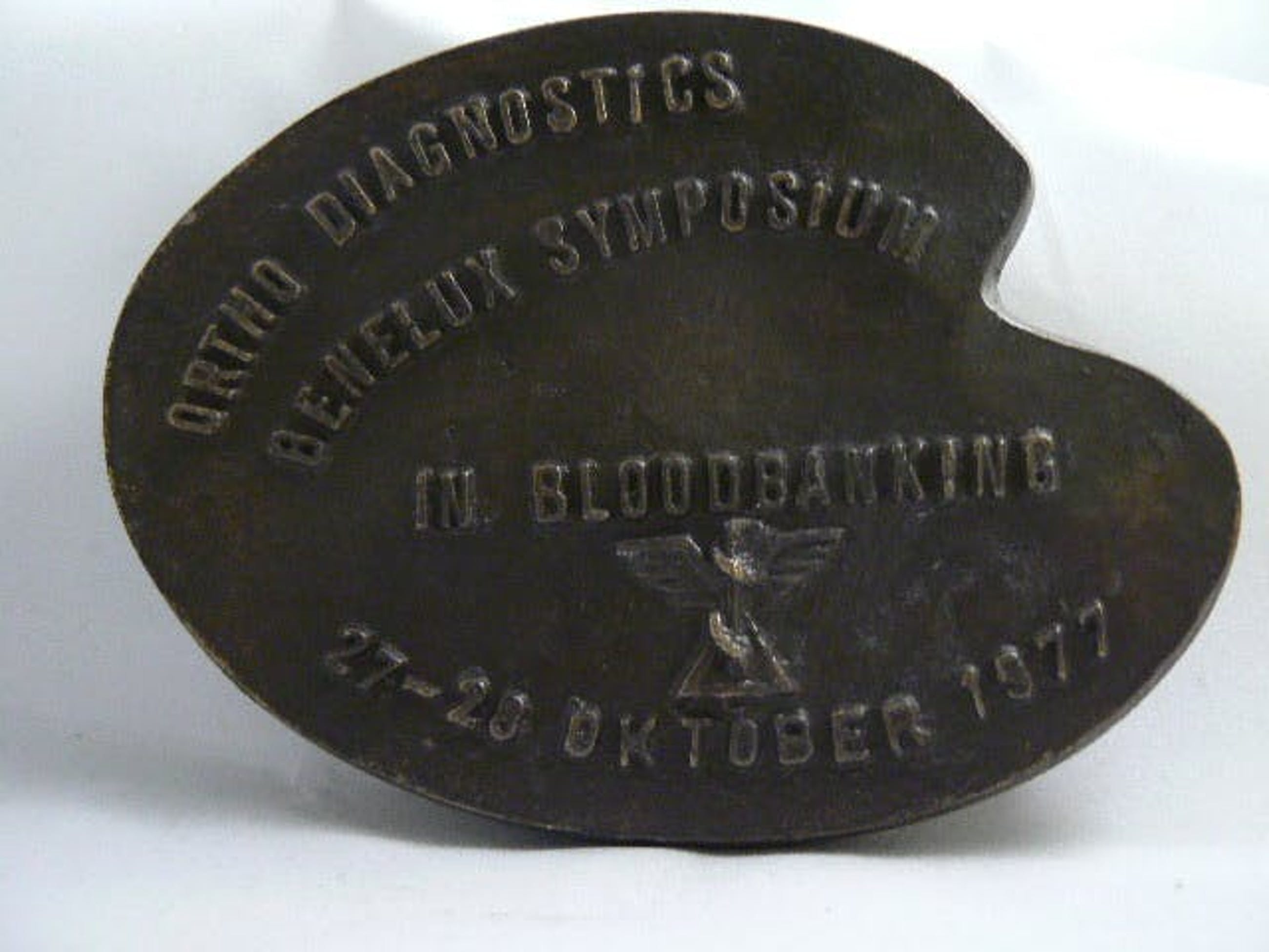 Van Marcus Ravenswaay.Een bronzen Rubens penning uit 1977.In de vorm van een schilderspalet.Met een voorstelling van Rubens met naakt model.