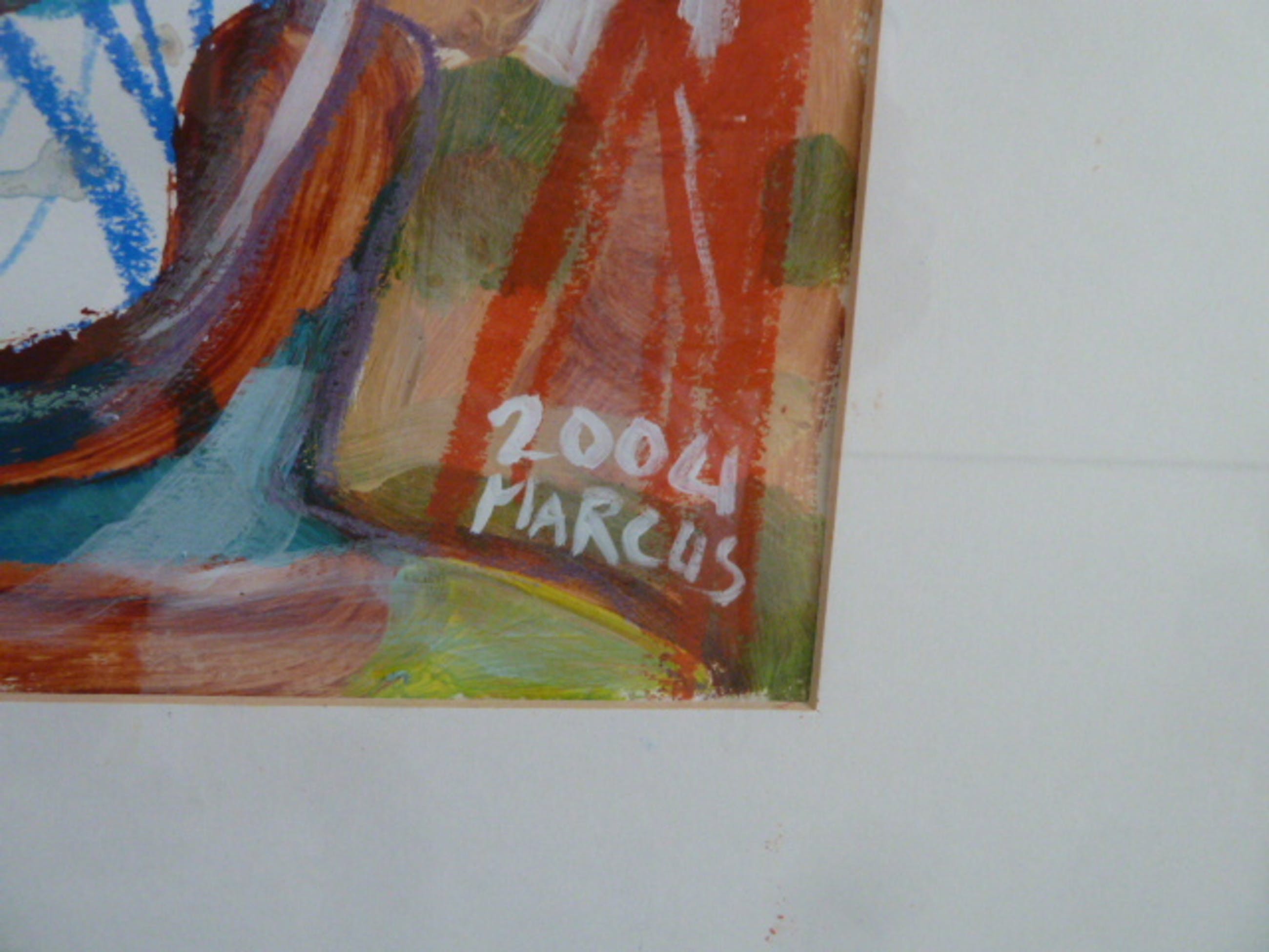 Marcus heeft dit werk op papier gemaakt en verschillende technieken toegepast onder andere krijt en aquarel.