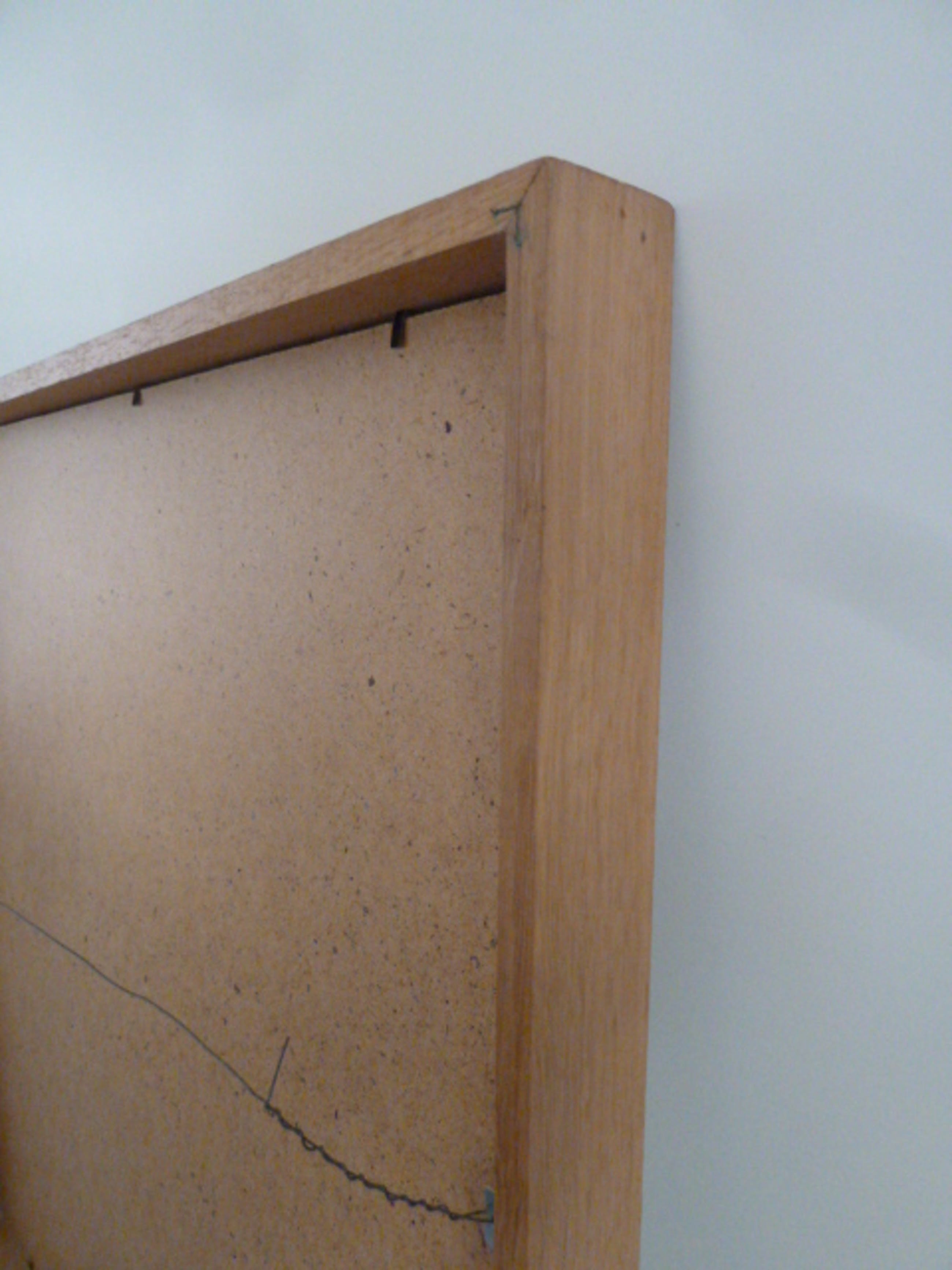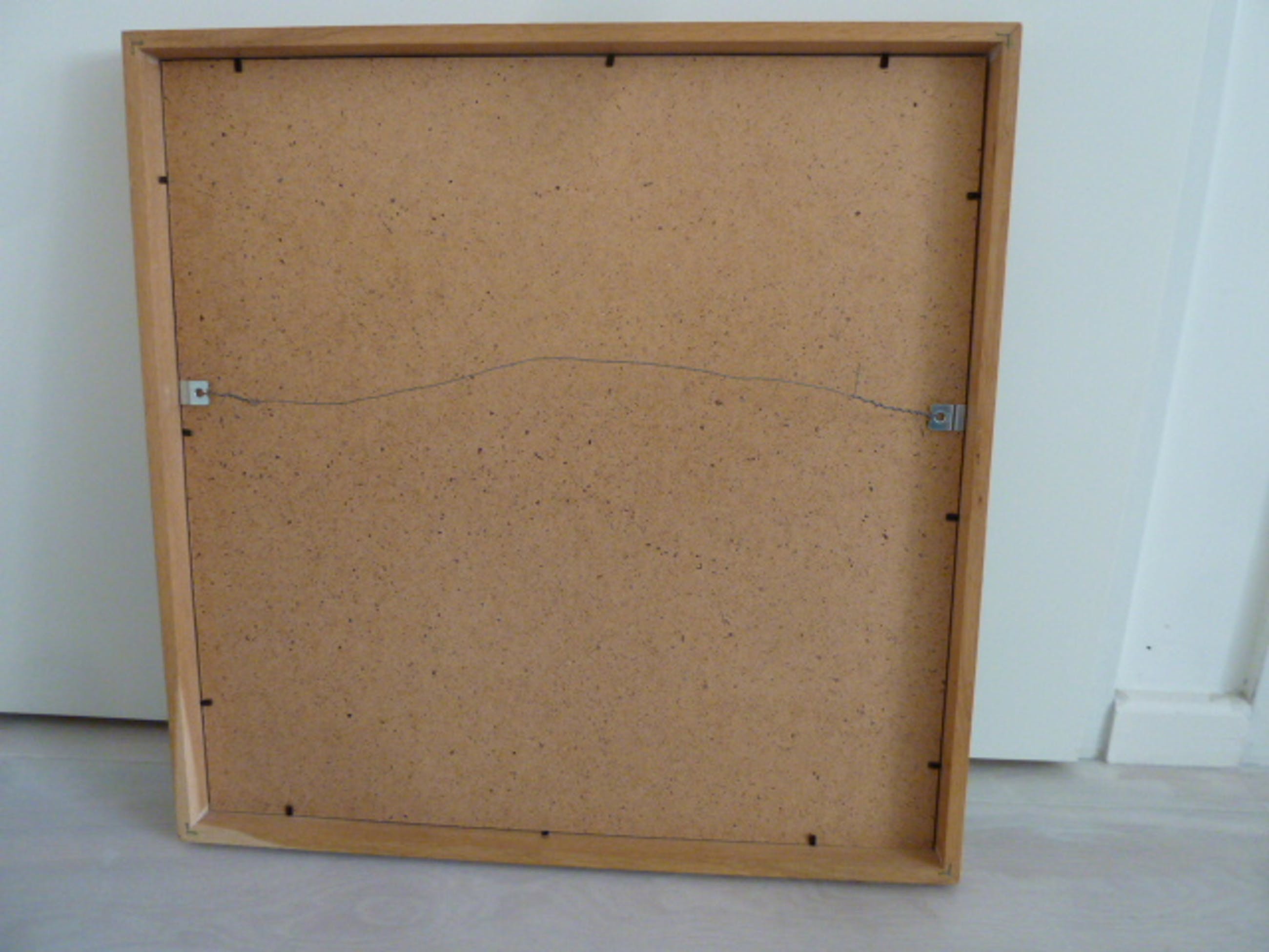 Het werk is met zorg ingelijst: het werk zit in een passe partout die weer opgenomen is in een vierkante houten lijst met glasplaat.