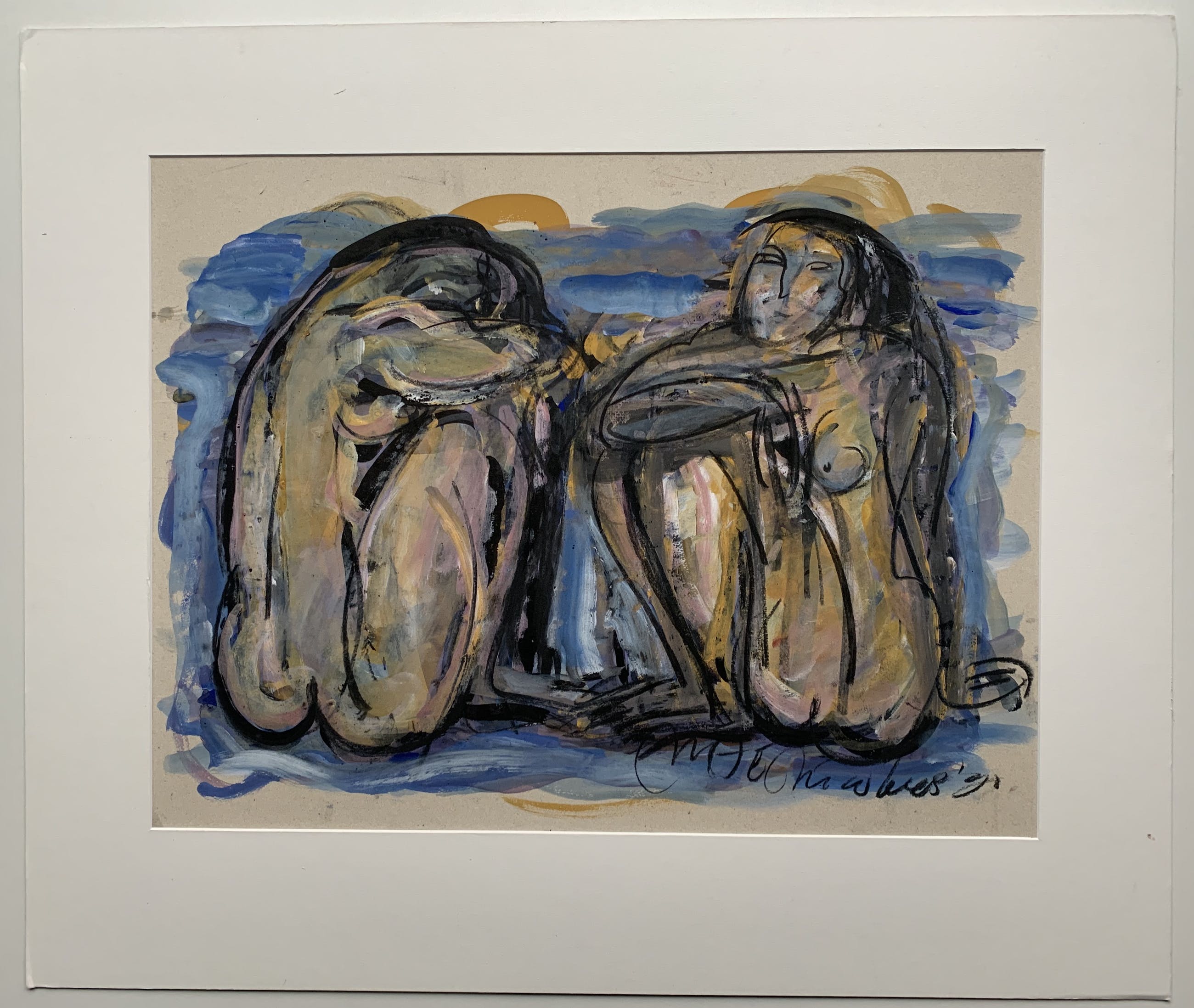 Mooie expressionistische weergave van twee naakten van de hand van Margarita Nicolaas.