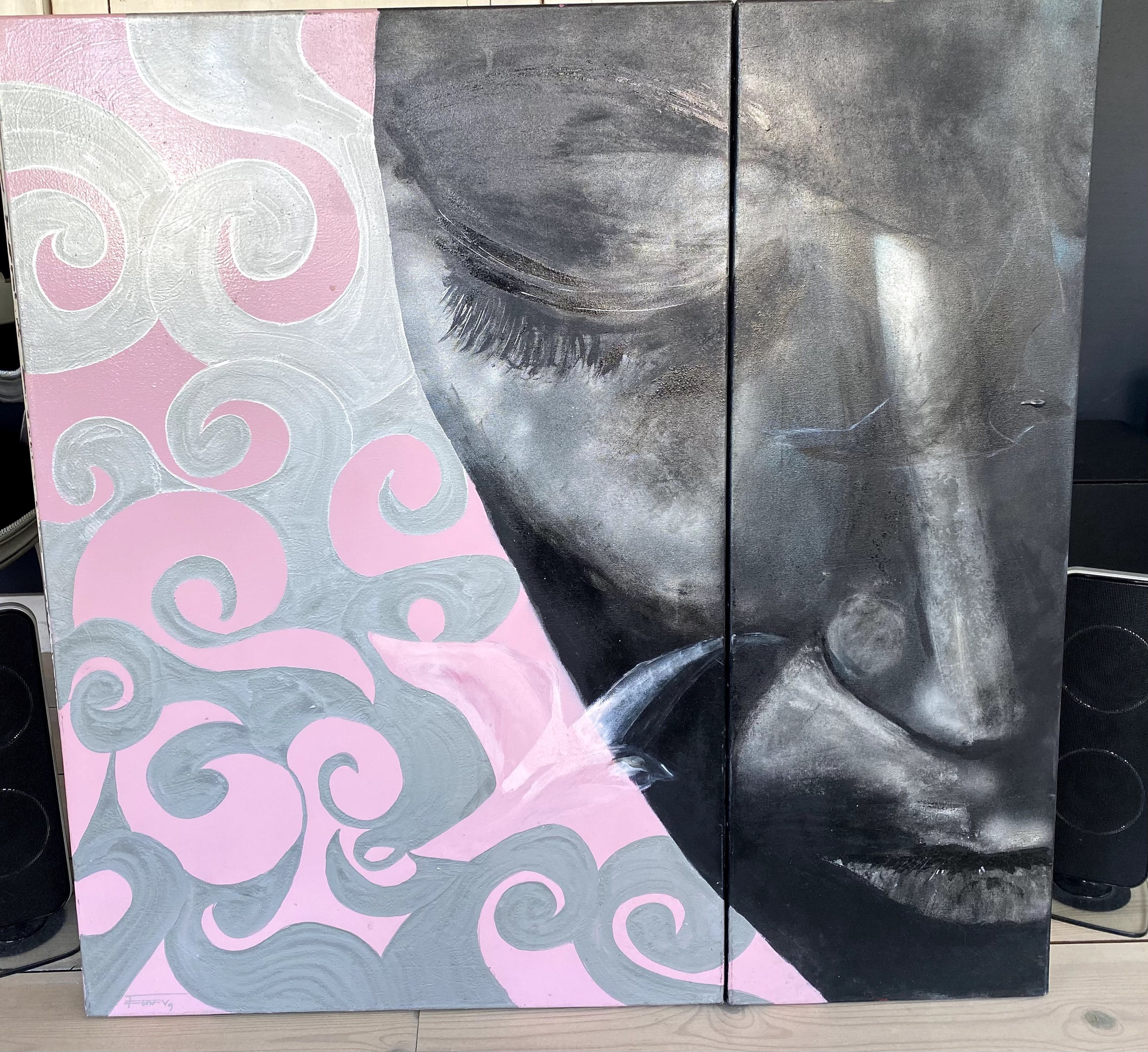 Aangeboden: Tweeluik 'BERUSTING' van Margje Teeuwen 90 x 90 cm