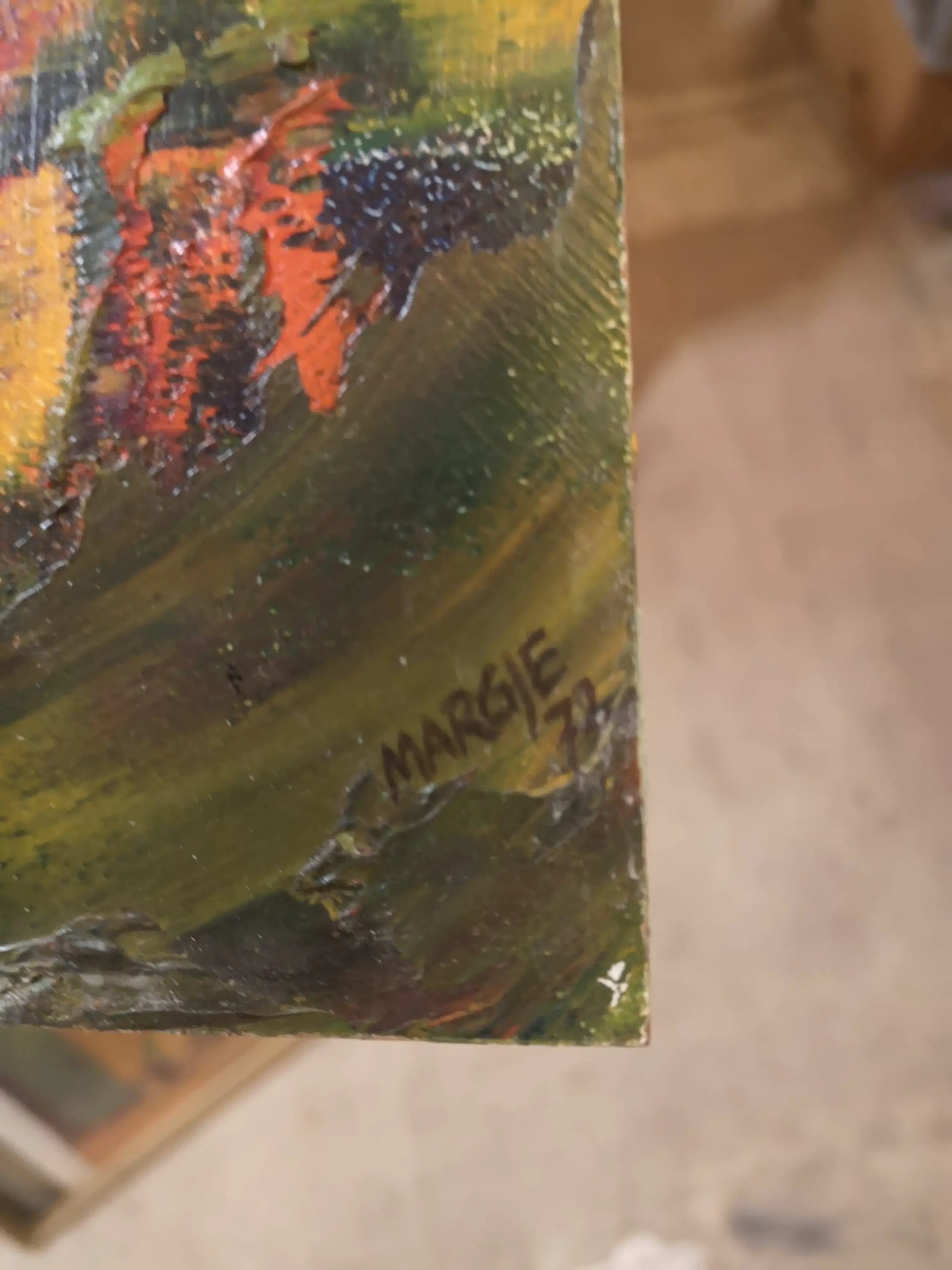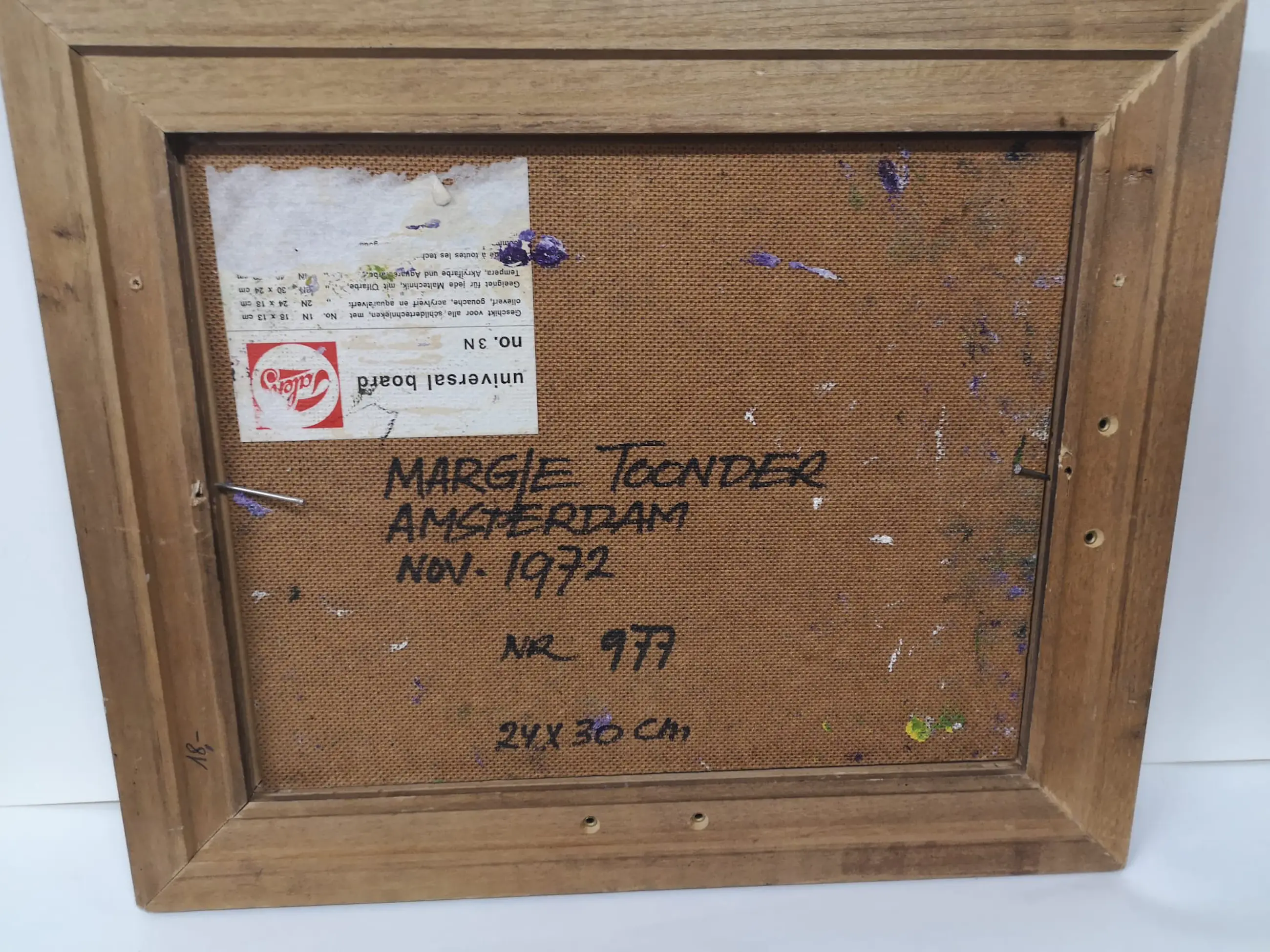 Dit kunstwerk is een schilderij (olieverf op board), komt uit het jaar 1977 en is handgesigneerd. Margje Toonder-Herbolt is een Nederlandse kunstenaar. Ze staat bekend om haar kleurrijke schilderijen en tekeningen die vaak geïnspireerd zijn door de natuur en haar omgeving.