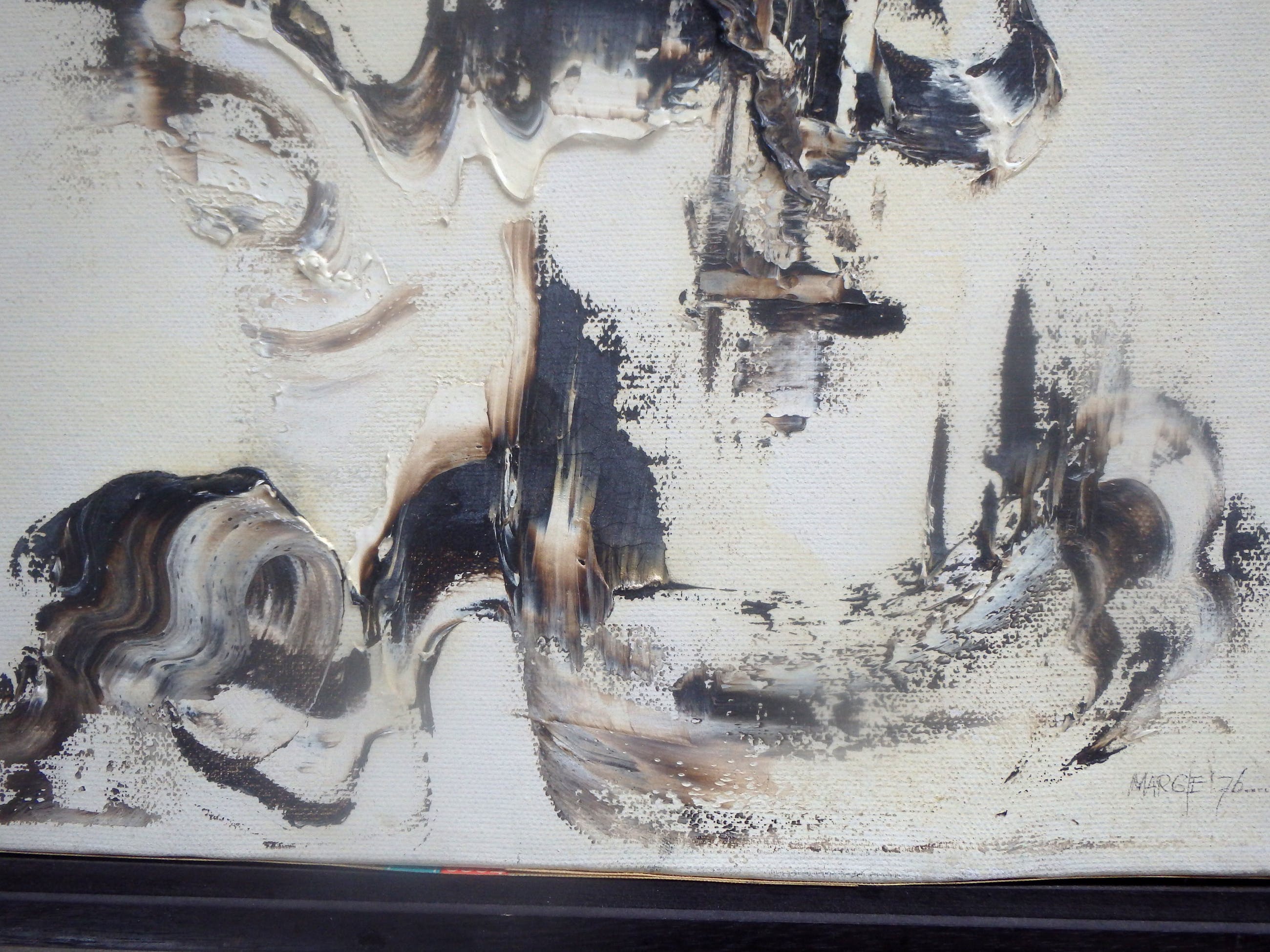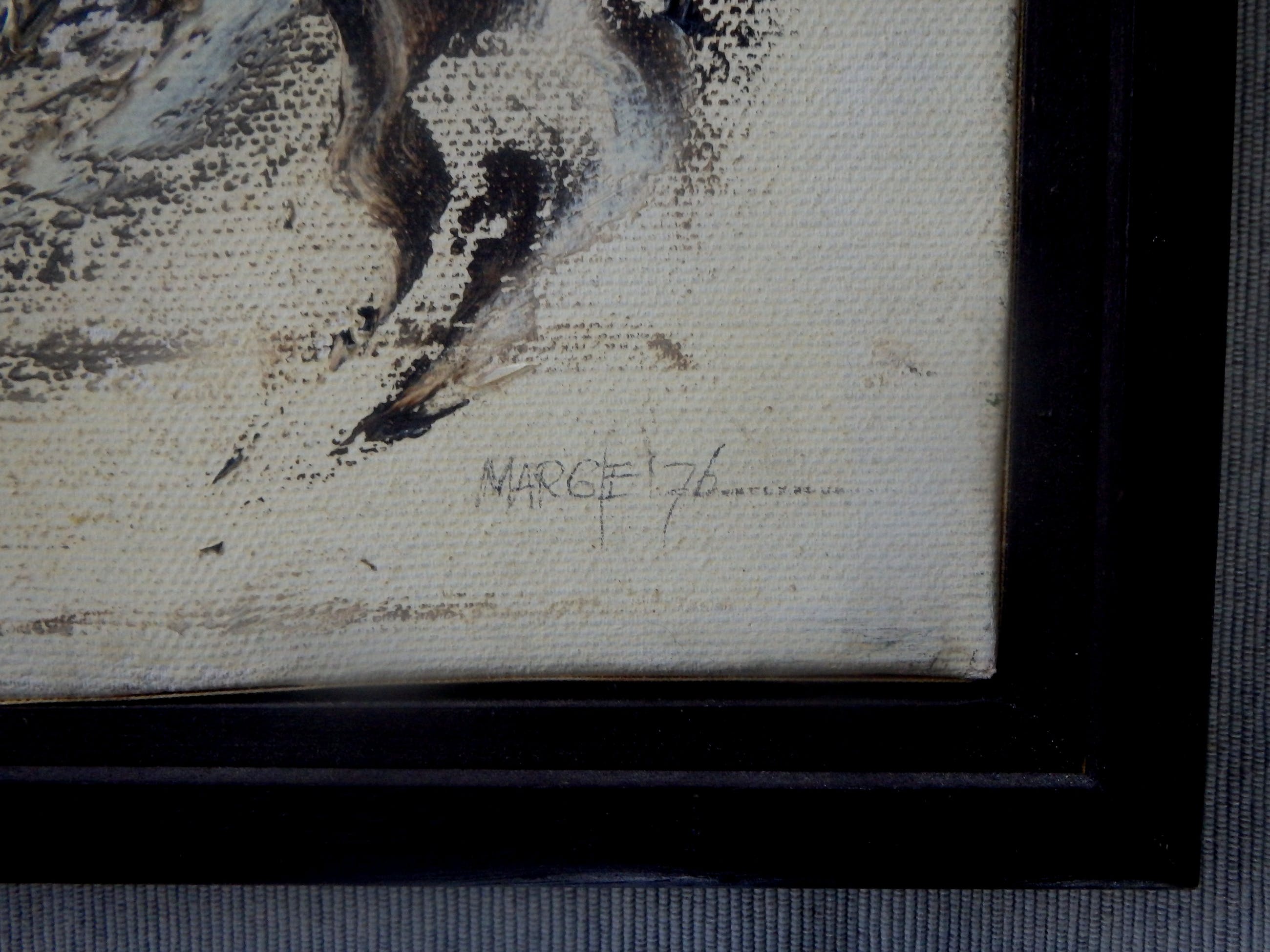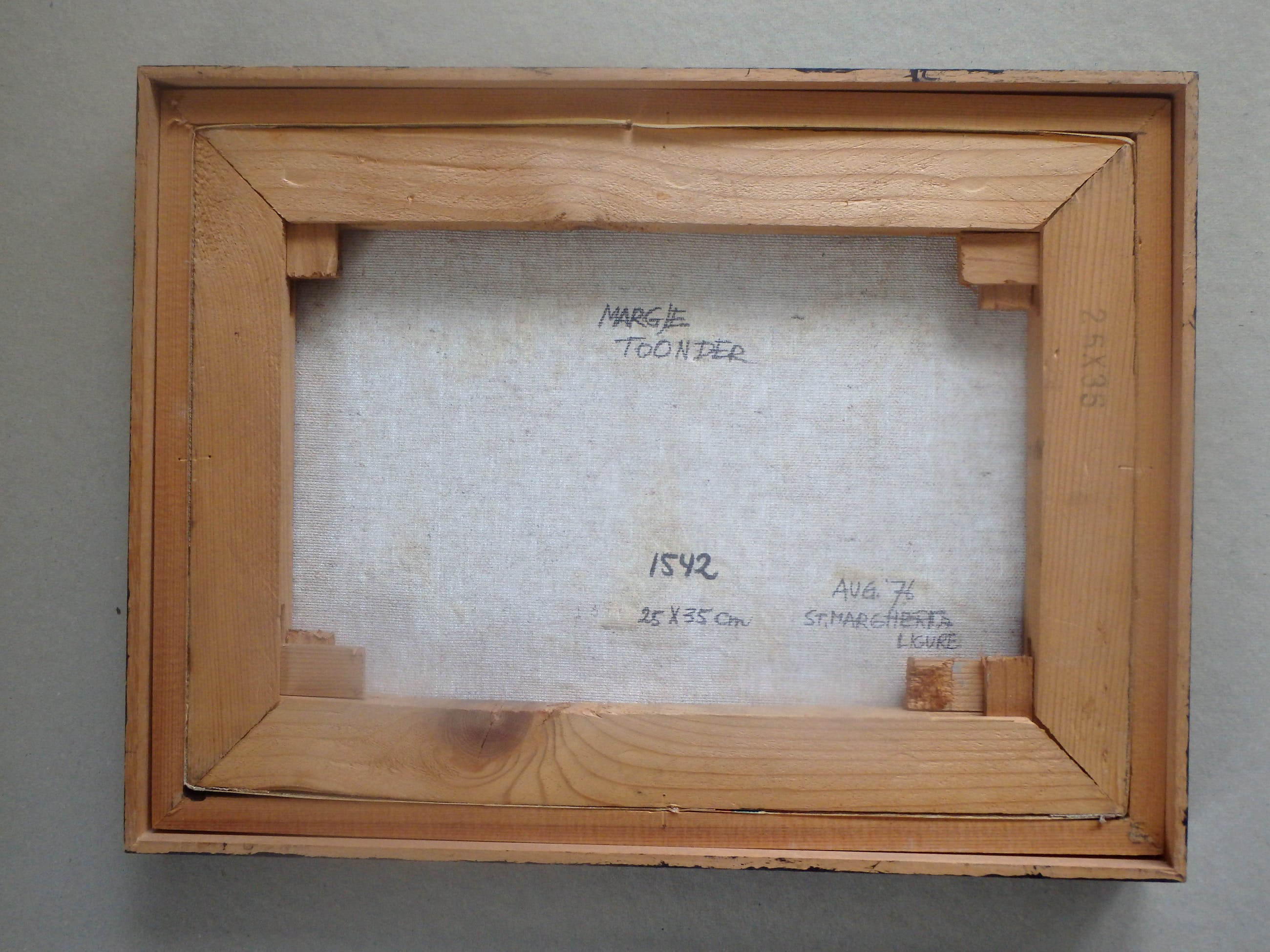 Olieverf op doek 25x35, rechtsonder met potlood gesigneerd Margje en gedateerd '76, netjes ingelijst.