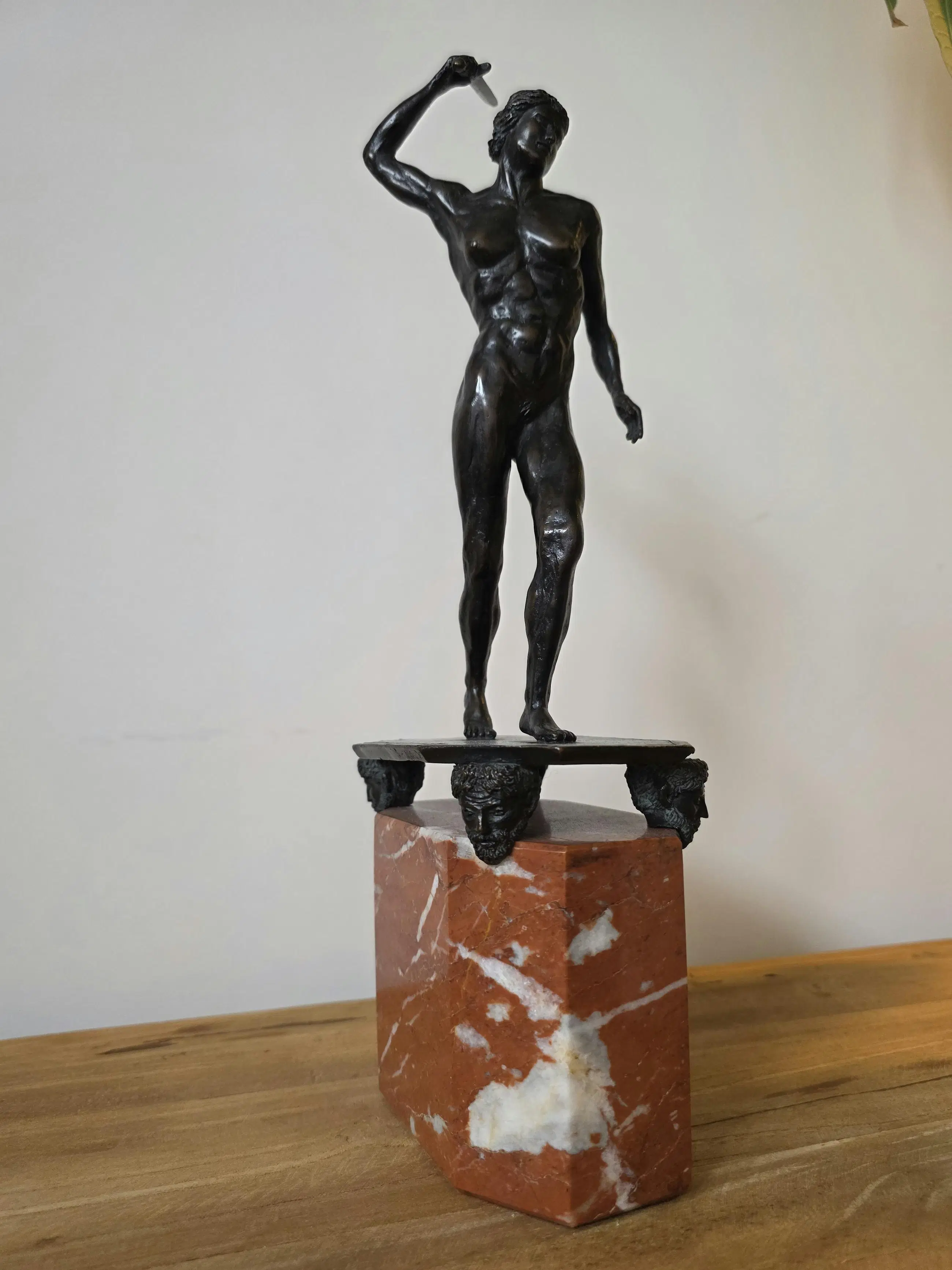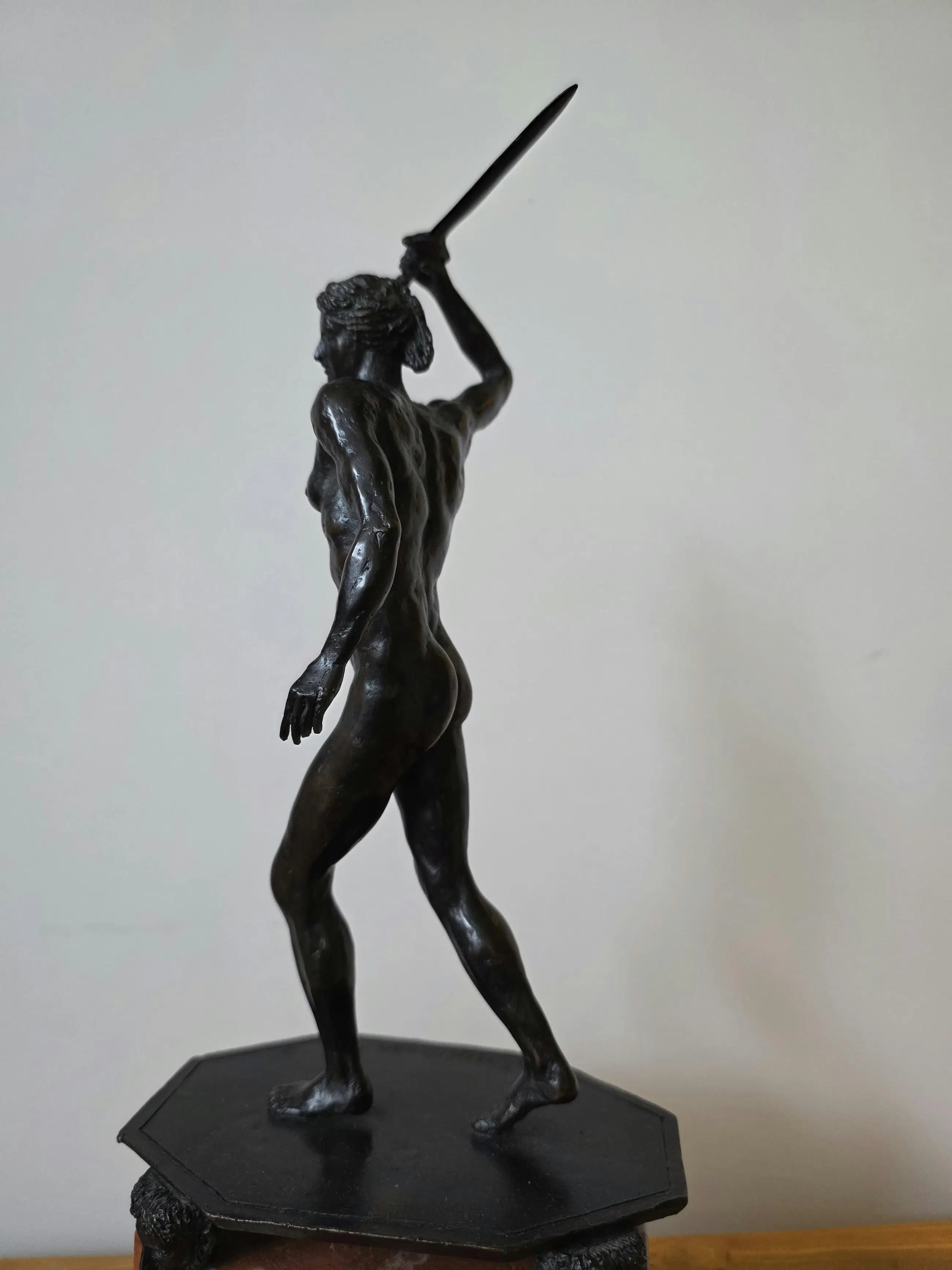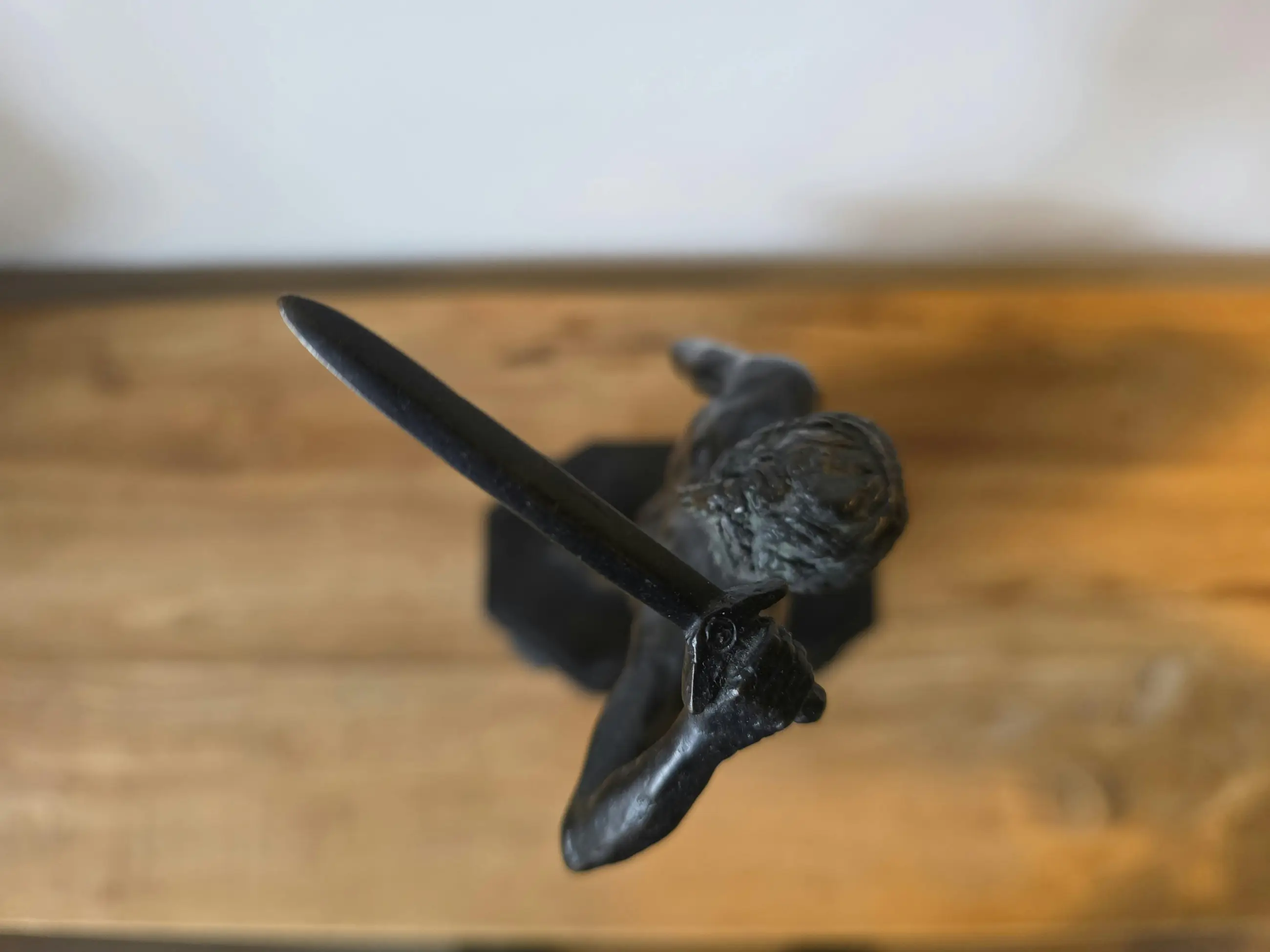 Het bronzen beeld is zo'n 37 cm hoog.