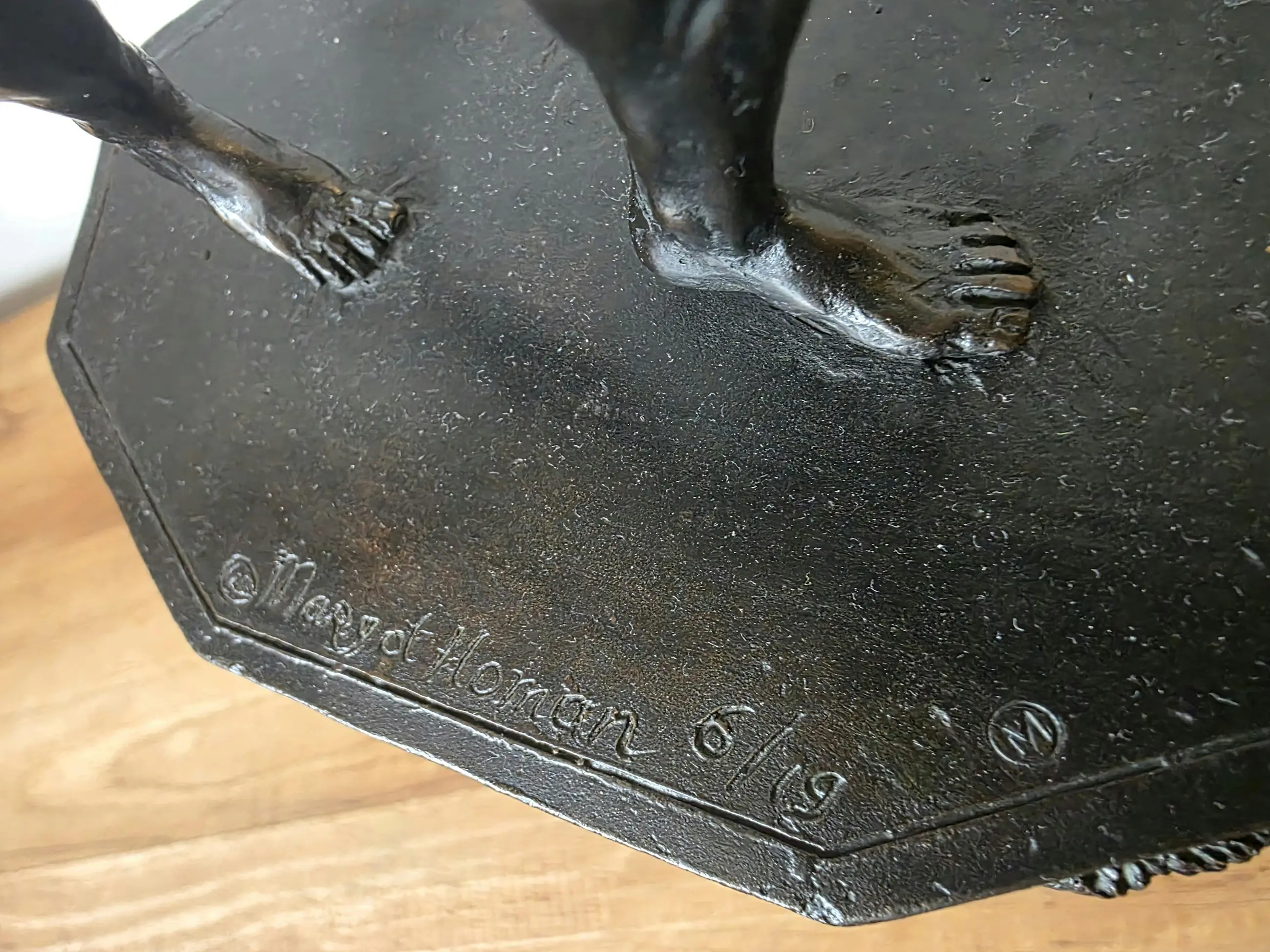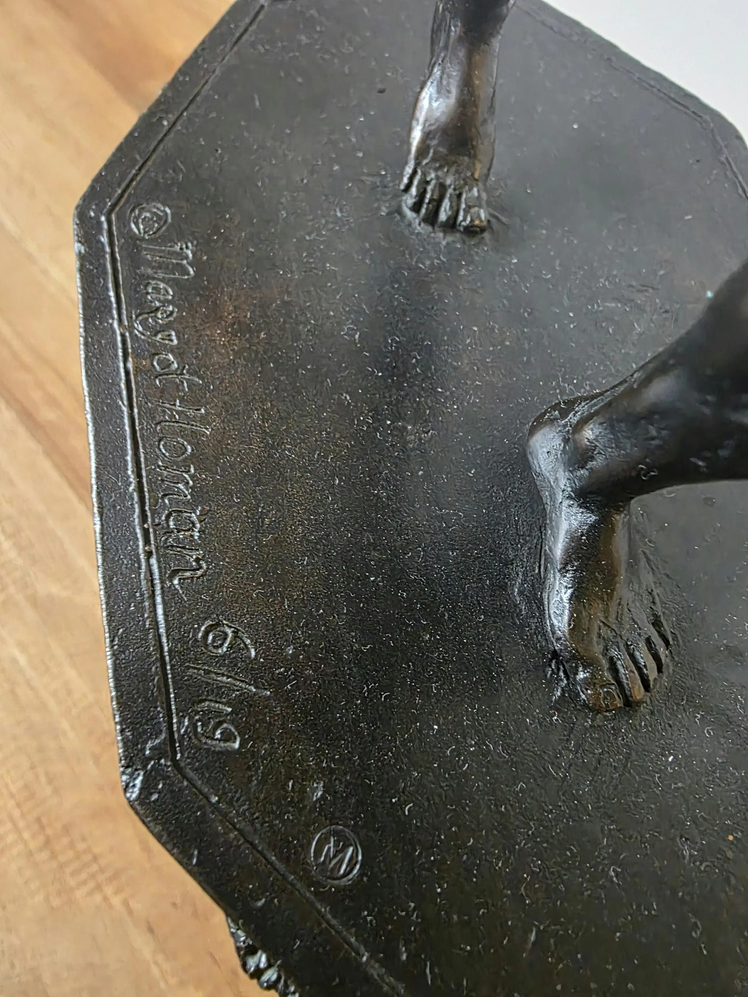 Het beeld draagt het stempel (M) van kwaliteitsgieterij Fonderia Artistica Mariani (in Pietrasanta). Zie foto's.