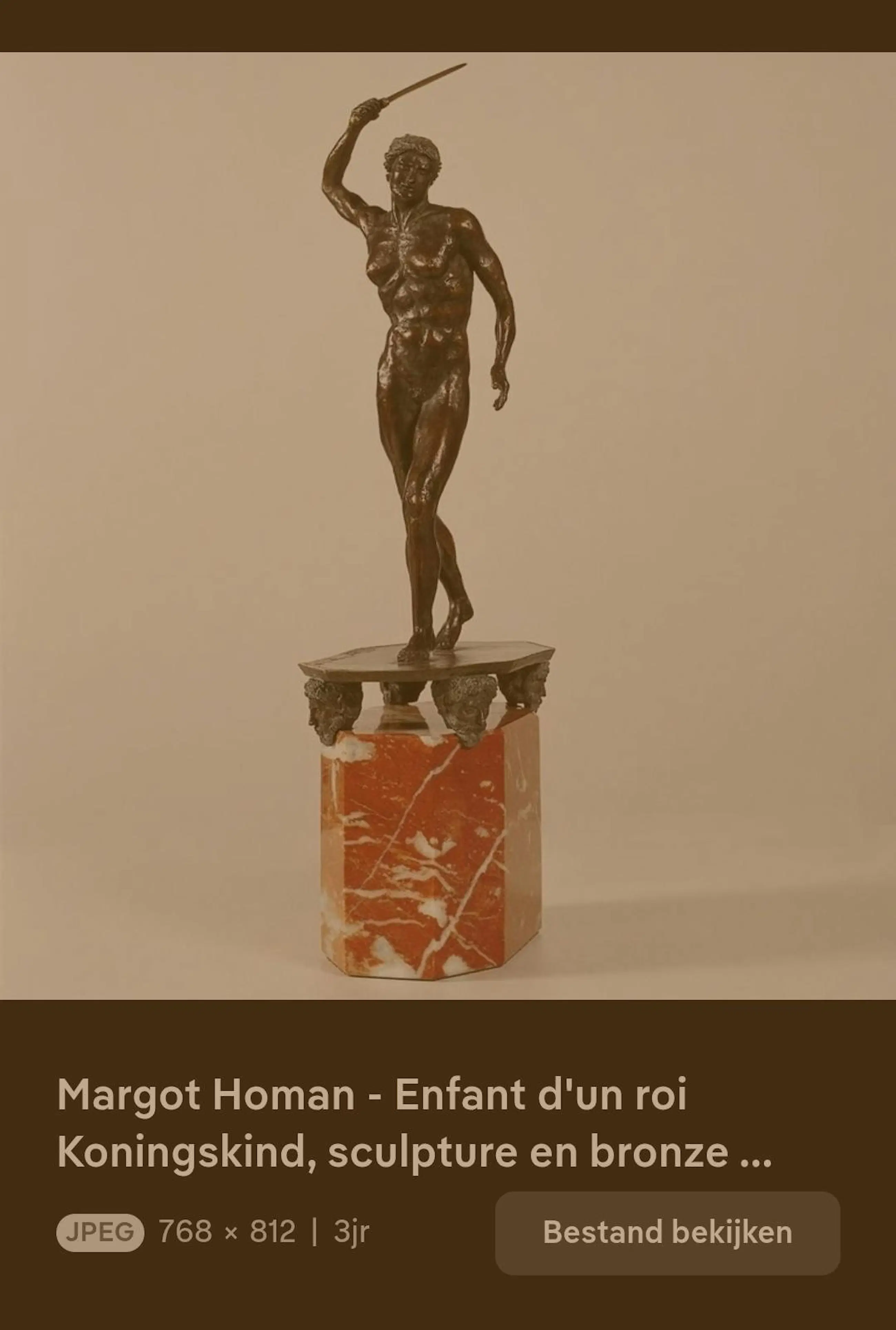 Prachtig bronzen beeld getiteld 'Koningskind' van Margot Homan - Briljantenkunstenaar 2025.