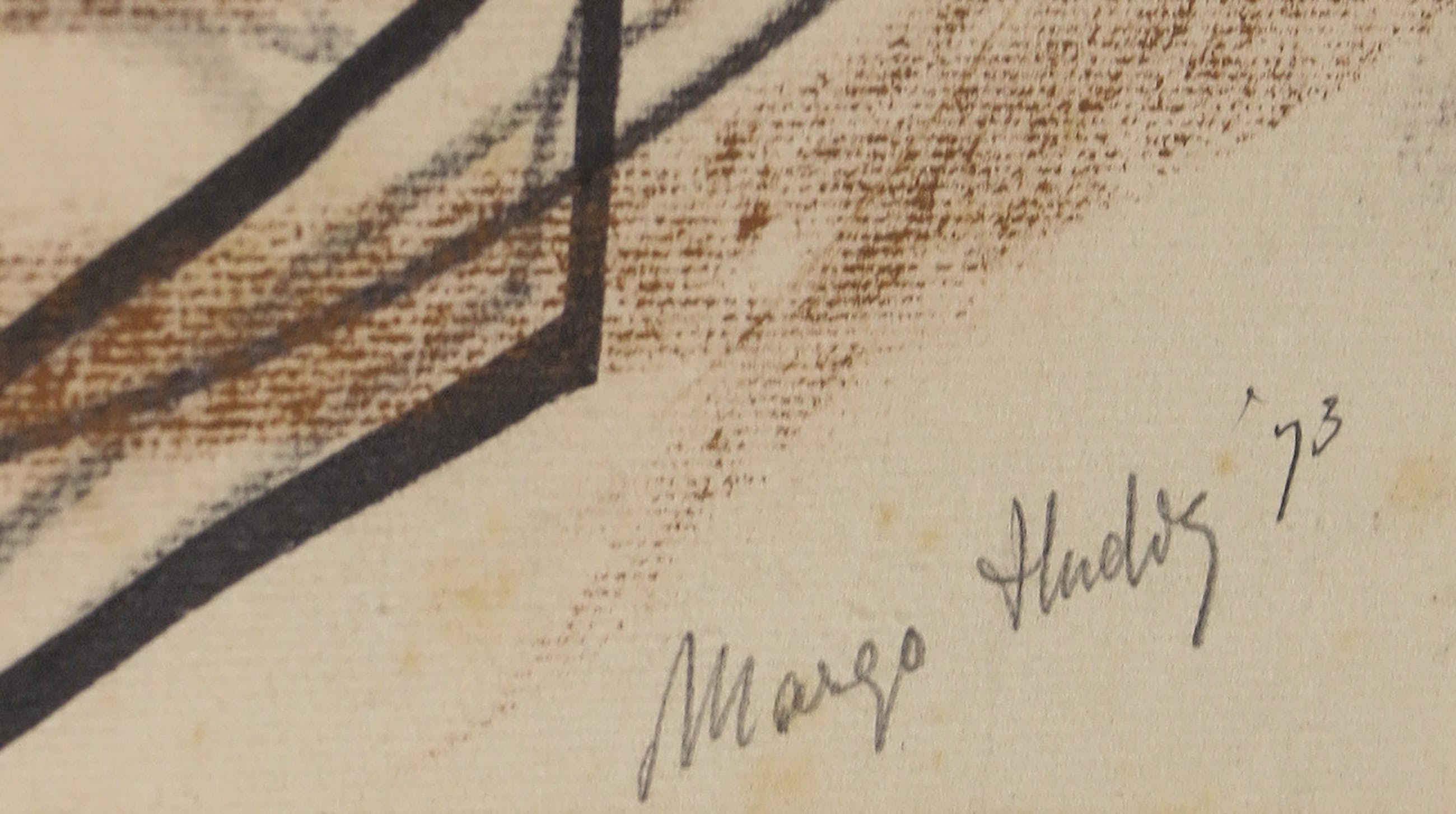 | Tekening is in goede staat met lichte golving. Algehele inlijsting en passe-partout is verouderd, beschadigd en aan vervanging toe. Sterke golving in het passe-partout. Lijst heeft aan de achterzijde vochtschade. | |