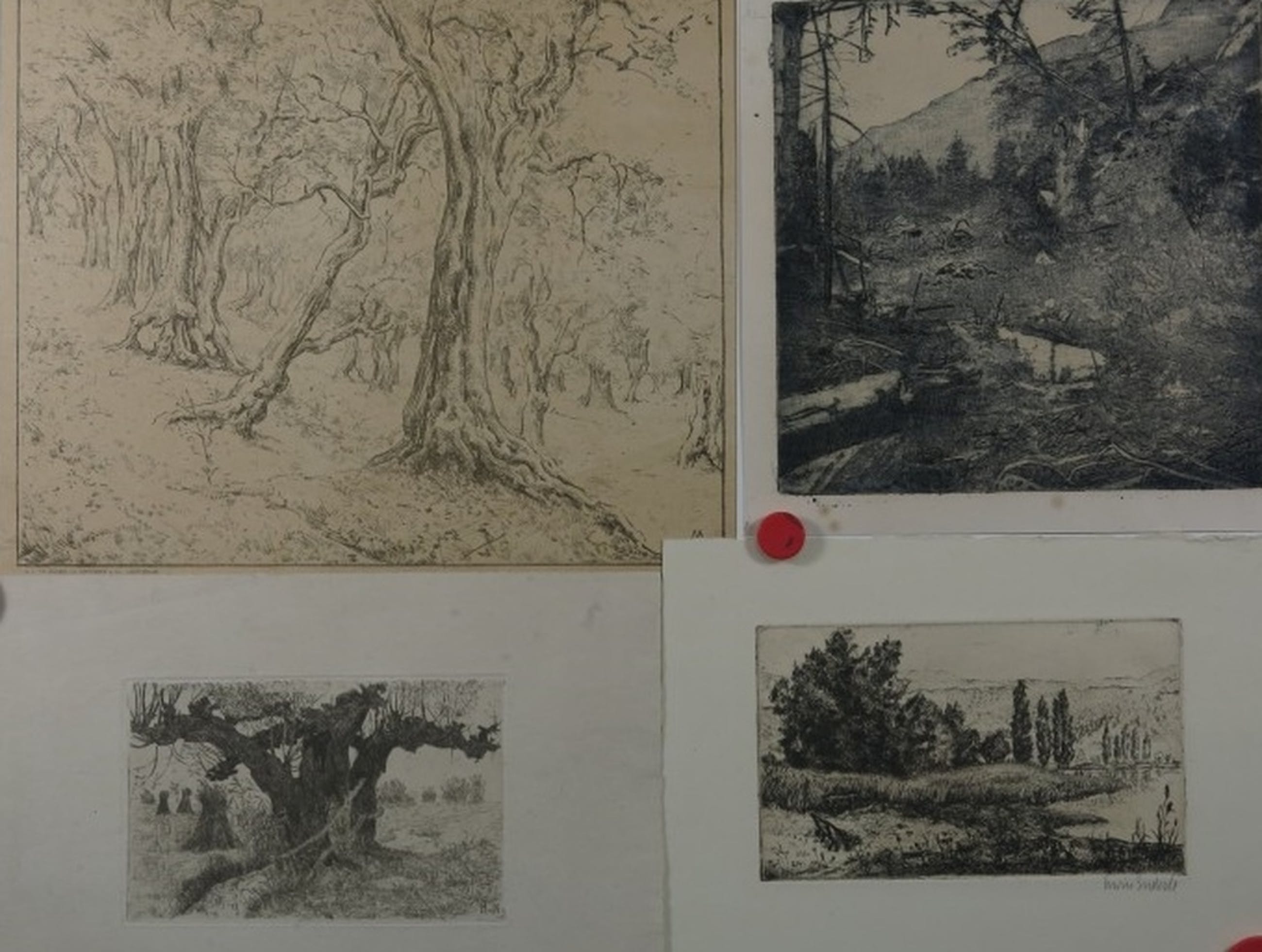 3 Etsen en een drukgesigneerde Steendruk van Moulijn. Onder andere een Ets van Margot van Hasselt: