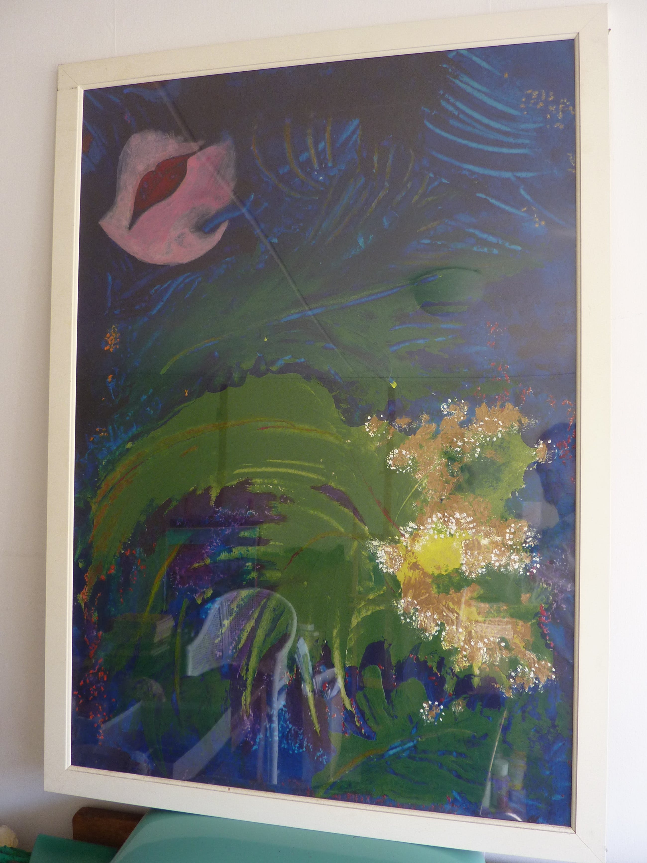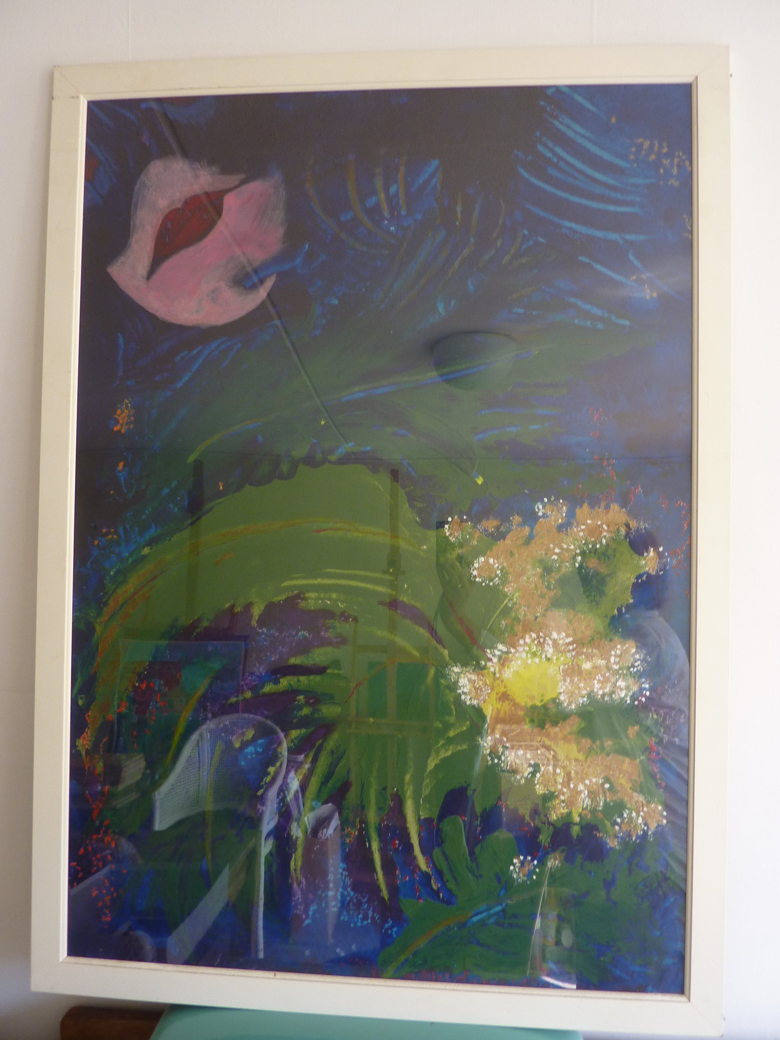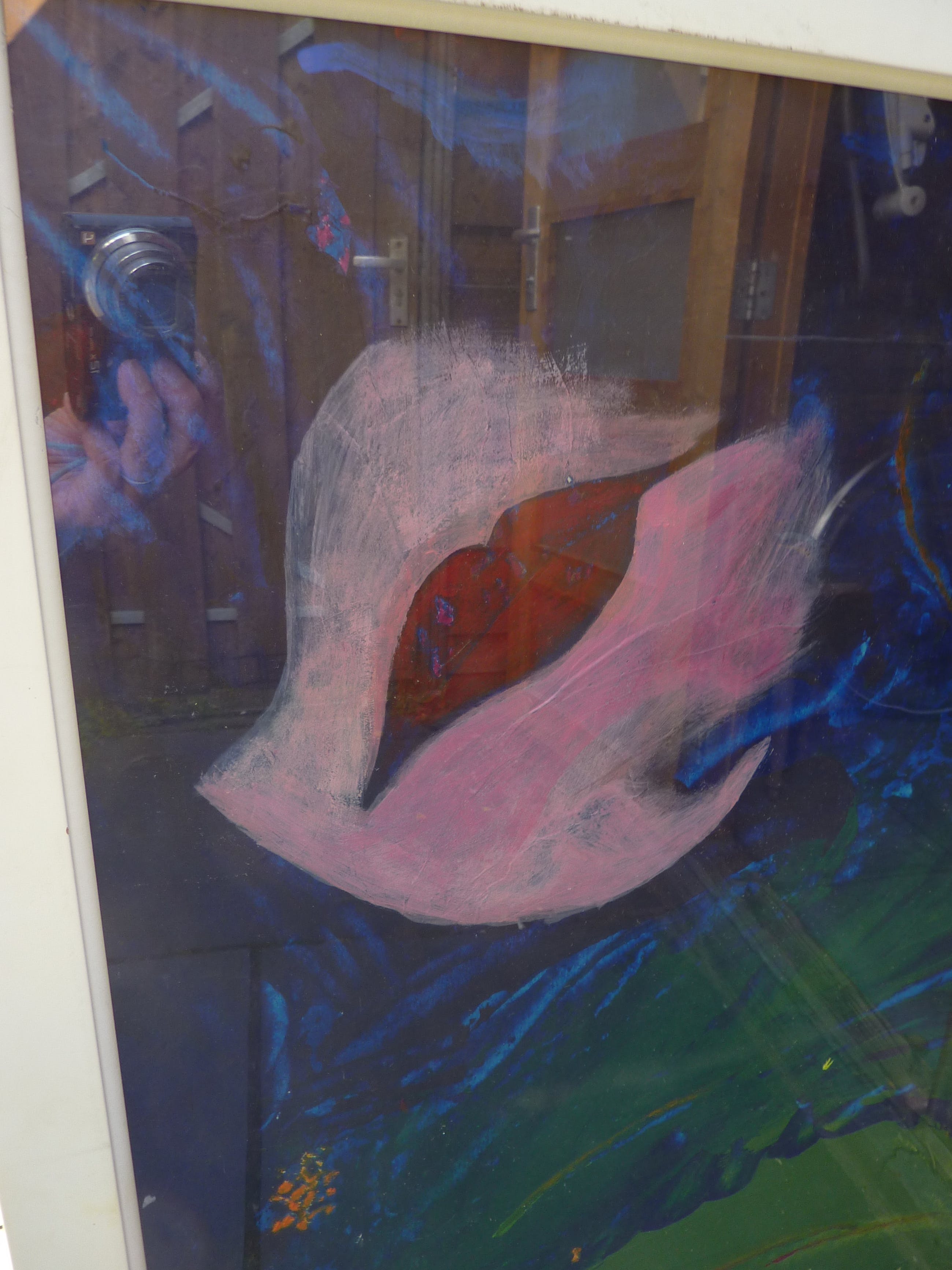 | schilderij zit achter plexiglas, buitenlijst heeft gebruikssporen | |||