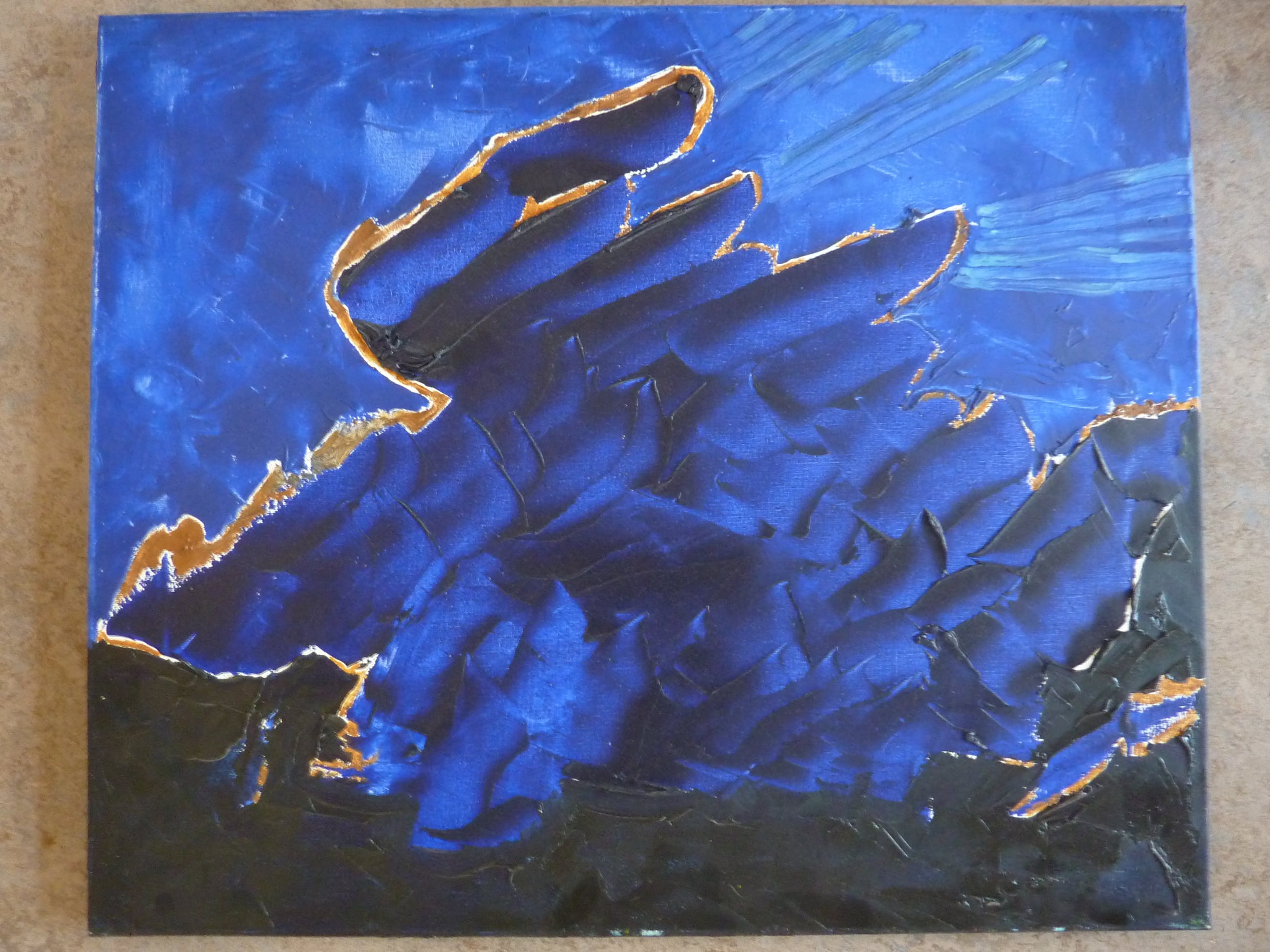 Olieverf is ruim aangebracht. Schilderij is verkoop uit nalatenschap. Kunstenaar Margriet Snel - 1948-2019 Den Haag - was oorspronkelijk werkzaam als grafisch vormgever. Toen bij haar MS werd geconstateerd, is ze gaan schilderen. Ze volgde schilderlessen bij Richard van der Spek in Den Haag. Ze maakte grote expressieve schilderijen en meer expressionistische, kleinere schilderijen op canvas, zoals dit schilderij.