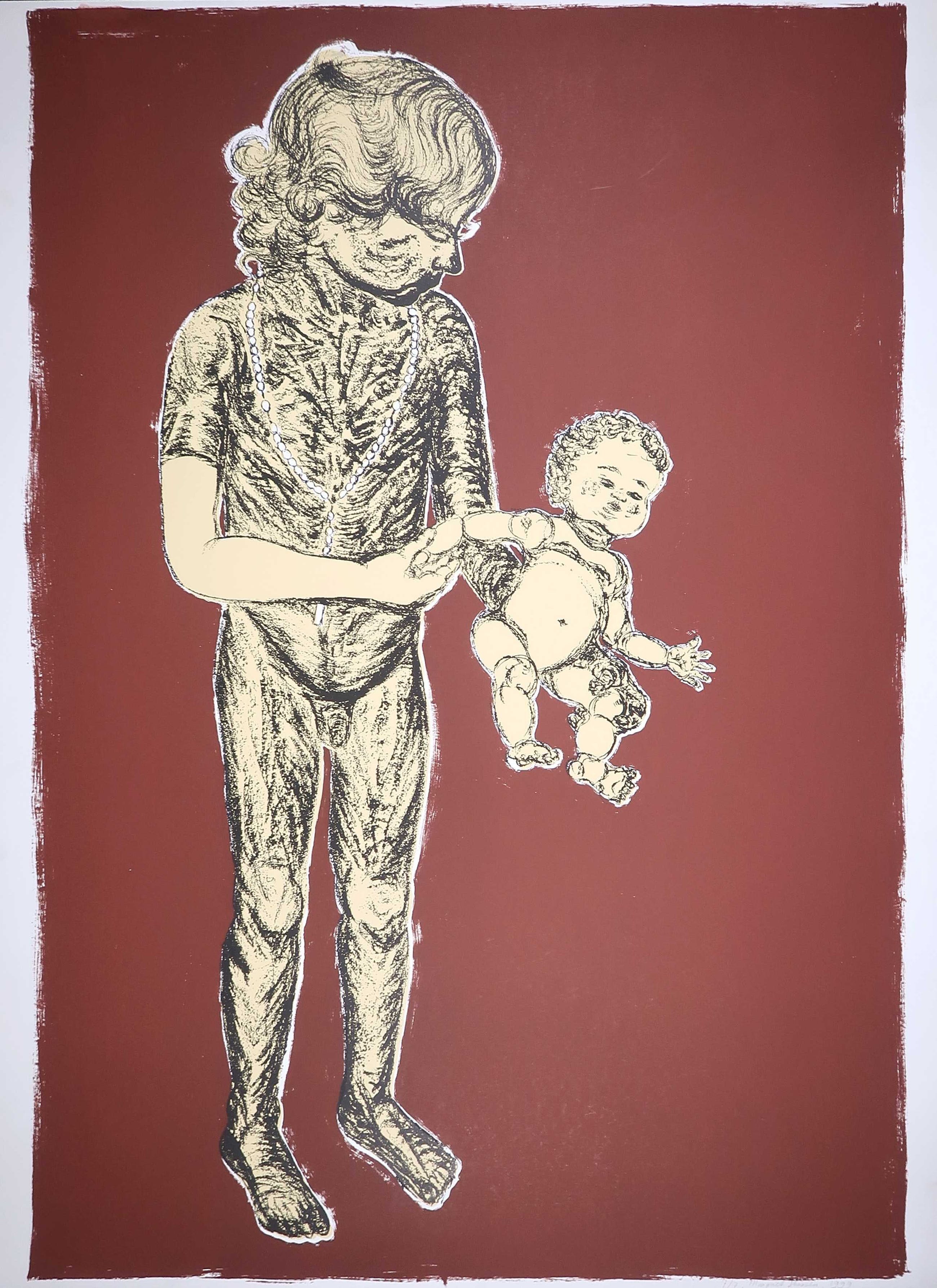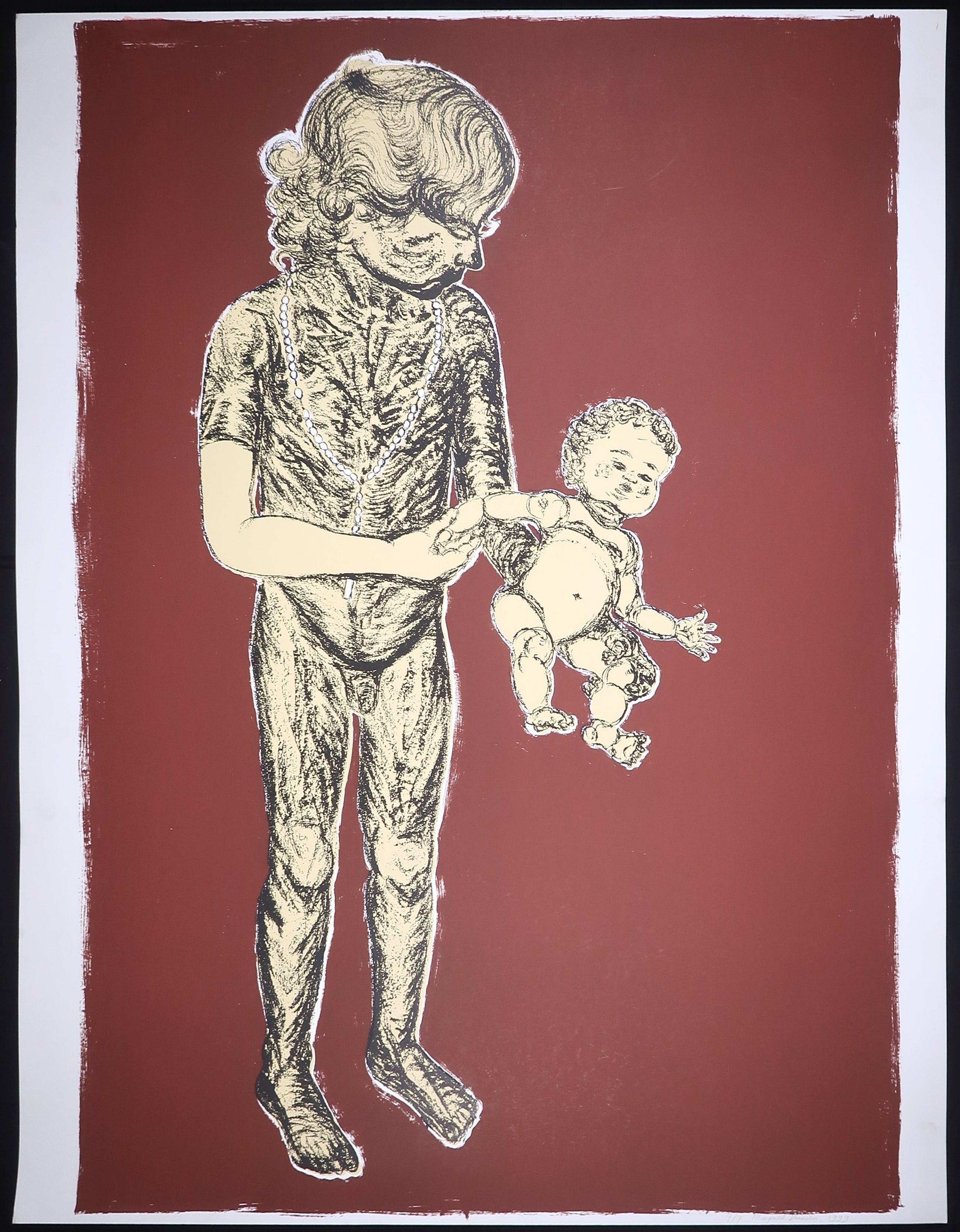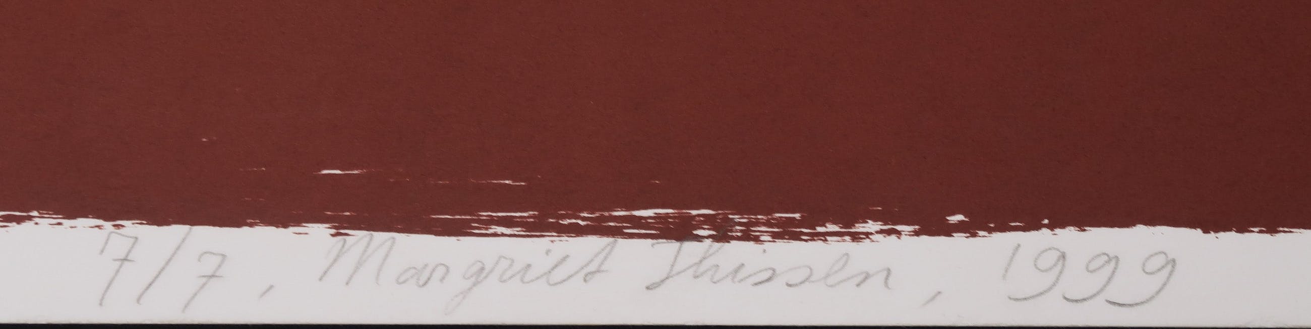 Zeer grote zeefdruk van Margriet Thissen, uitgegeven in kleine oplage door Peninsula te Eindhoven in 1999 als onderdeel van het project 'Tokens'.