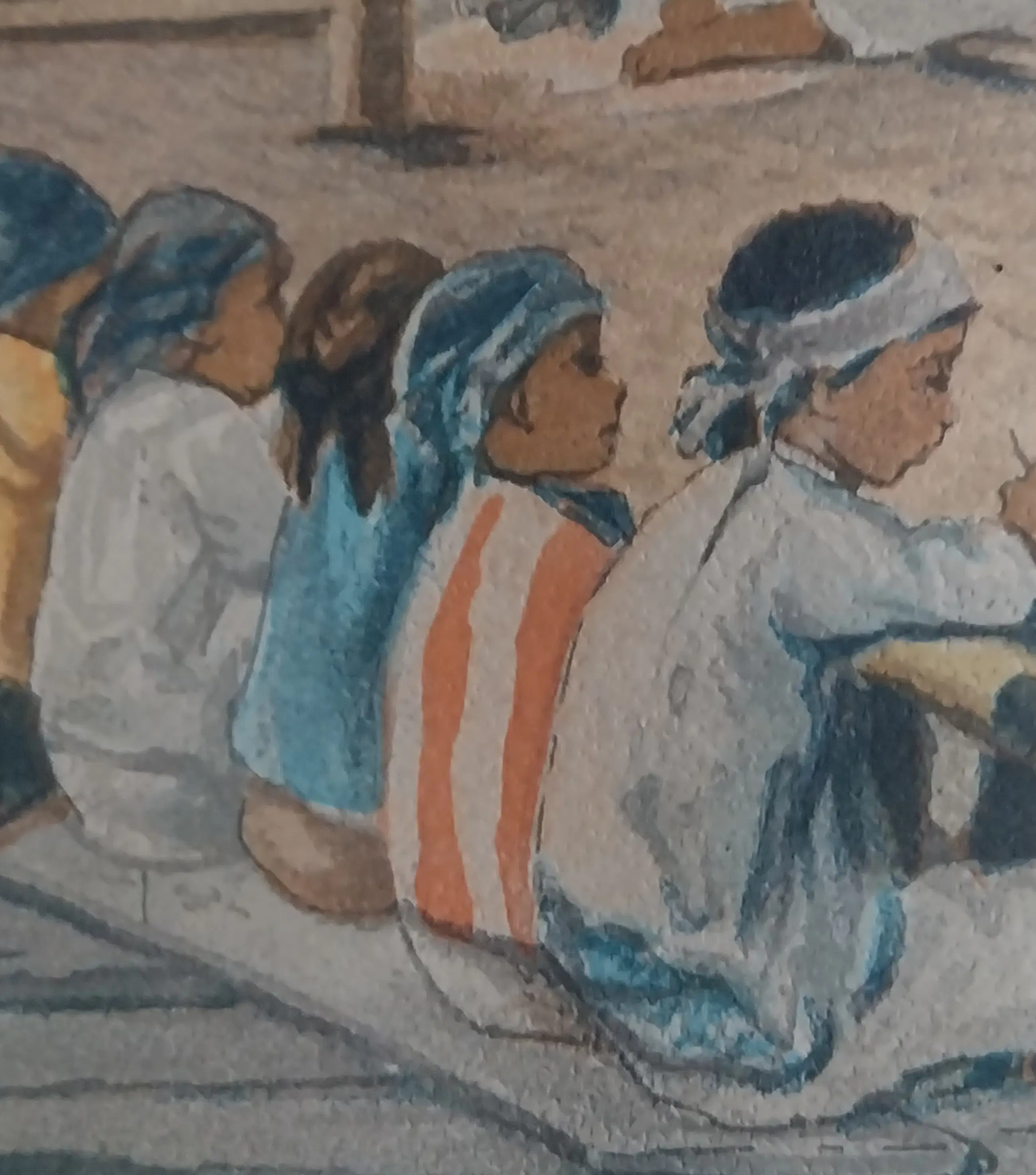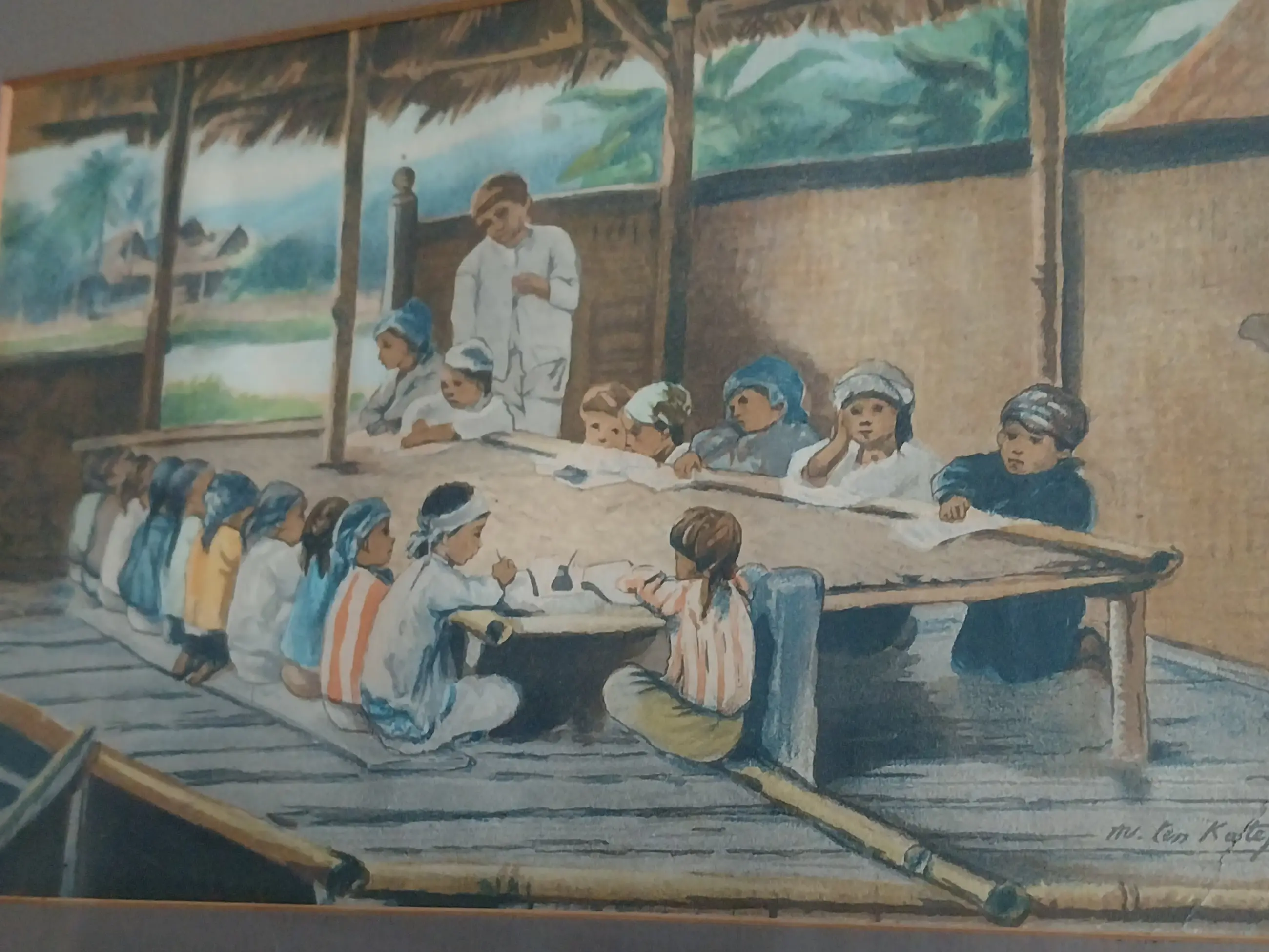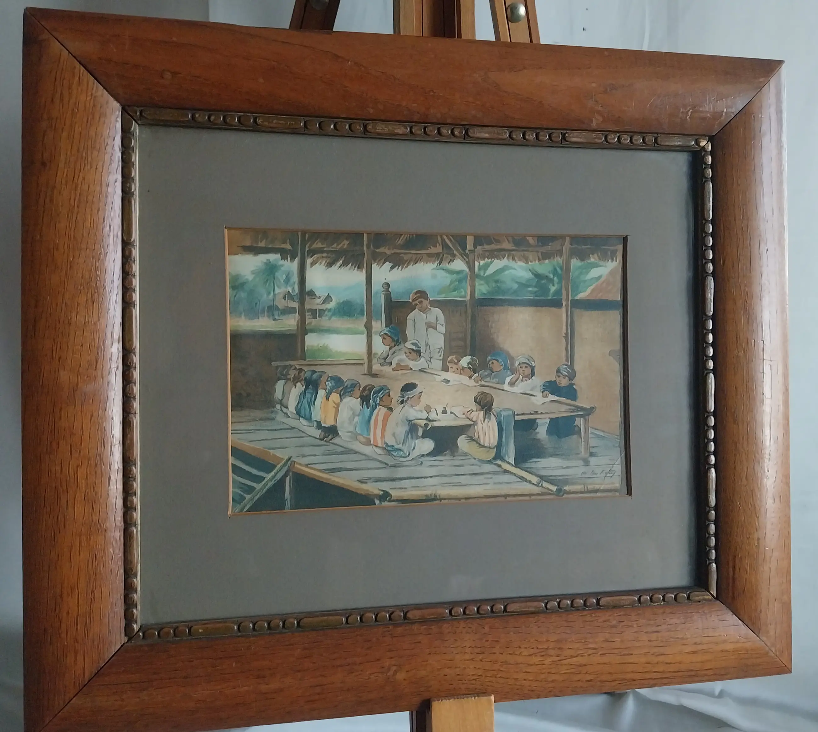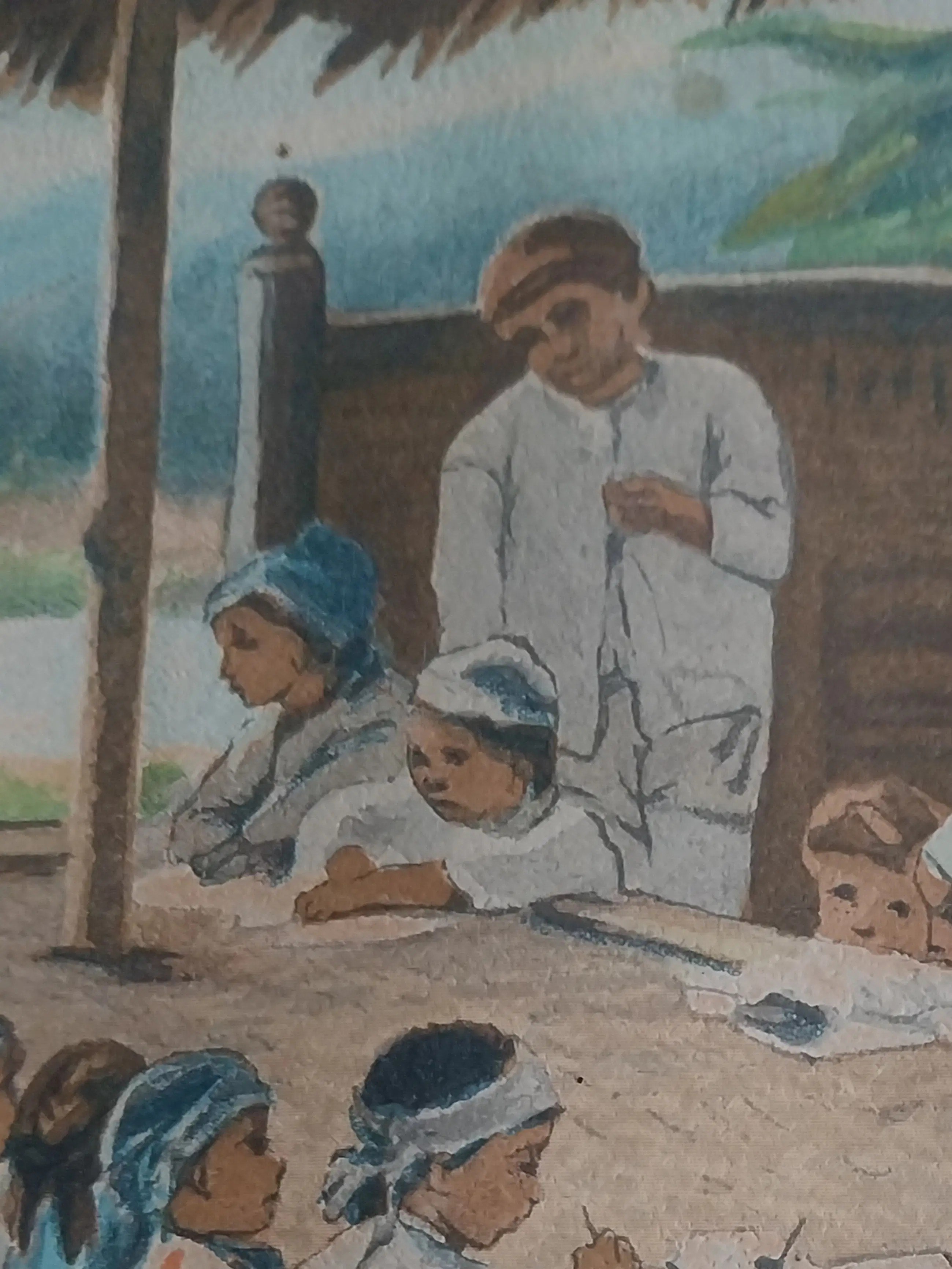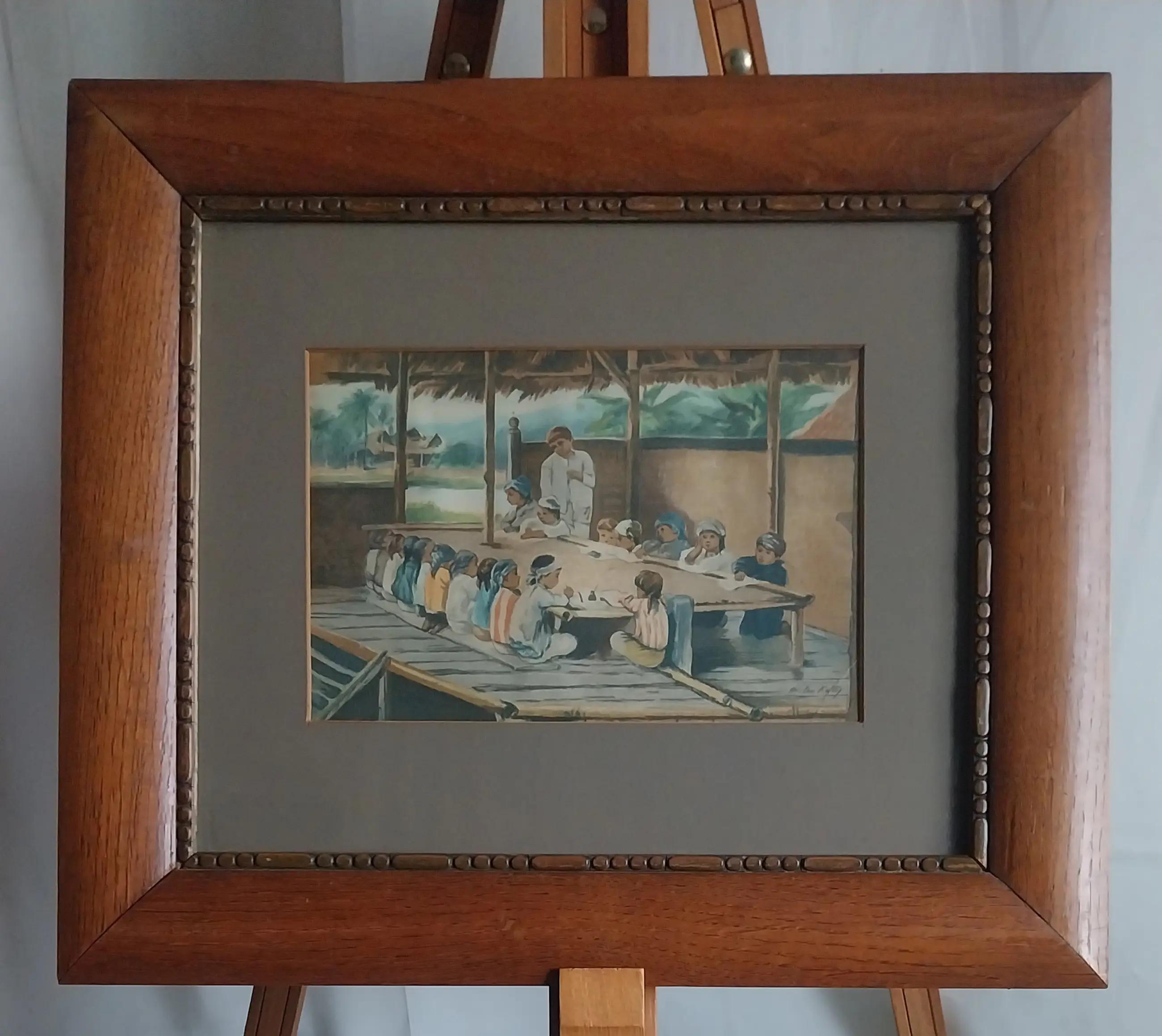 Aquarel van een schoolklas, gemaakt door Mari ten Kate tijdens zijn studiereis naar Java (Nederlands-Indië) van 1883 tot 1884 . Geheel in goede staat. Zie foto's voor conditie.