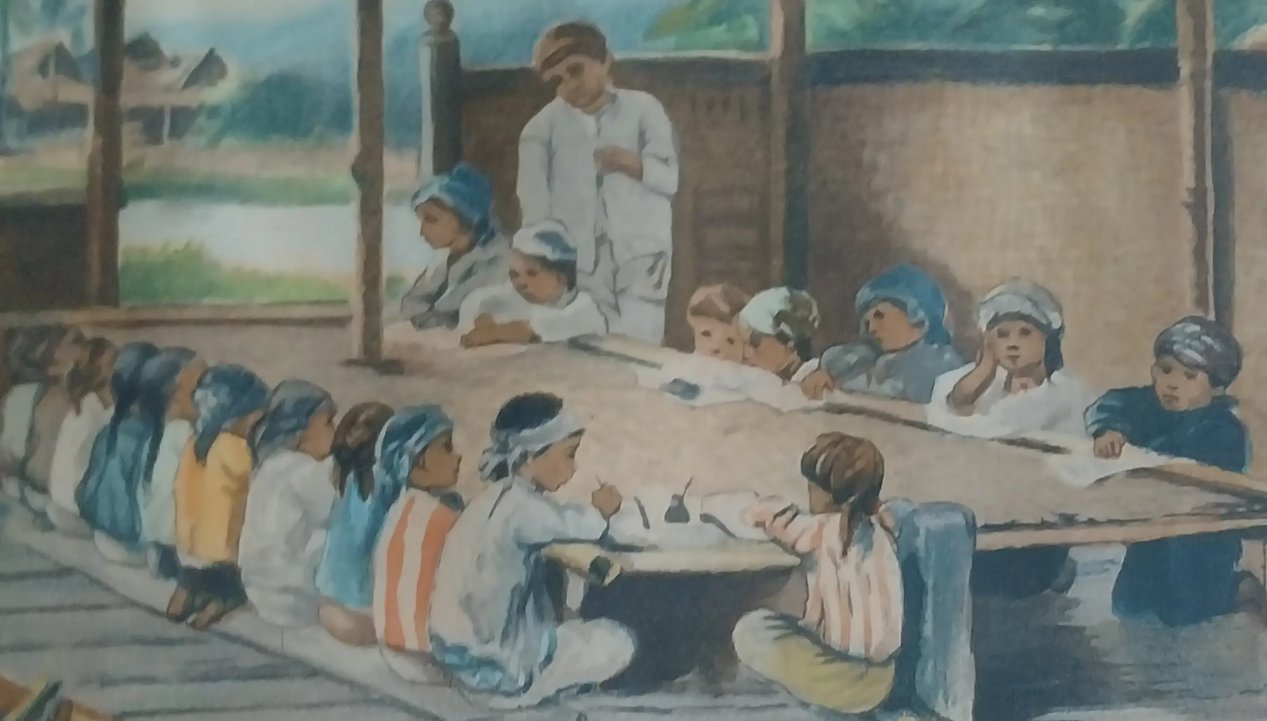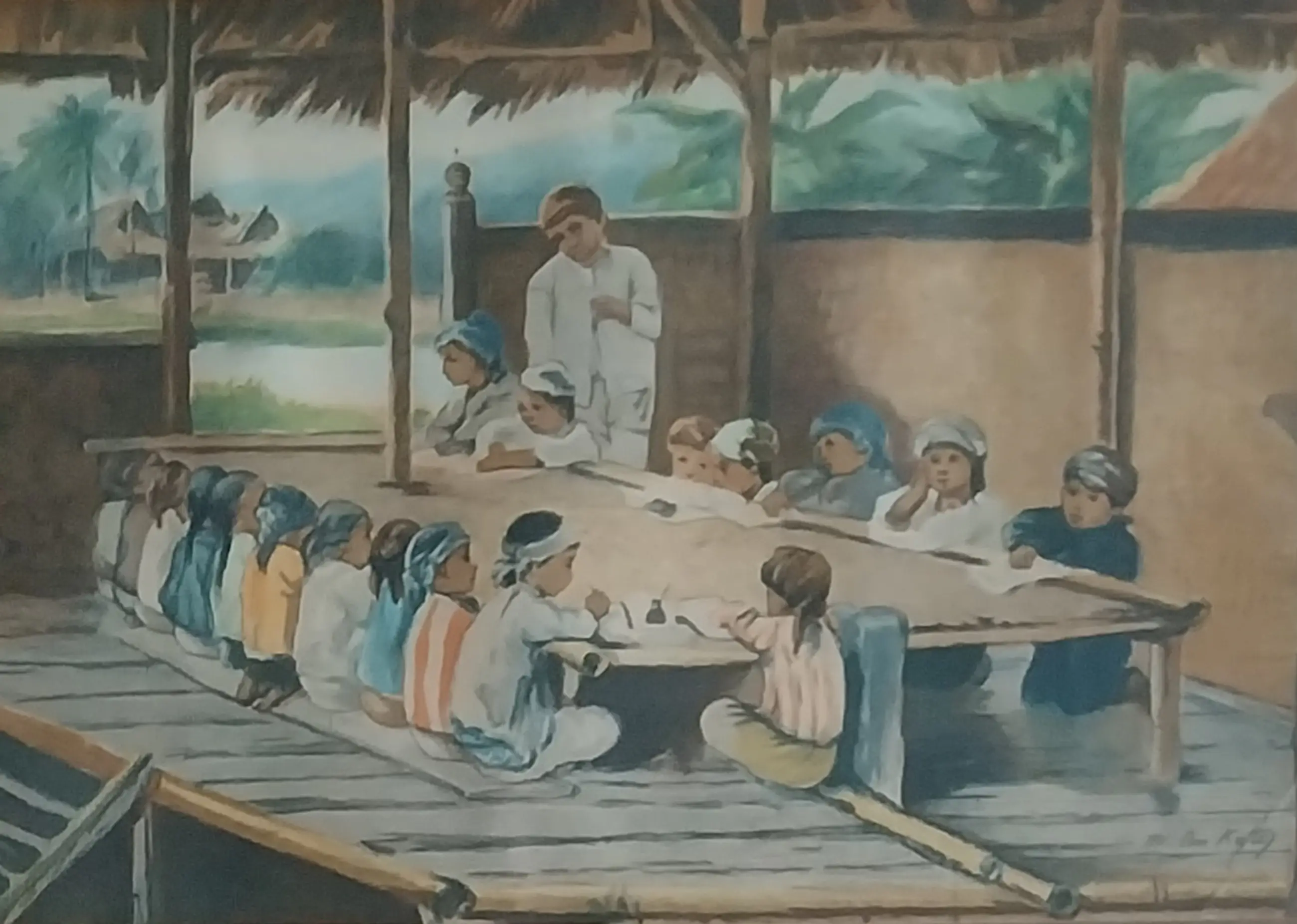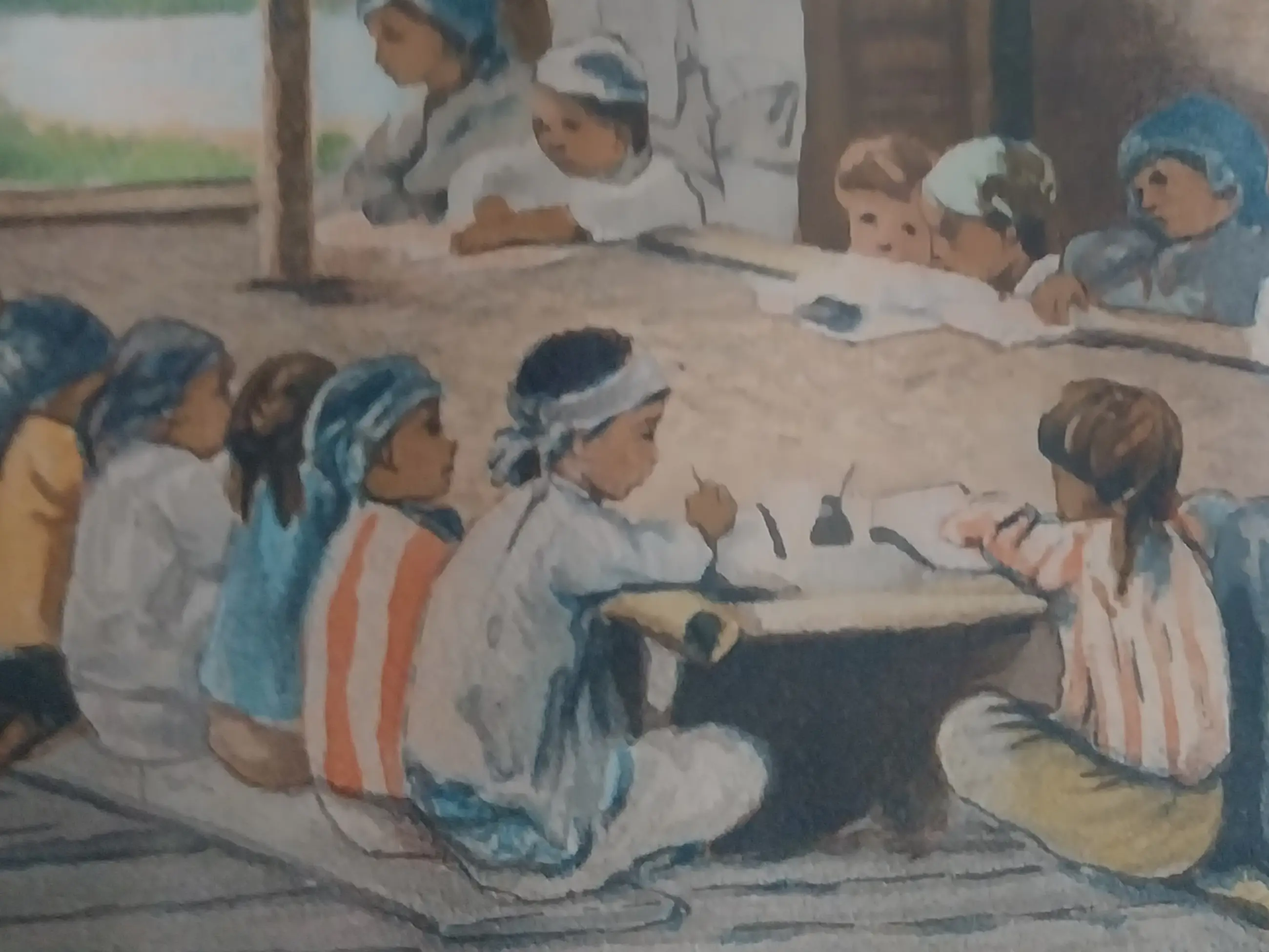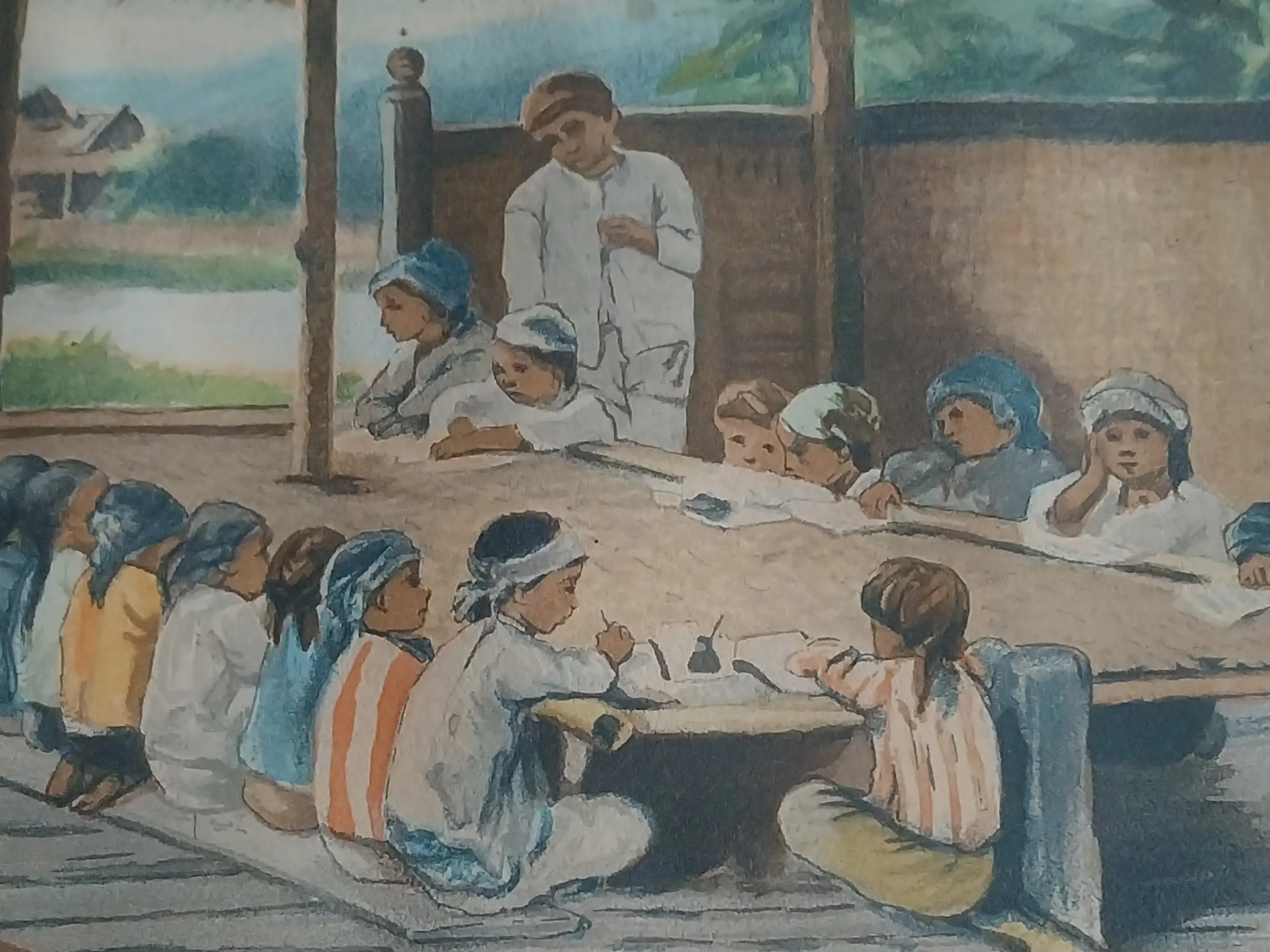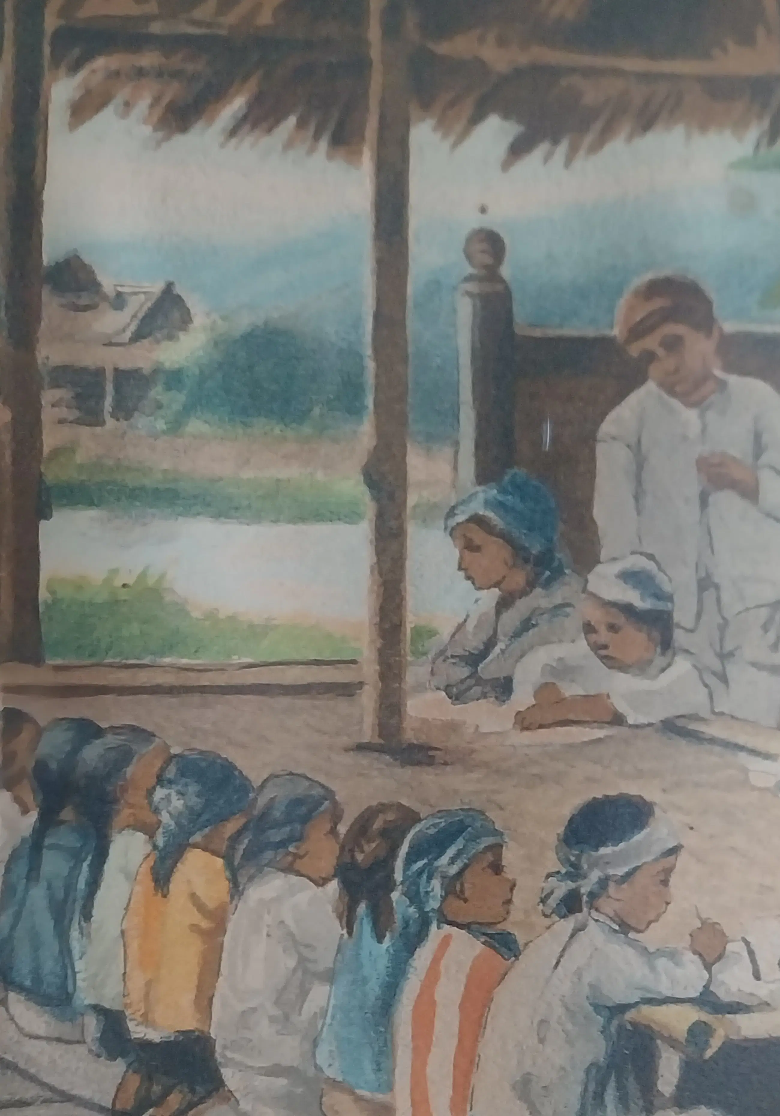 Aquarel van een schoolklas, gemaakt door Mari ten Kate tijdens zijn studiereis naar Java (Nederlands-Indië) van 1883 tot 1884 . Geheel in goede staat. Zie foto's voor conditie.
