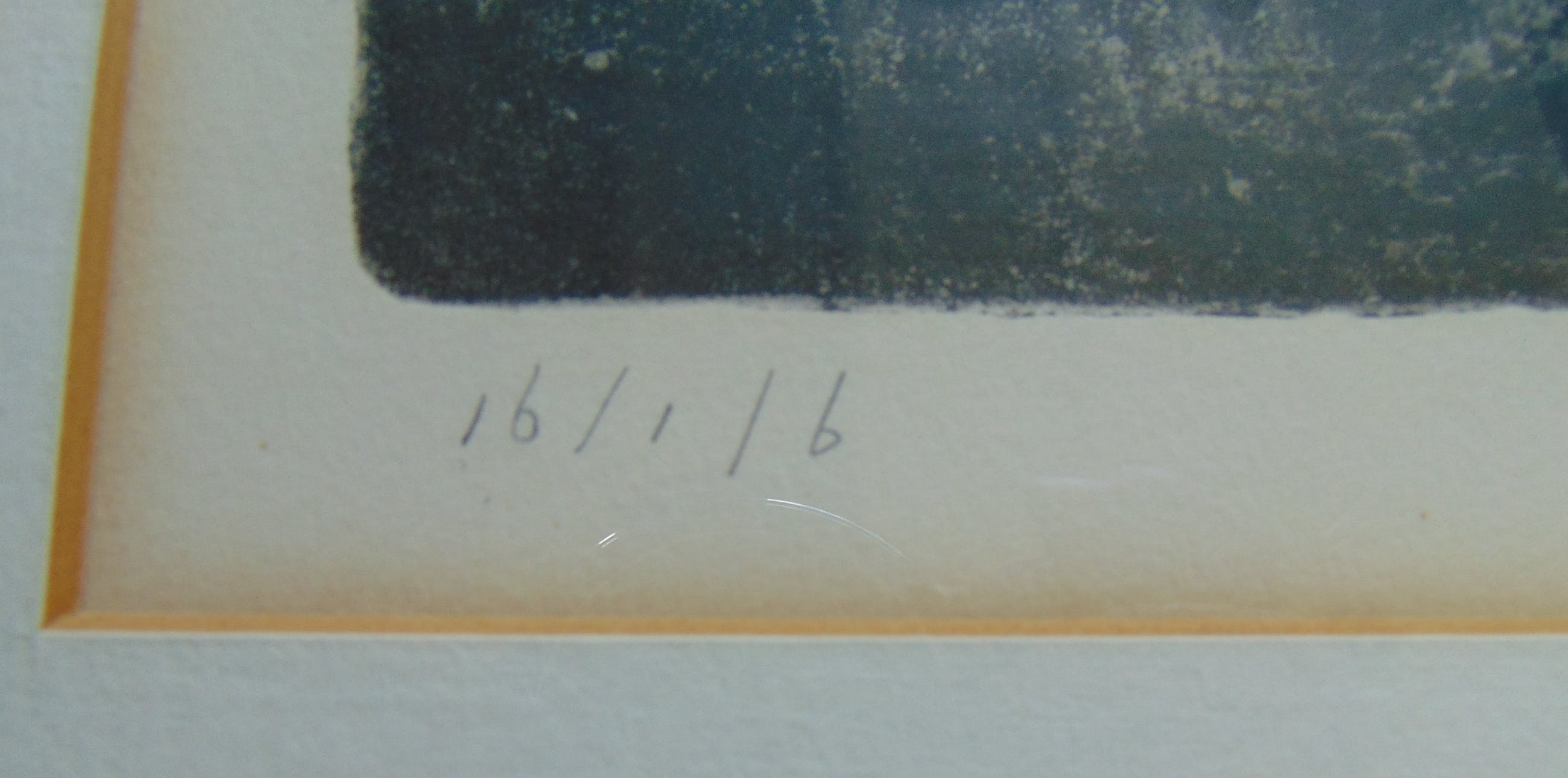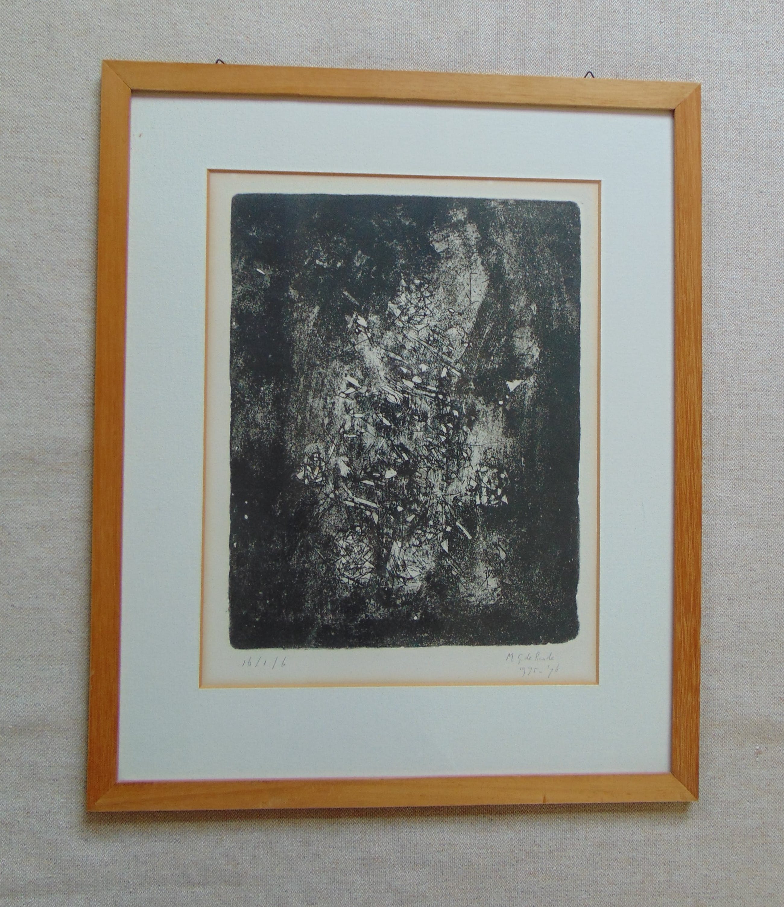 Dit werk is rechtsonder gesigneerd. Het werk is ingelijst met passe-partout en zit achter glas.