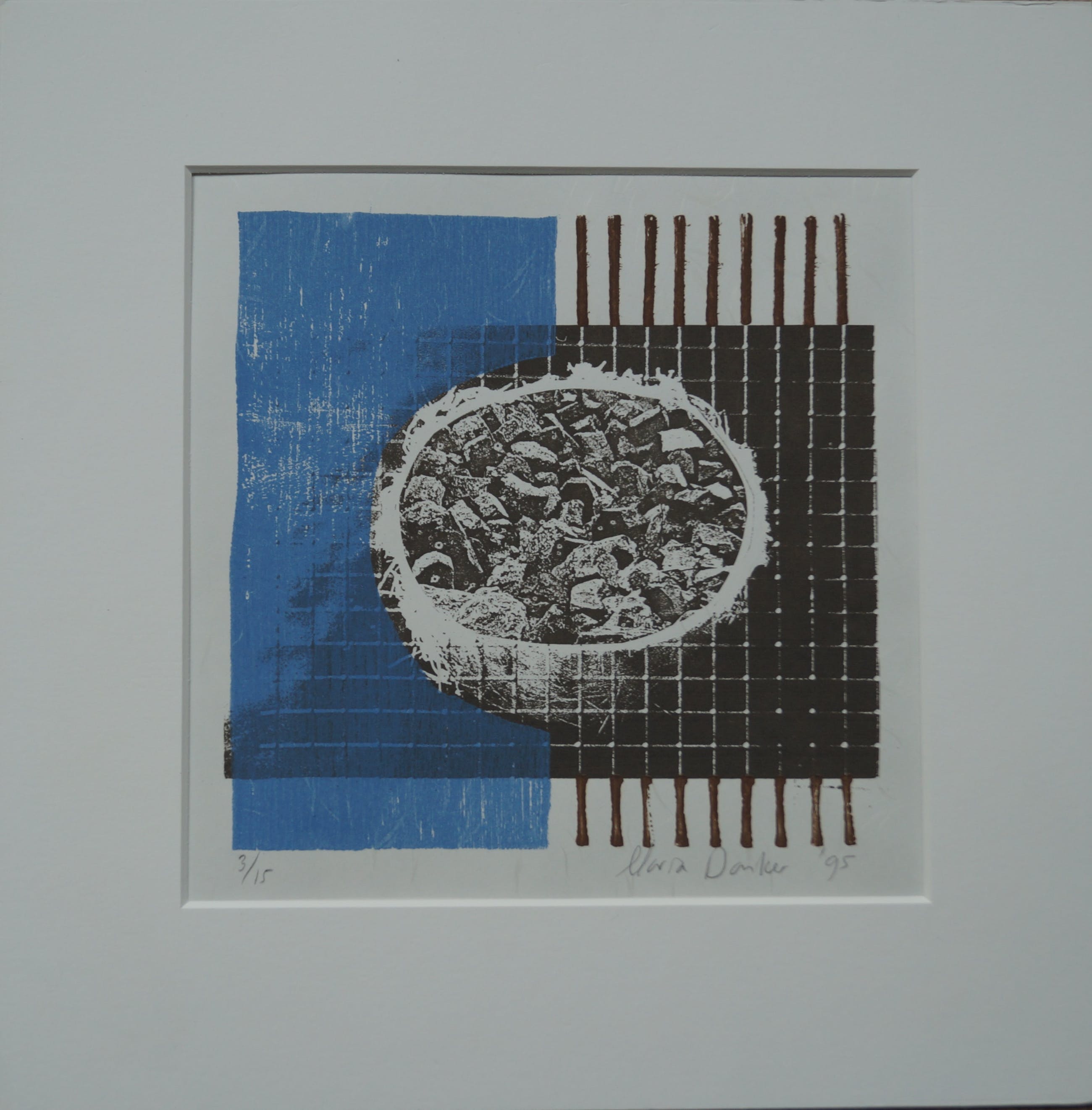 Mooie houtsnede van Maria Donker In passe-partout geplaatst Oplagenummer 3/ 15 In zeer goede conditie