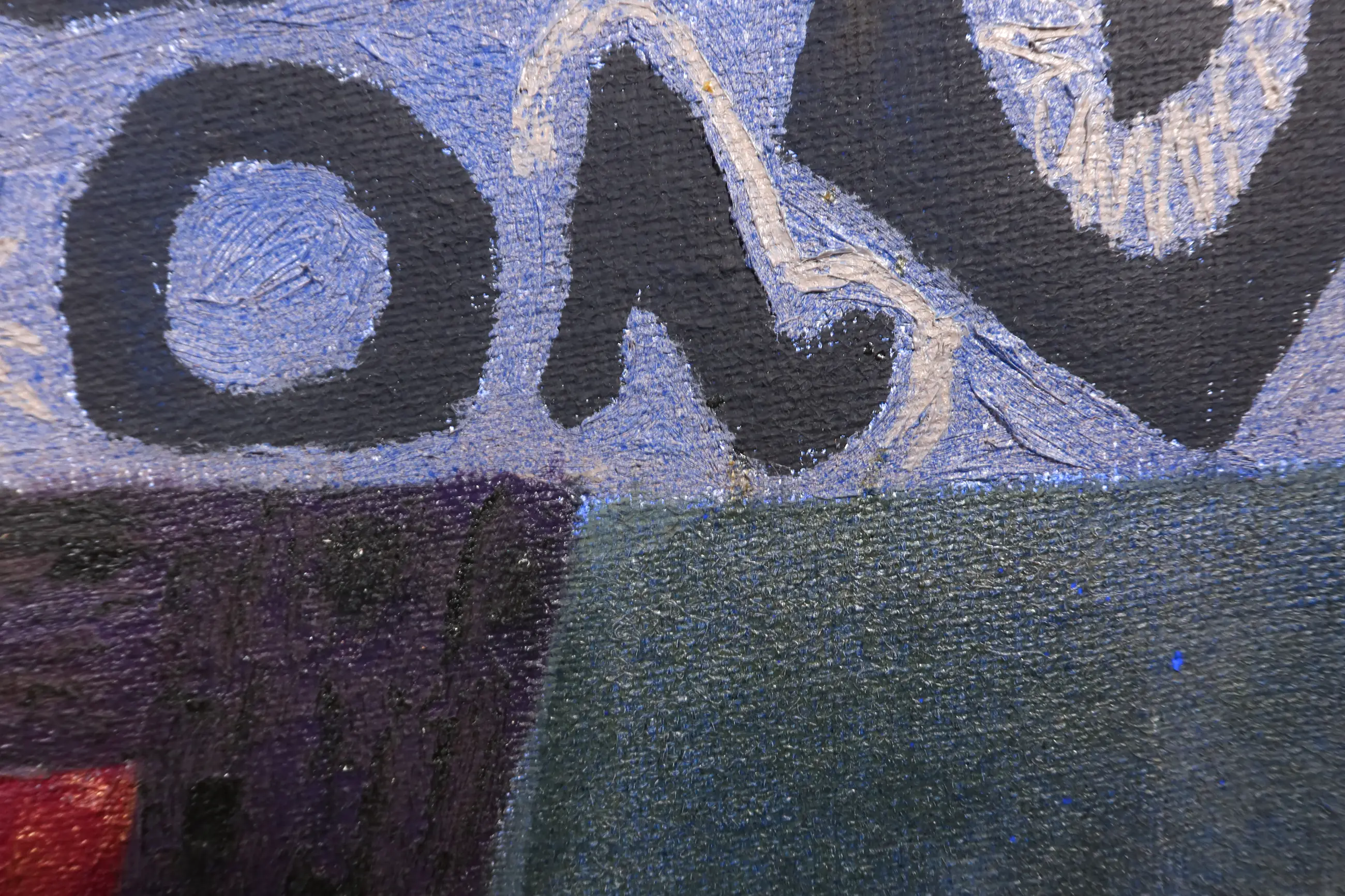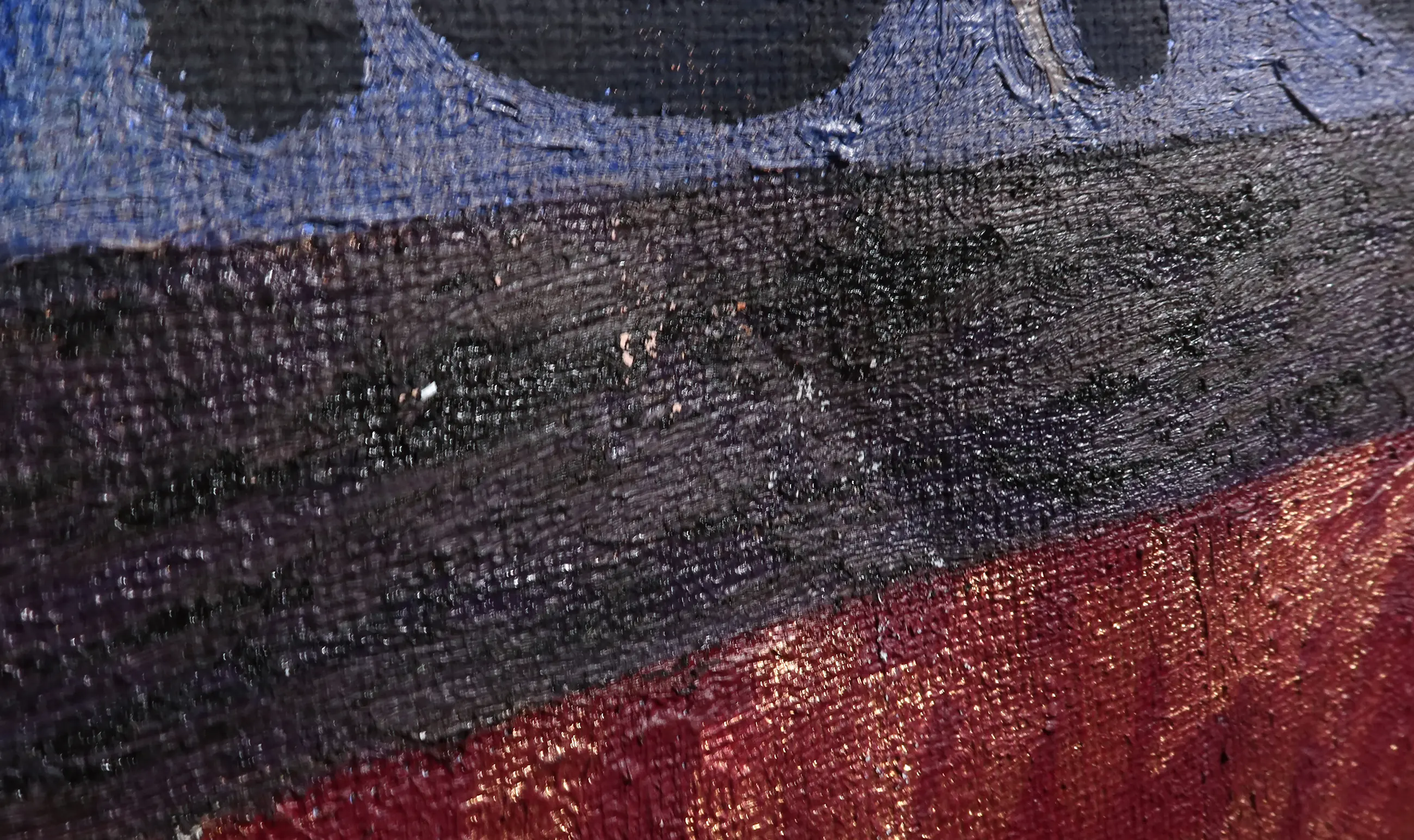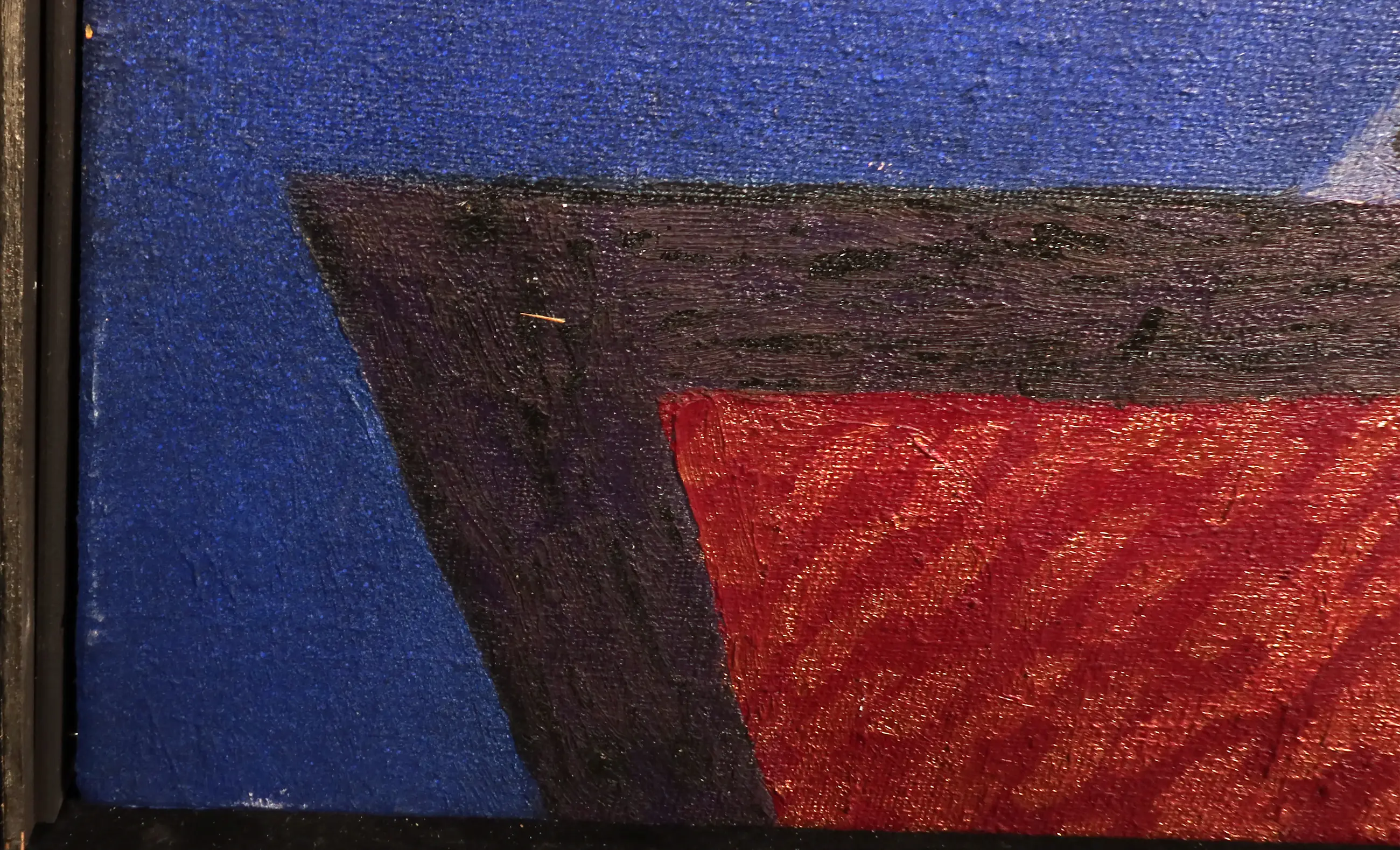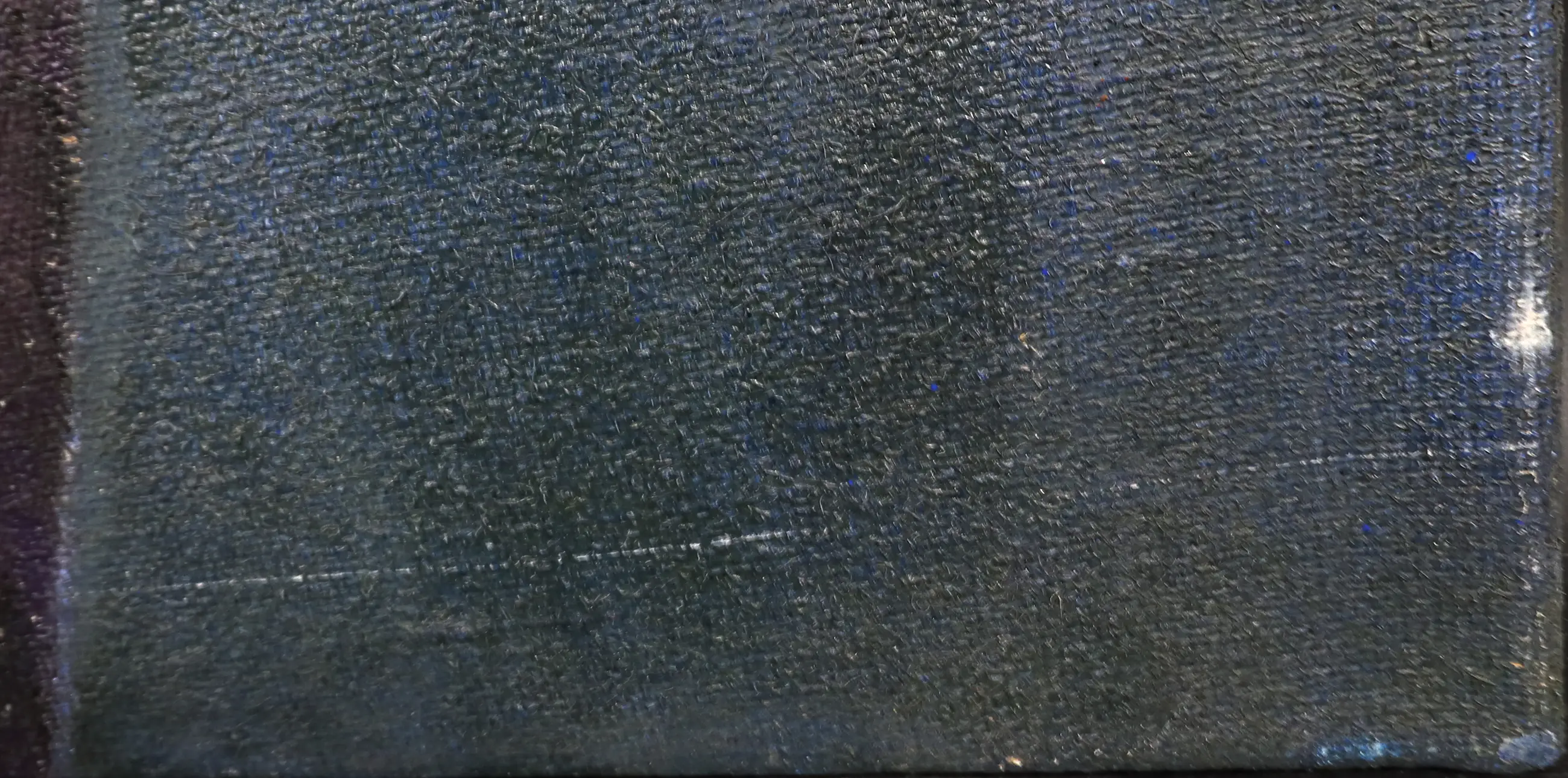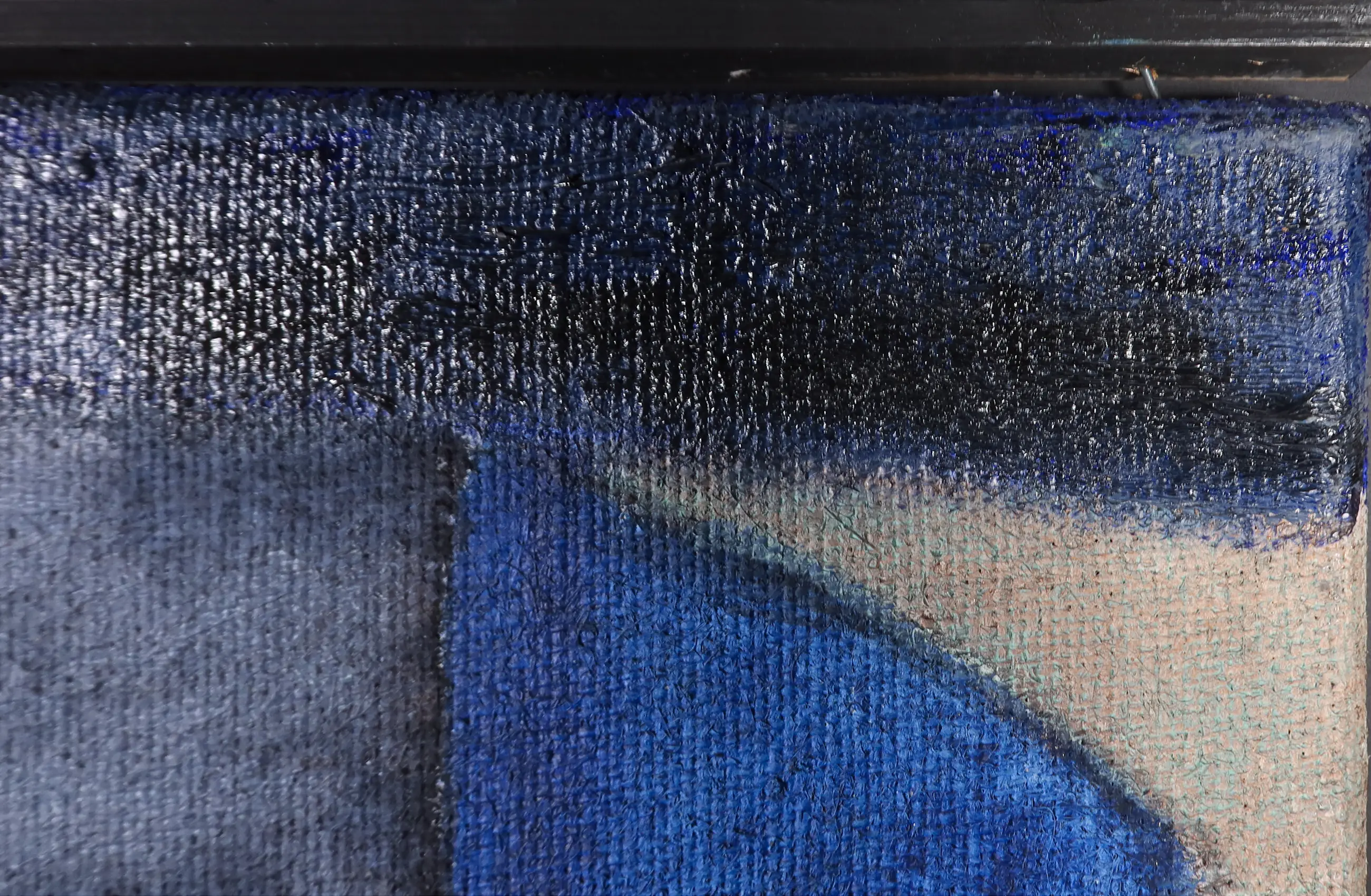 | Ondanks wat kleine plekjes verfschade en butsen is het doek algeheel in relatief goede staat. Echter is de lijst beschadigd. Er missen twee latten (rechts en onder) en de lat bovenin zit losjes. | |