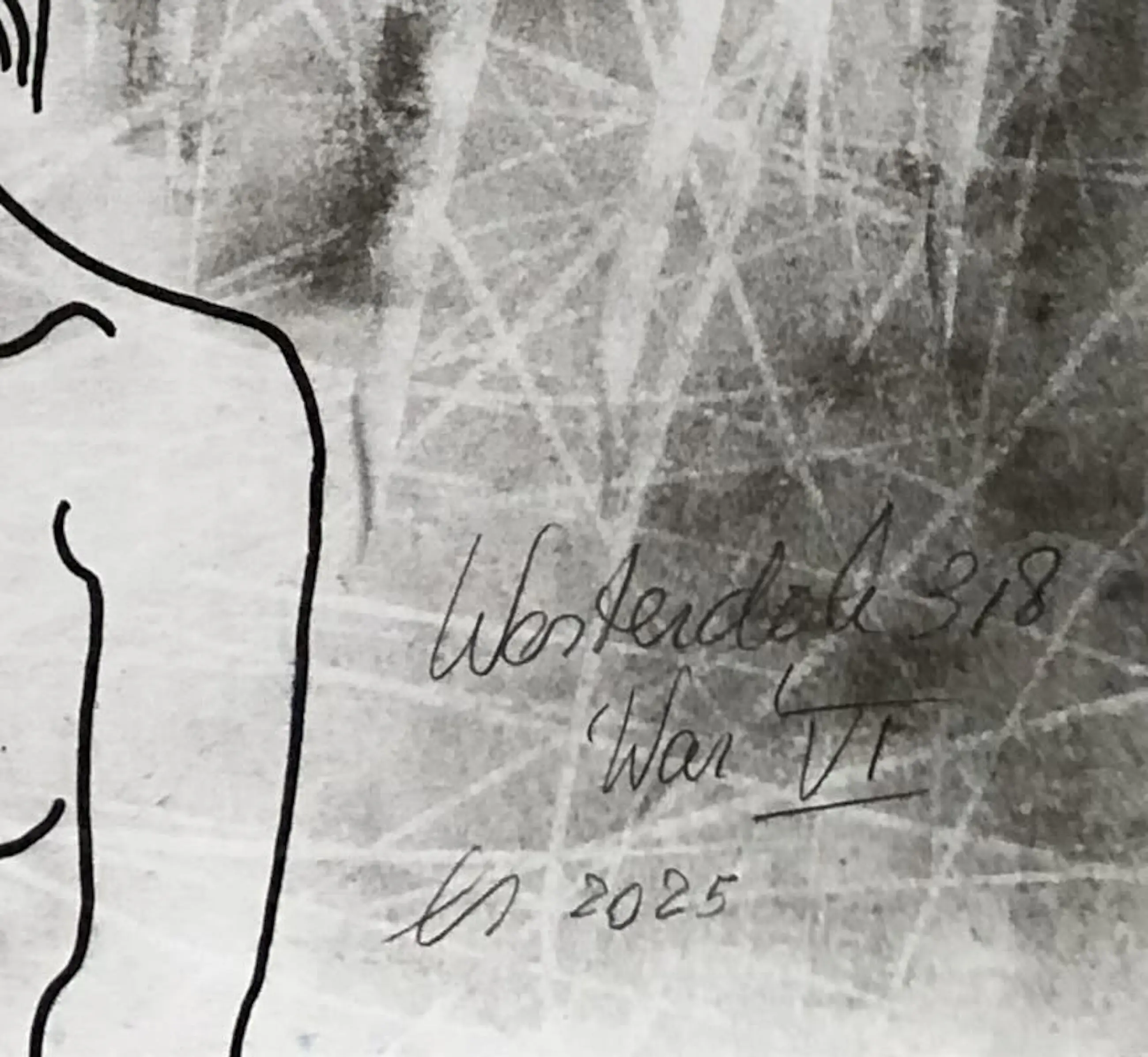 Westerdok 318 'War VI' is onderdeel van de nieuwste serie van Maria Es, bestaande uit acht tekeningen die voortkomen uit haar werkperiode bij de Westerdok 318 Ateliers in Amsterdam (2017–2018). In deze serie krijgen getekende modellen een eigen stem en reageren zij op actuele maatschappelijke spanningen. De tekening Westerdok 318 'War VI' verwijst expliciet naar de huidige dreiging en oorlogen wereldwijd. De figuren in het werk zijn niet alleen stille getuigen, maar ook actieve dragers van emotie en reflectie. Uitgevoerd in houtskool, fineliner en rode inkt op papier. Formaat: 35 x 35 cm. Gesigneerd. Uniek werk. Niet ingelijst.