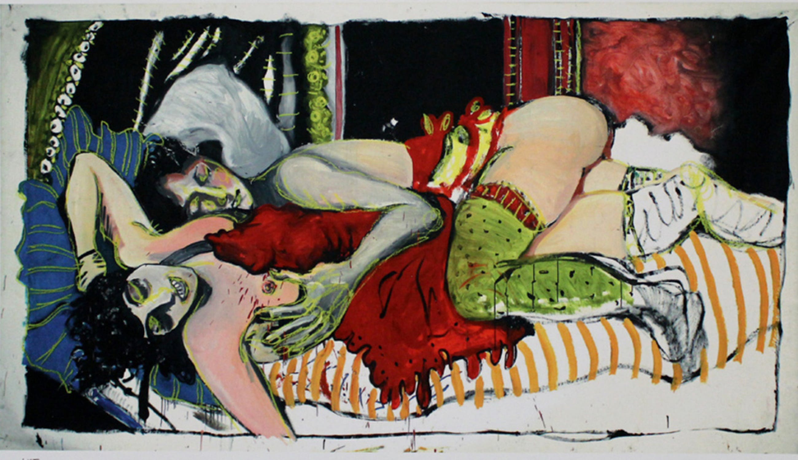 Materiaal: Glicee op handgeschept katoenpapier, Naar een van haar grote schilderijen.
