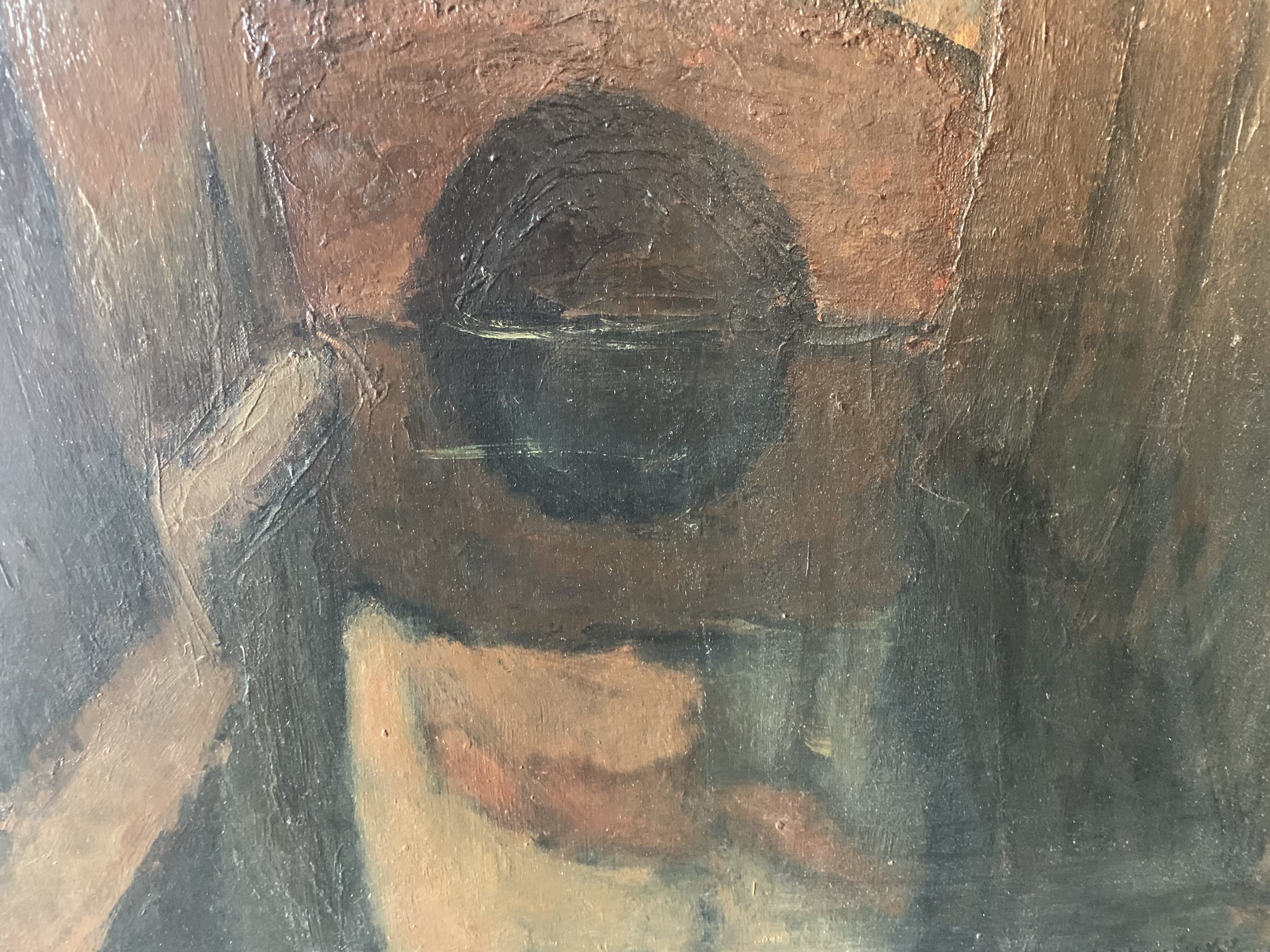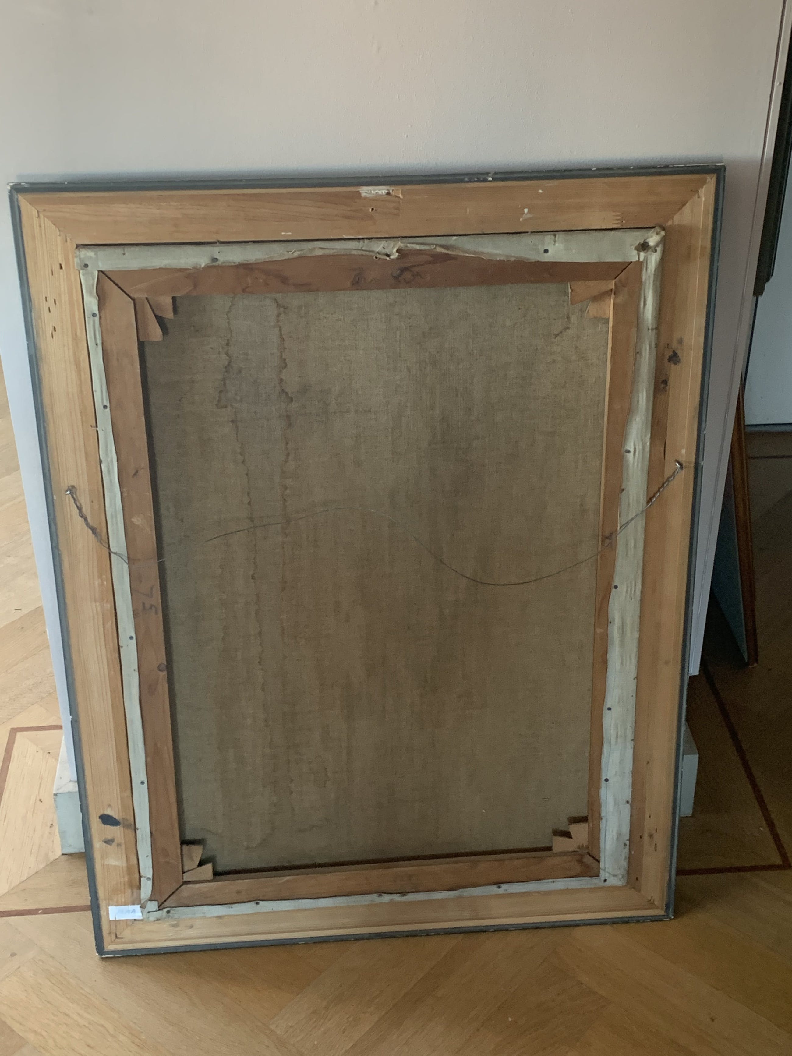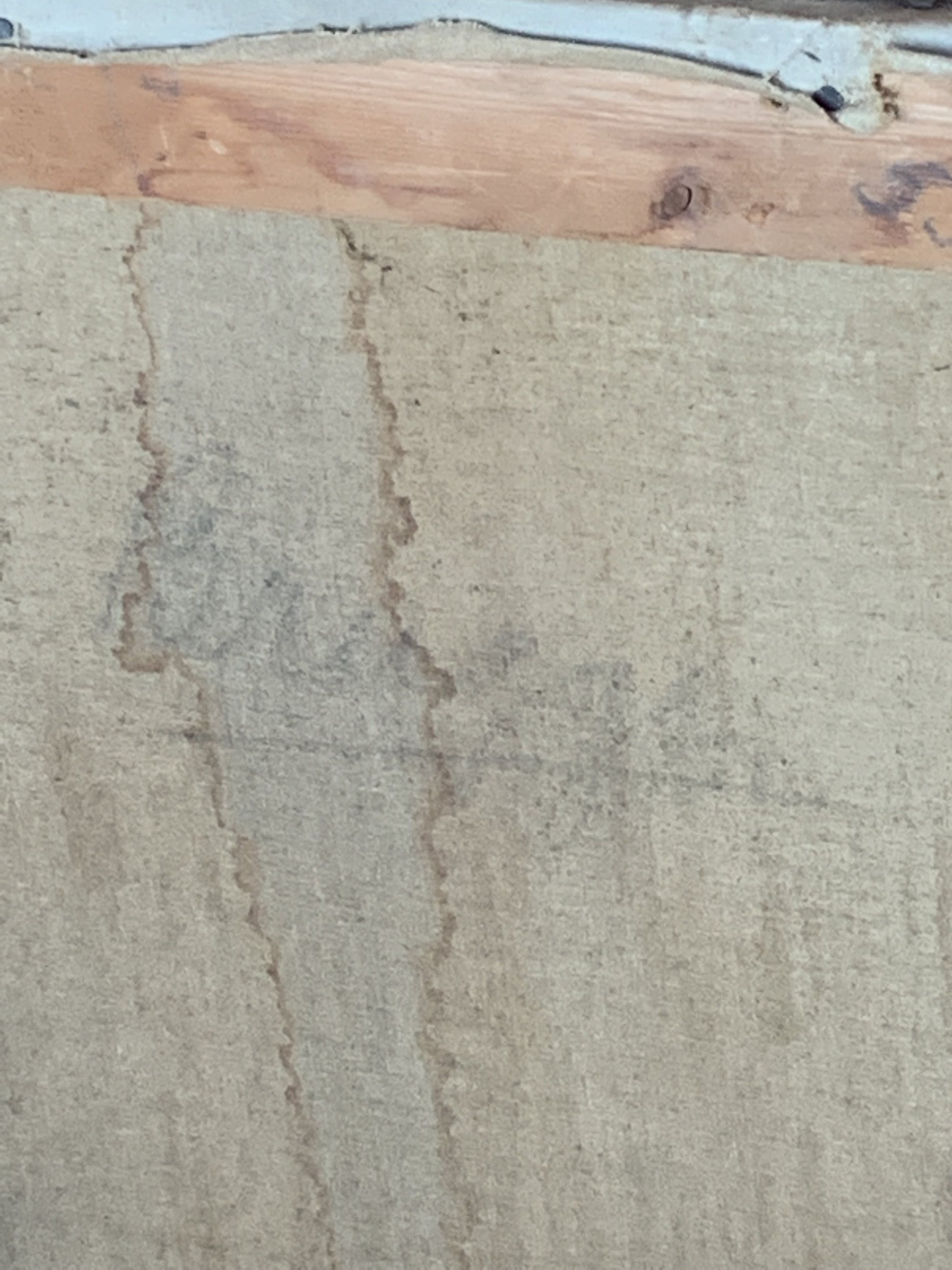 Een gracht met gezicht op de stad in het oude centrum van Brugge is ook het onderwerp van dit schilderij. Op de achterzijde staat geschreven ‘Brugge’ (zie foto’s).