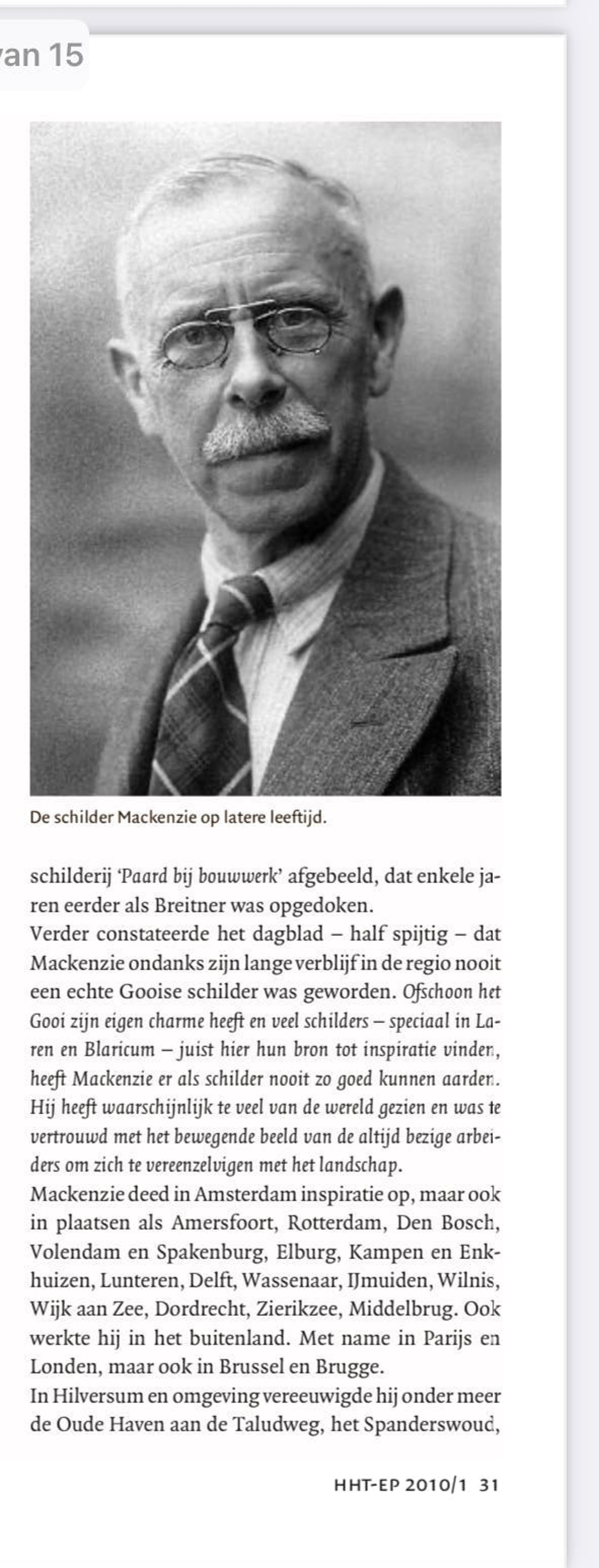 Zijn stadgenoot P. Fontaine uit Hilversum nodige MacKenzie regelmatig uit om mee te reizen naar Zeeland, Antwerpen, Brussel en Brugge.