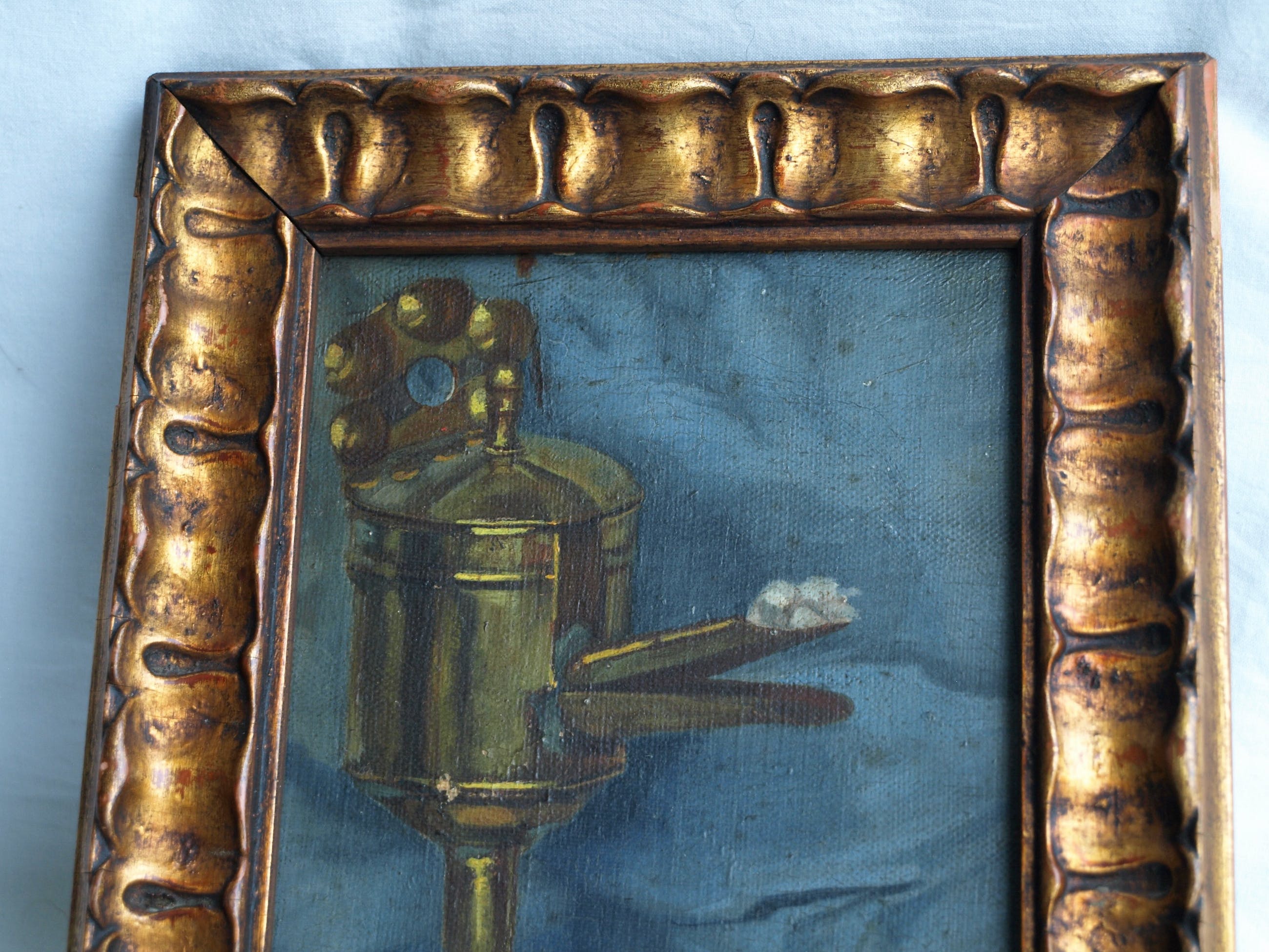 -Geschilderd op doek, gespannen op een houten spieraam en ingelijst in de originele houten lijst met sierrand.