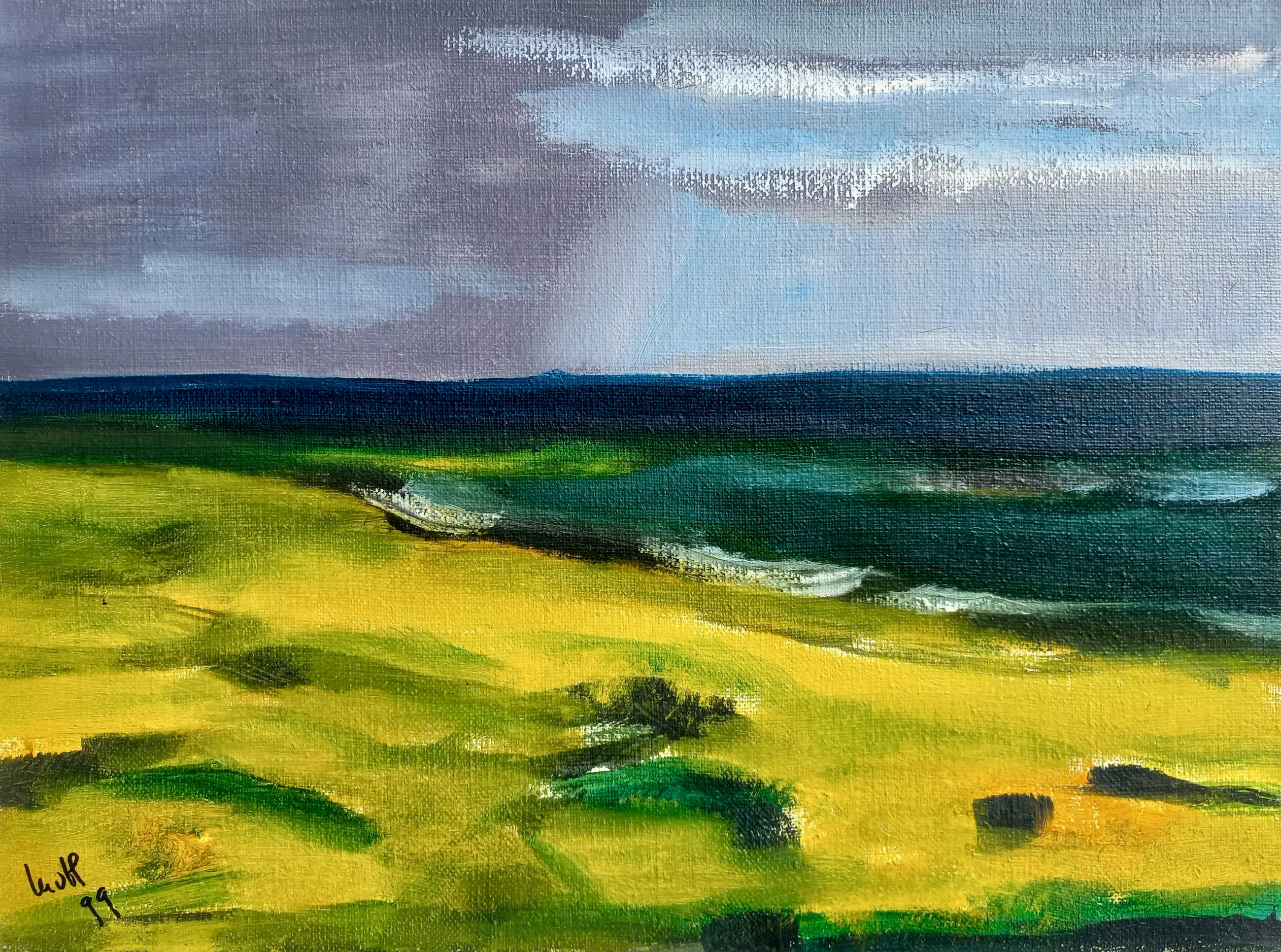 Prachtig landschap/zeegezicht van Maria van Heeswijk. Olieverf op doek, gemonogrammeerd en gedateerd (’99) linksonder, mooi ingelijst door lijstenmakerij Monart. Alles in zeer goede conditie. Herkomst: Galerie Lambert Tegenbosch, Heusden aan de Maas.