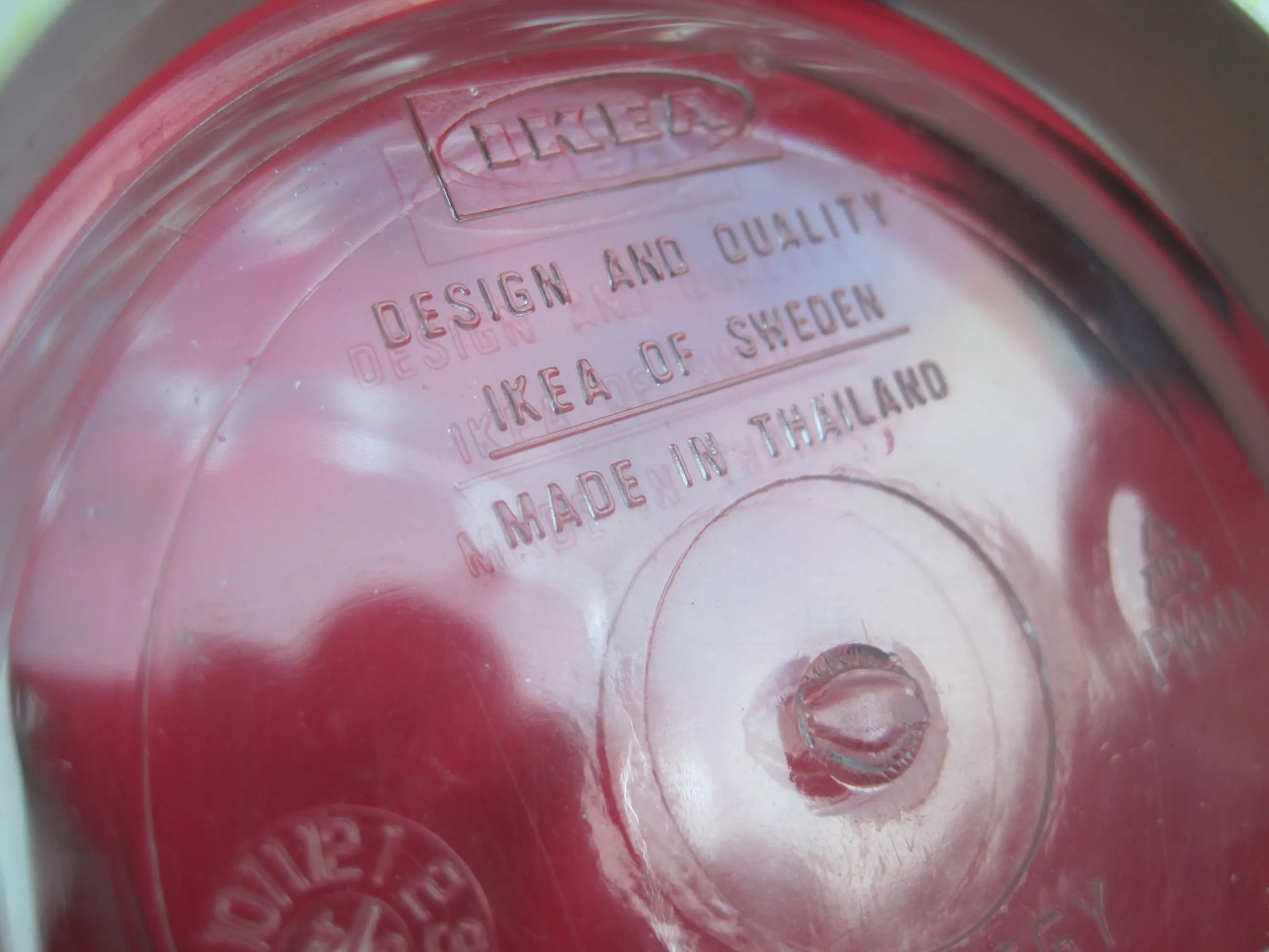 Gave ijsklontjes vermaler in Memphisstijl ontworpen door Maria Vinka voor Ikea. Onderop staat vermeld Designed by M Vinka. Deze vermaler is gemaakt van kunststof.