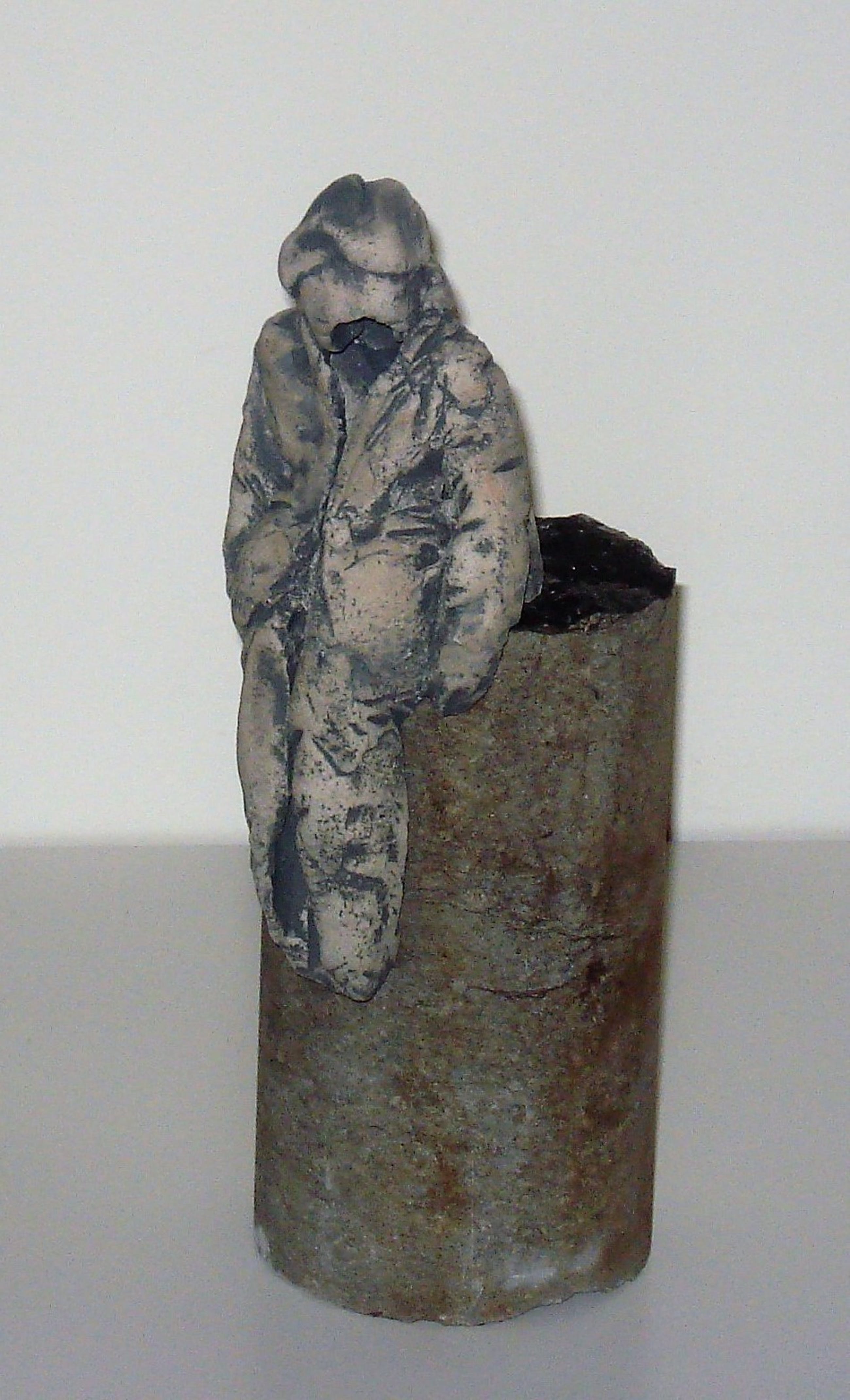 De mensfiguur maakt een eenzame, introverte indruk. Ditb eeld wordt versterkt door het figuurtje leeg te houden. Alleen de kleding als omhulsel van het lichaam wordt weergegeven; het lichaam is een holte.. Door weg te laten, wordt de toeschouwer gedwongen om zelf de ontbrekende details in te vullen.