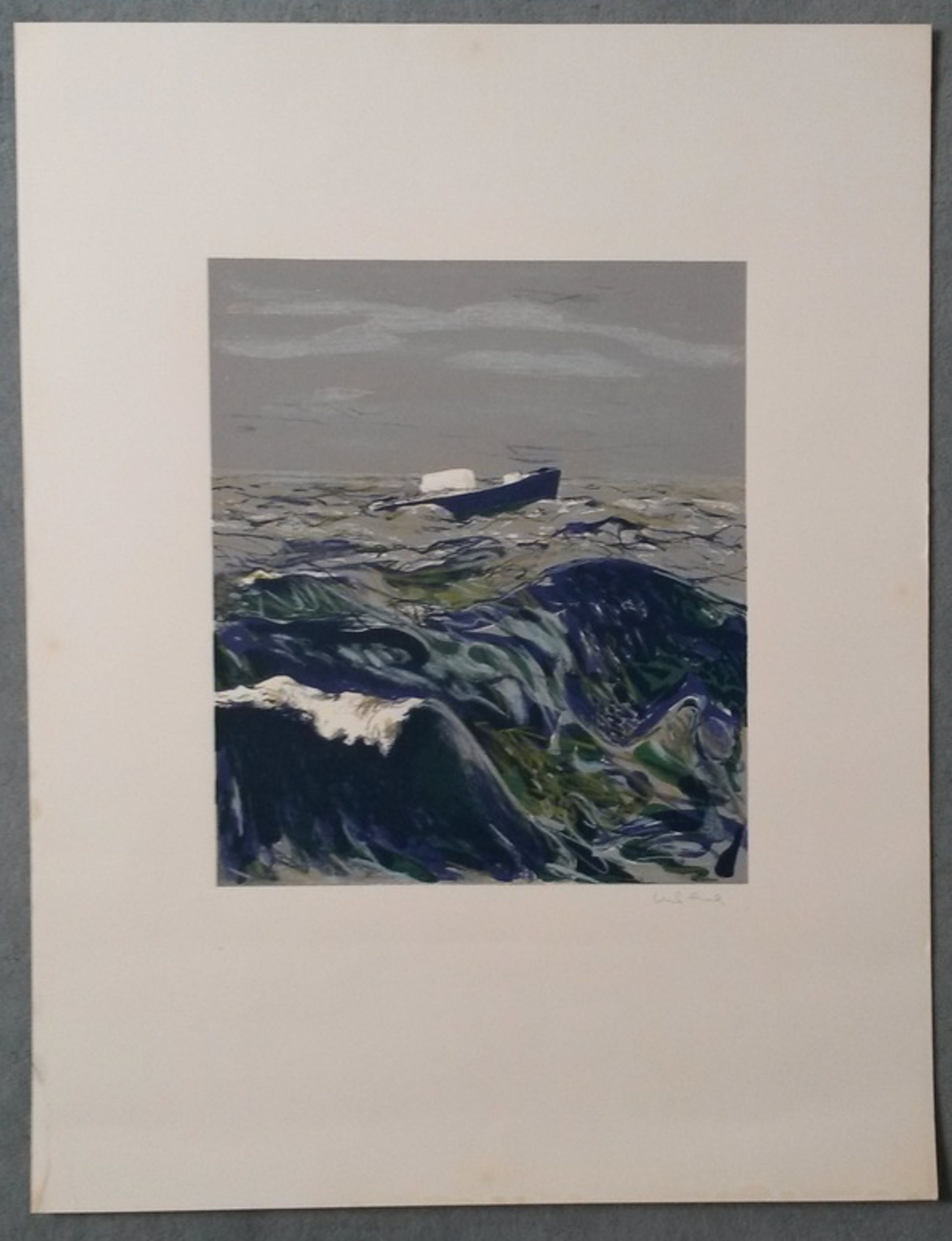 De afbeelding meet 35 x 30 cm, op een blad van 65 x 50 cm. Het werk is niet ingelijst. De zeefdruk is met potlood gesigneerd. De afbeelding is in prima conditie, het blad heeft aan de uiterste randen enkele (vocht)vlekken. Ingelijst achter passe-partout zijn die onzichtbaar.