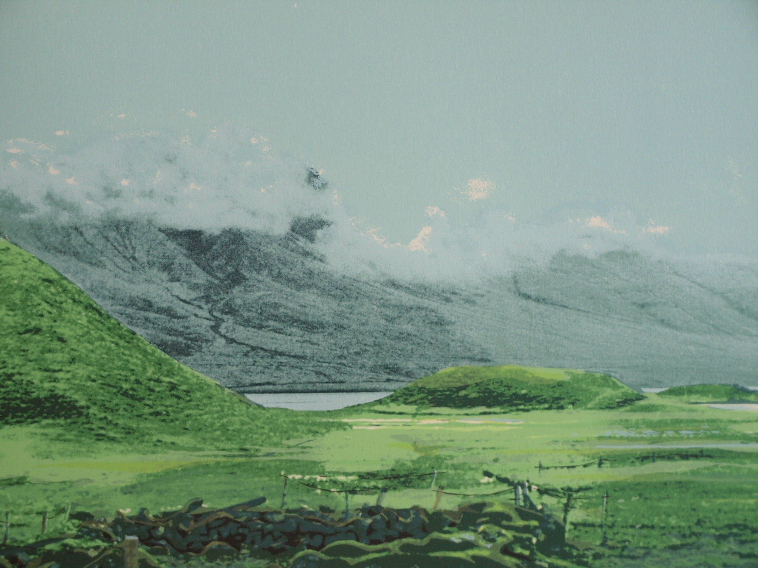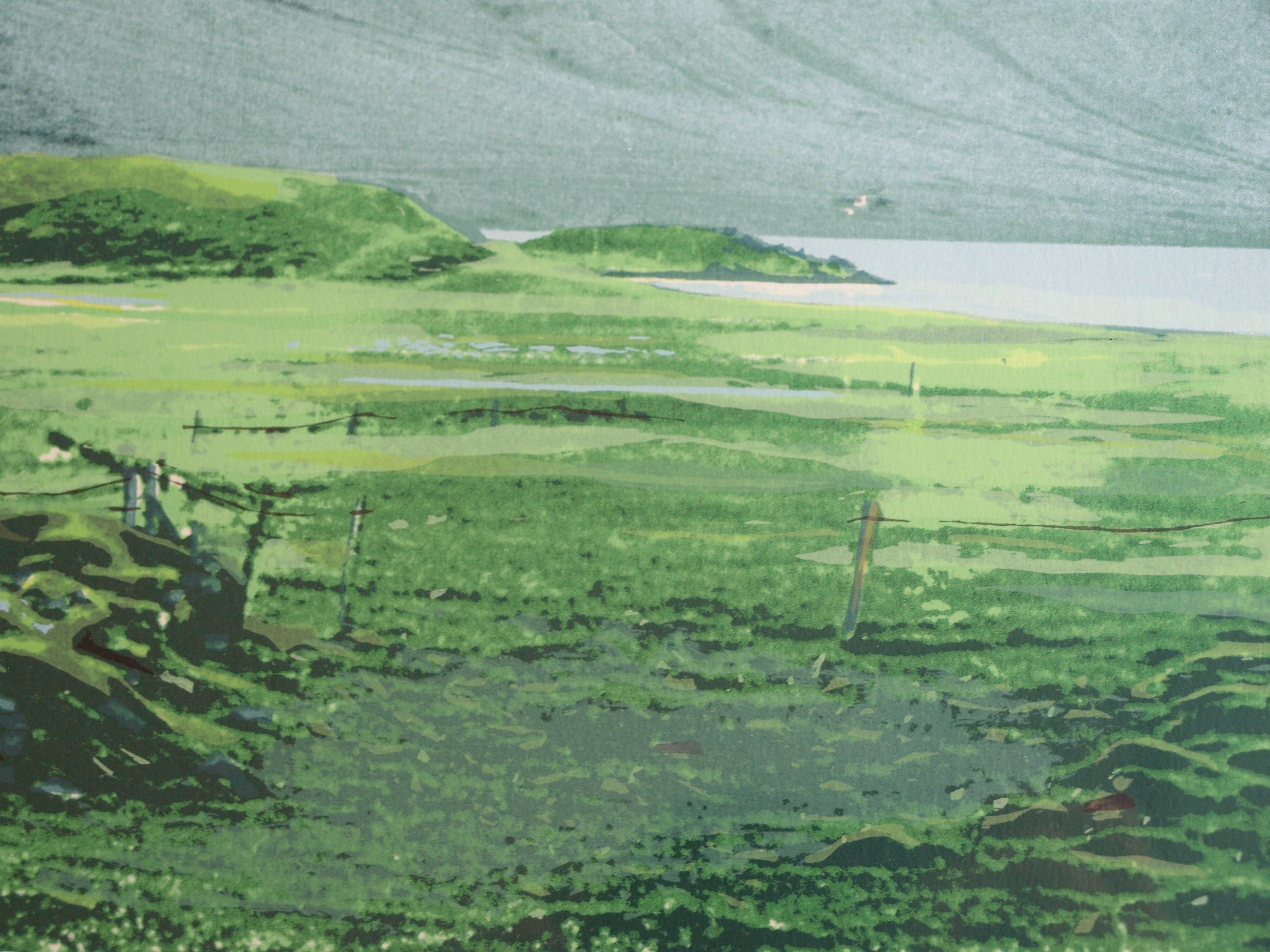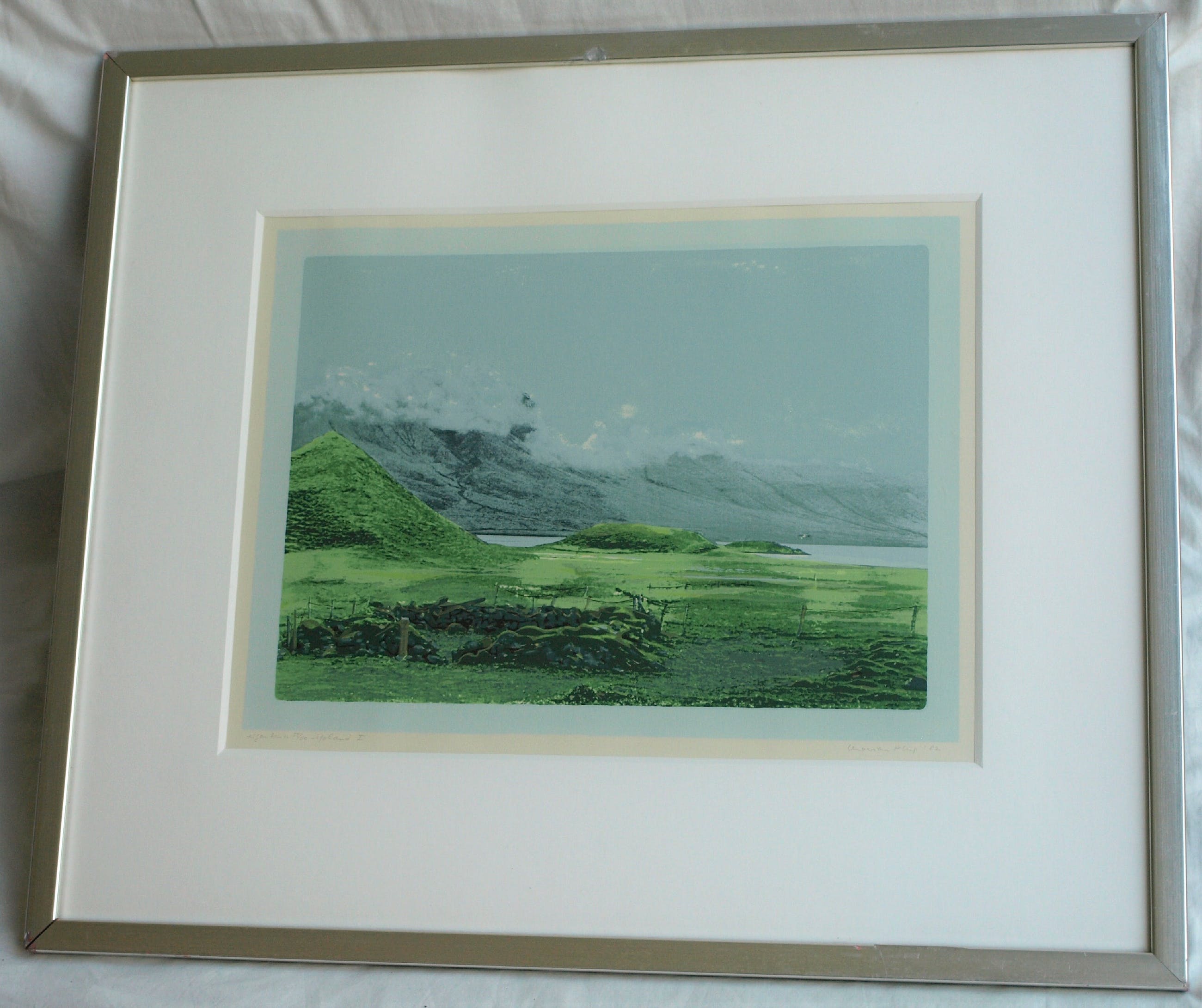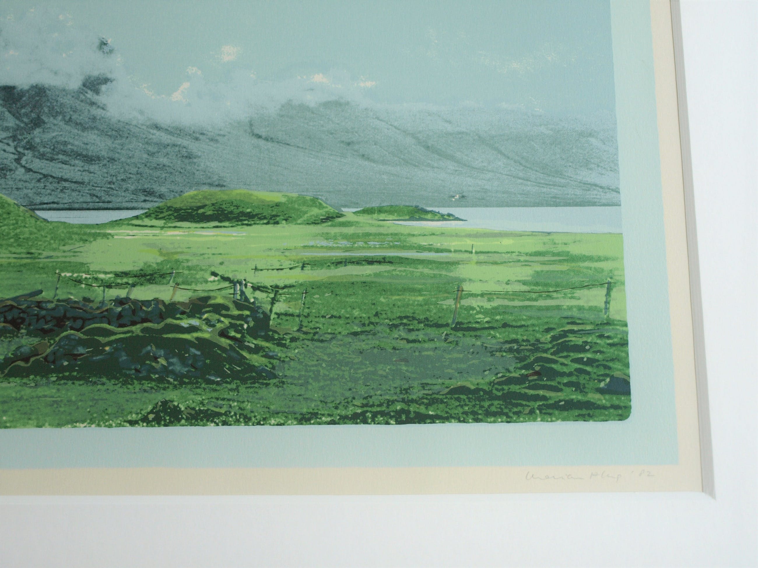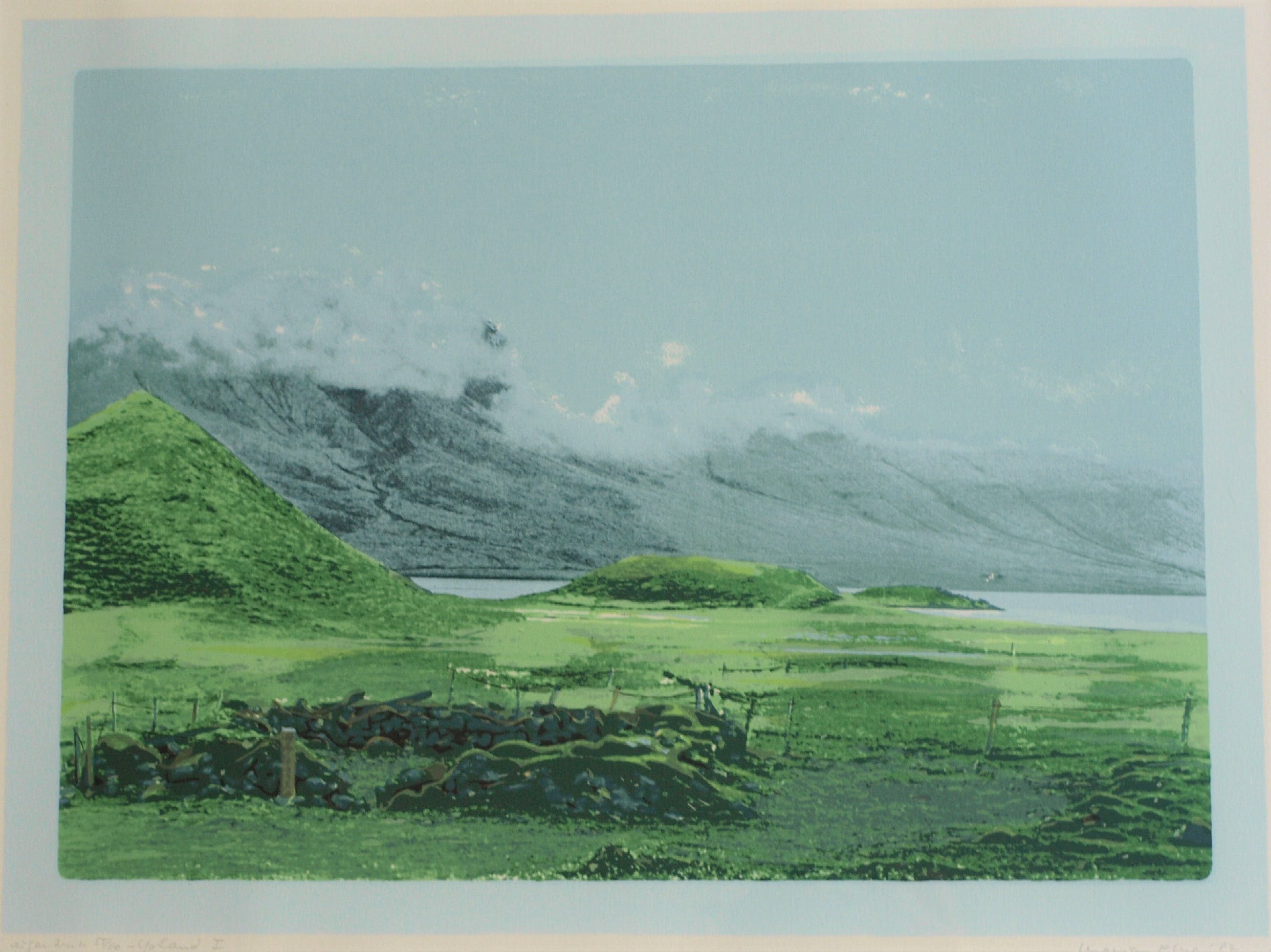 Een zeefdruk uit 1982 van de Nederlandse kunstenares Marian Plug (1937) getiteld: “IJsland I”.