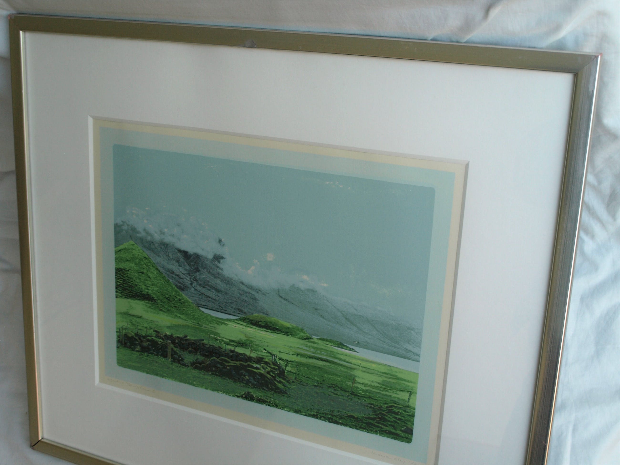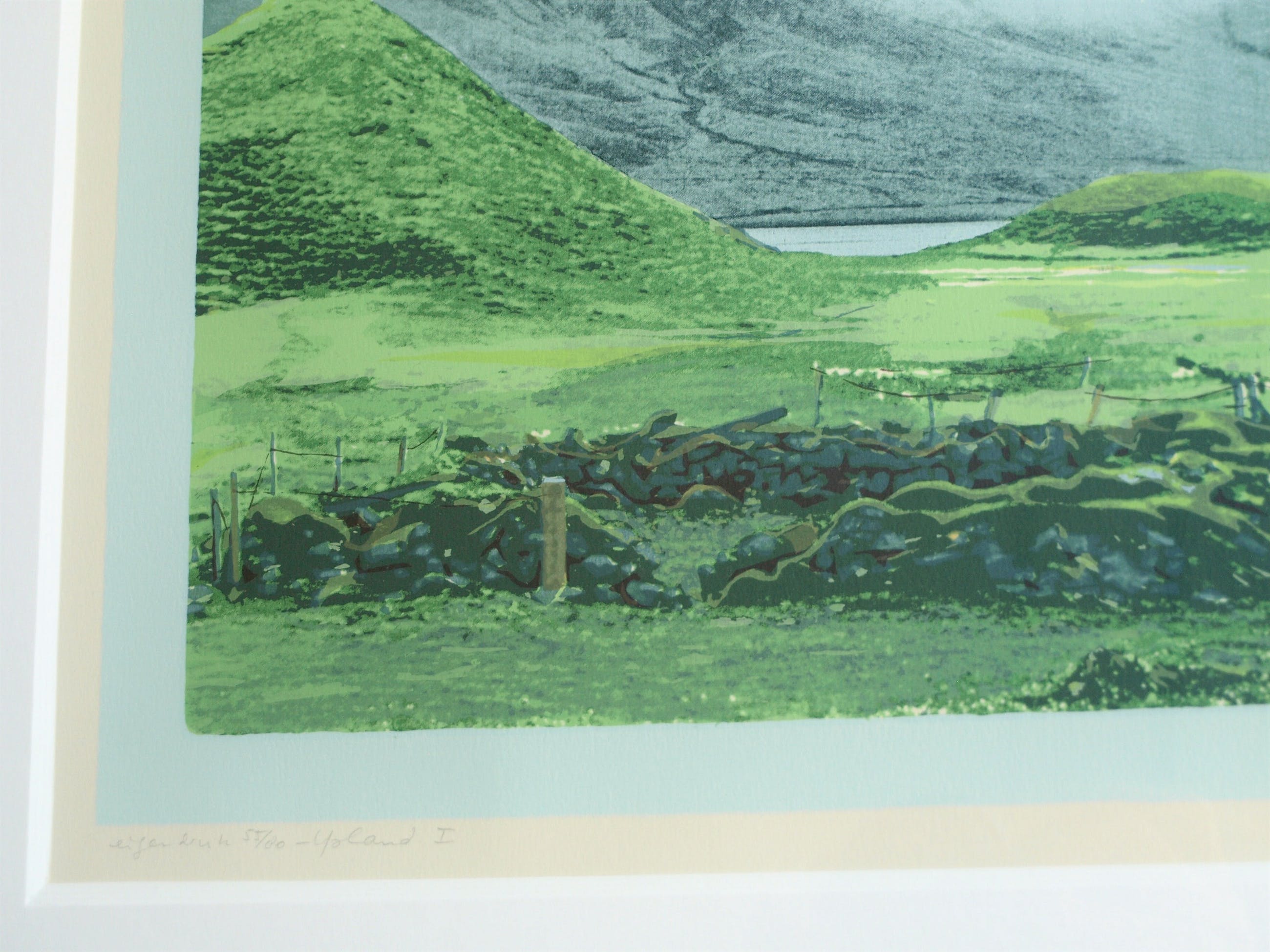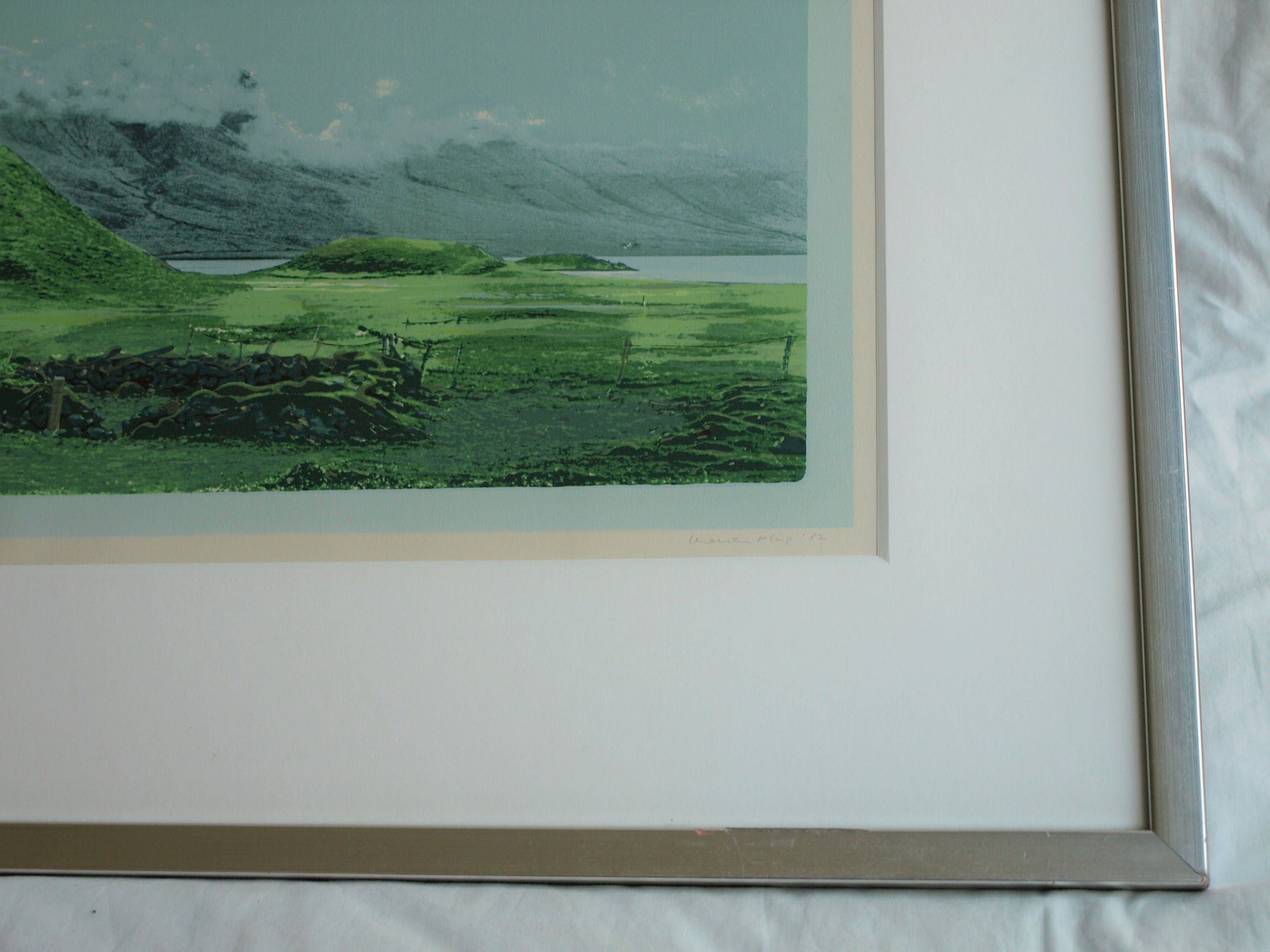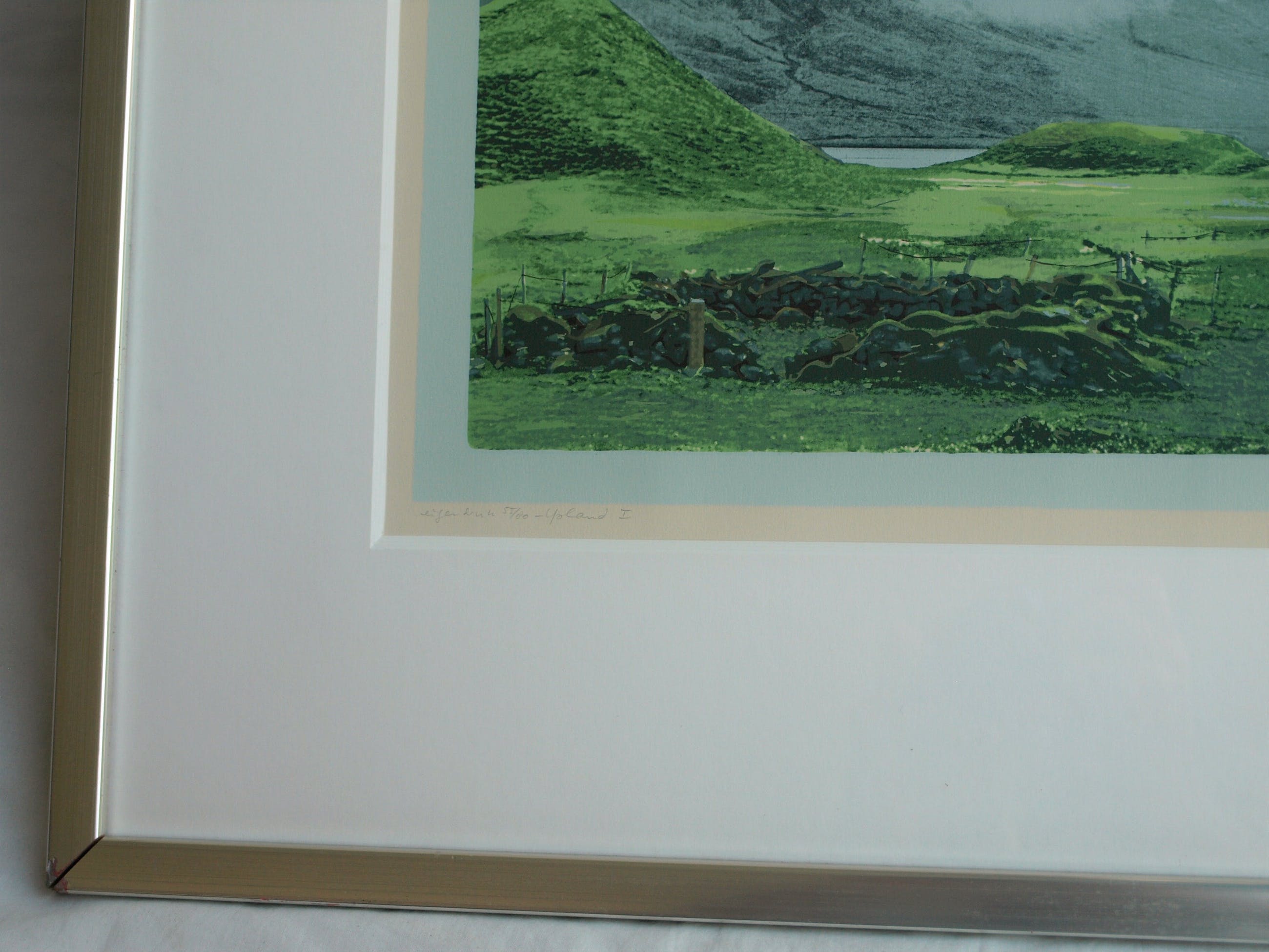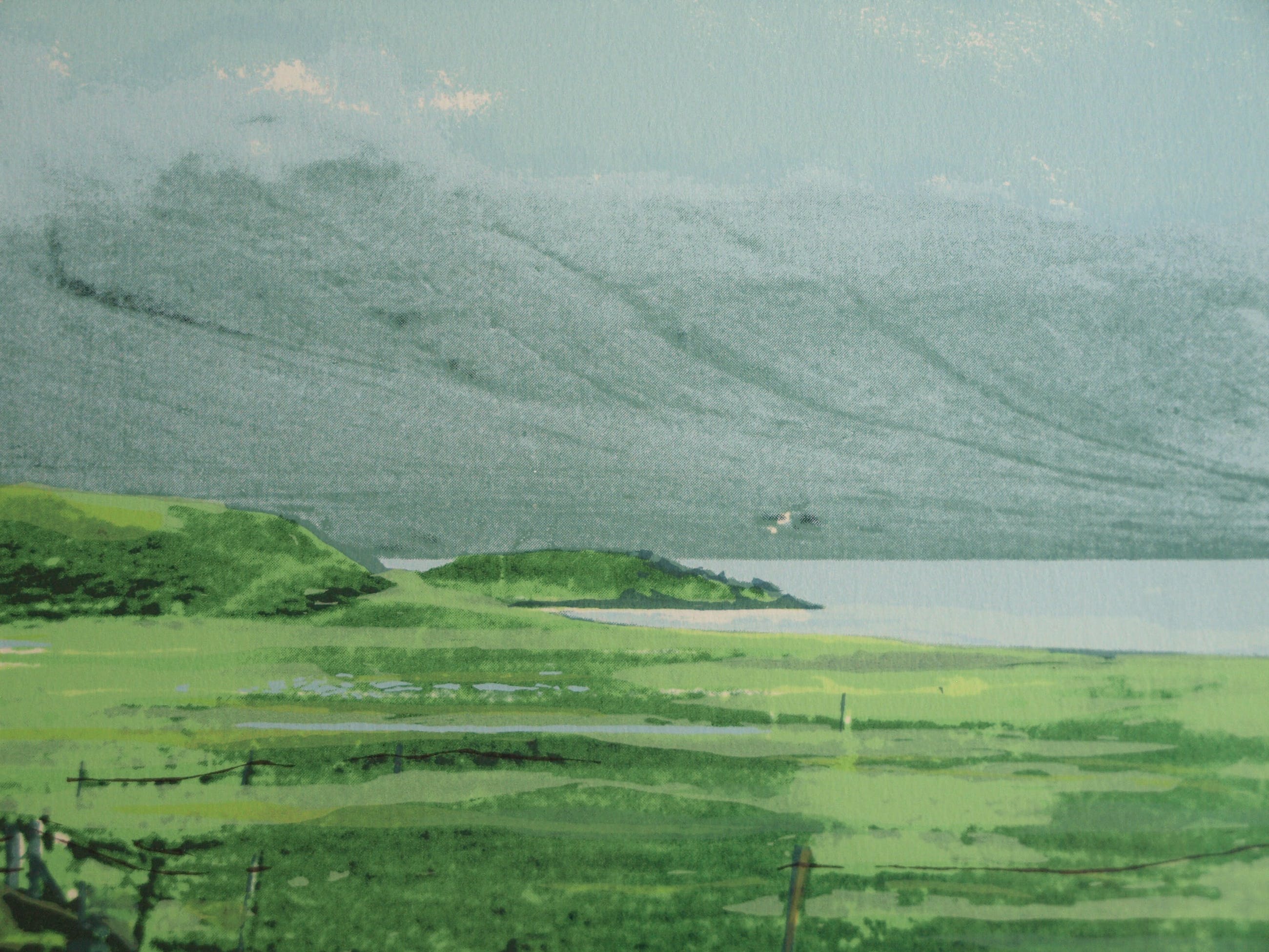 Een zeefdruk uit 1982 van de Nederlandse kunstenares Marian Plug (1937) getiteld: “IJsland I”.