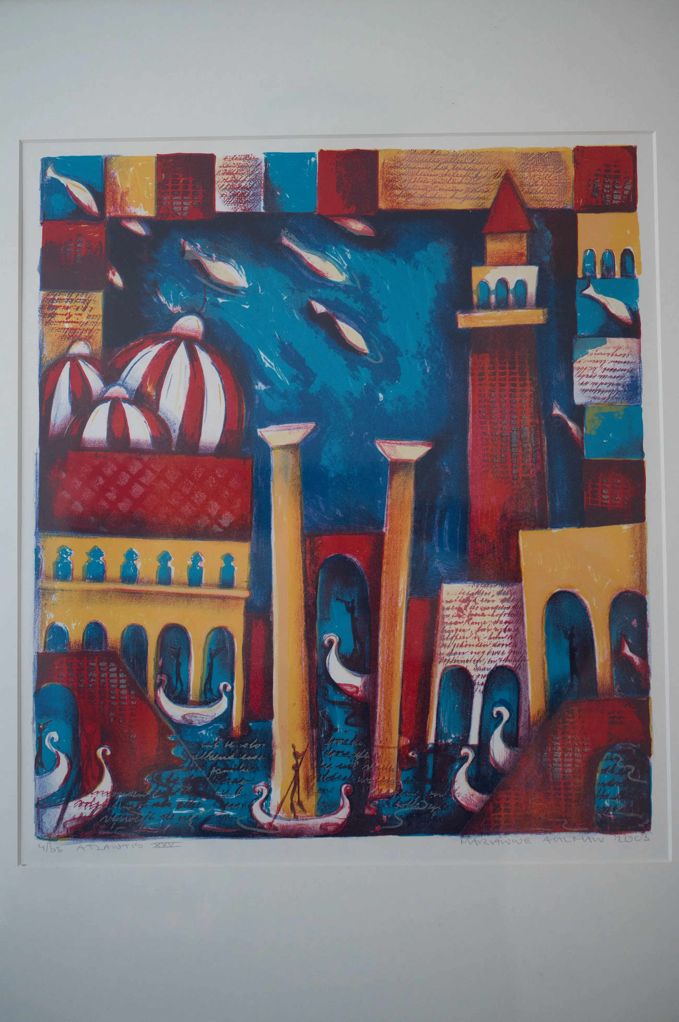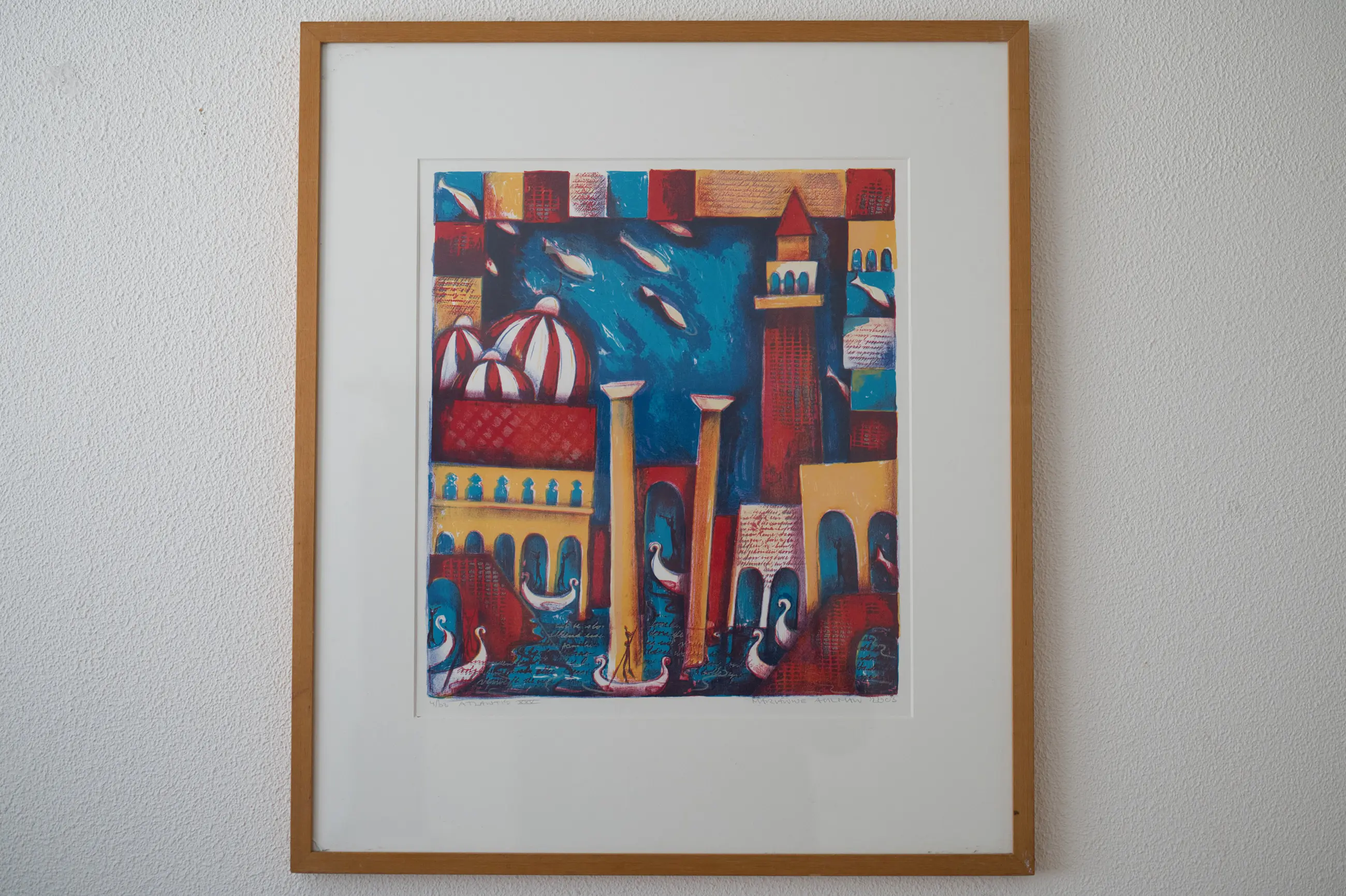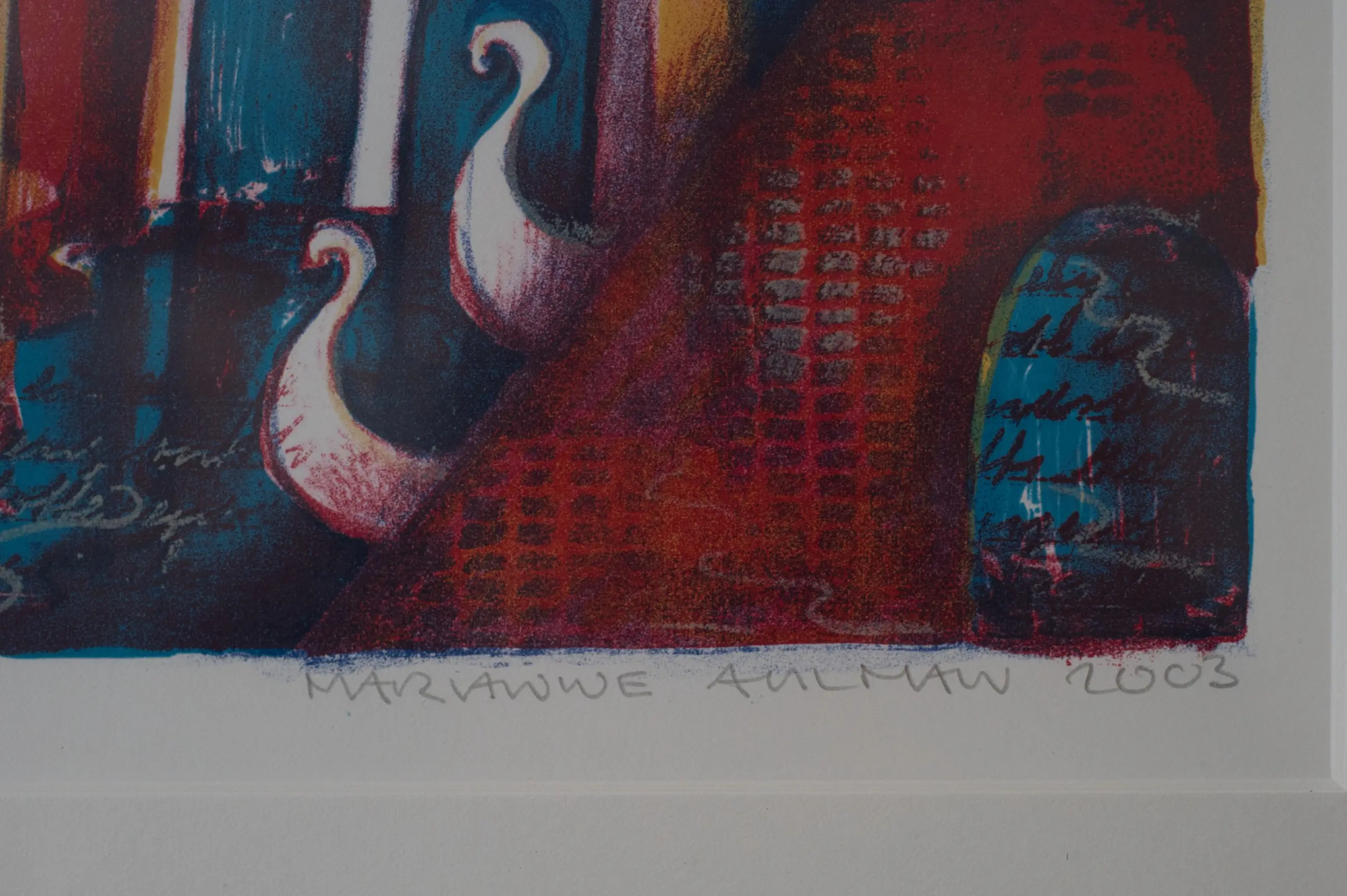 Mooie zeefdruk van Marianne Aulman, De afbeelding is in zeer goede staat, in het glas zit linksonder een heel klein scheurtje.