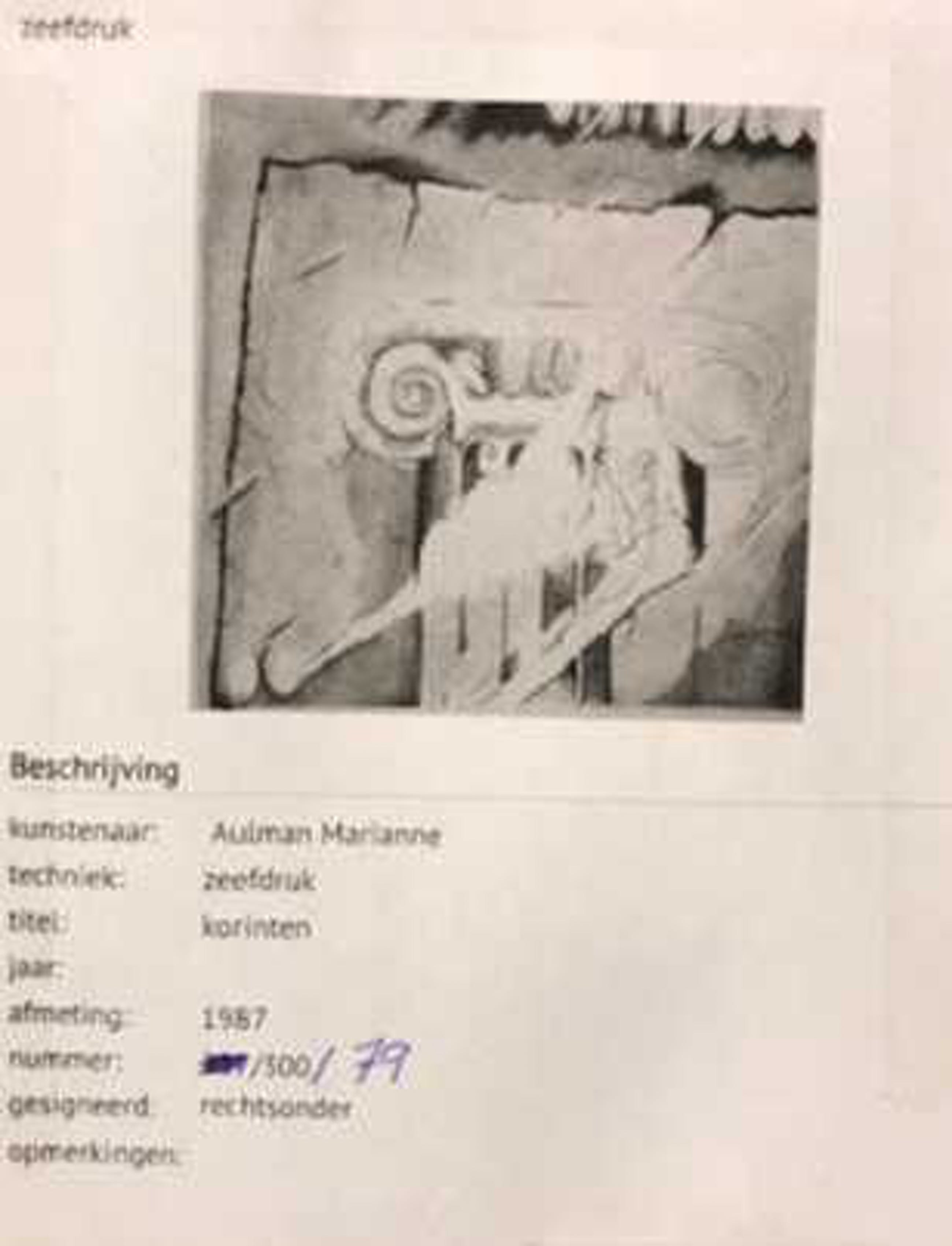 Zeefdruk van Marianne Aulman, genaamd KORINTEN 79 van 300 oplagen