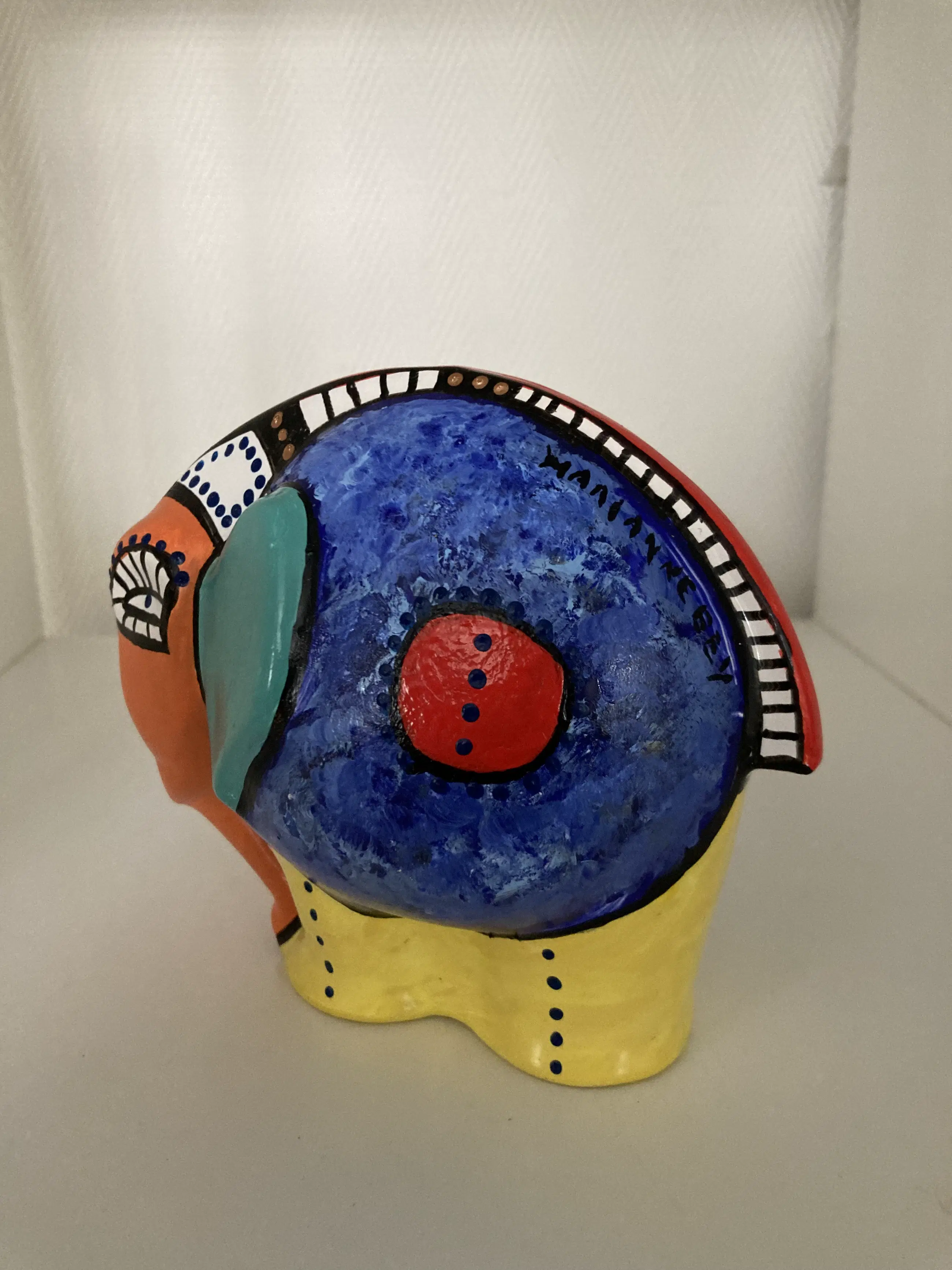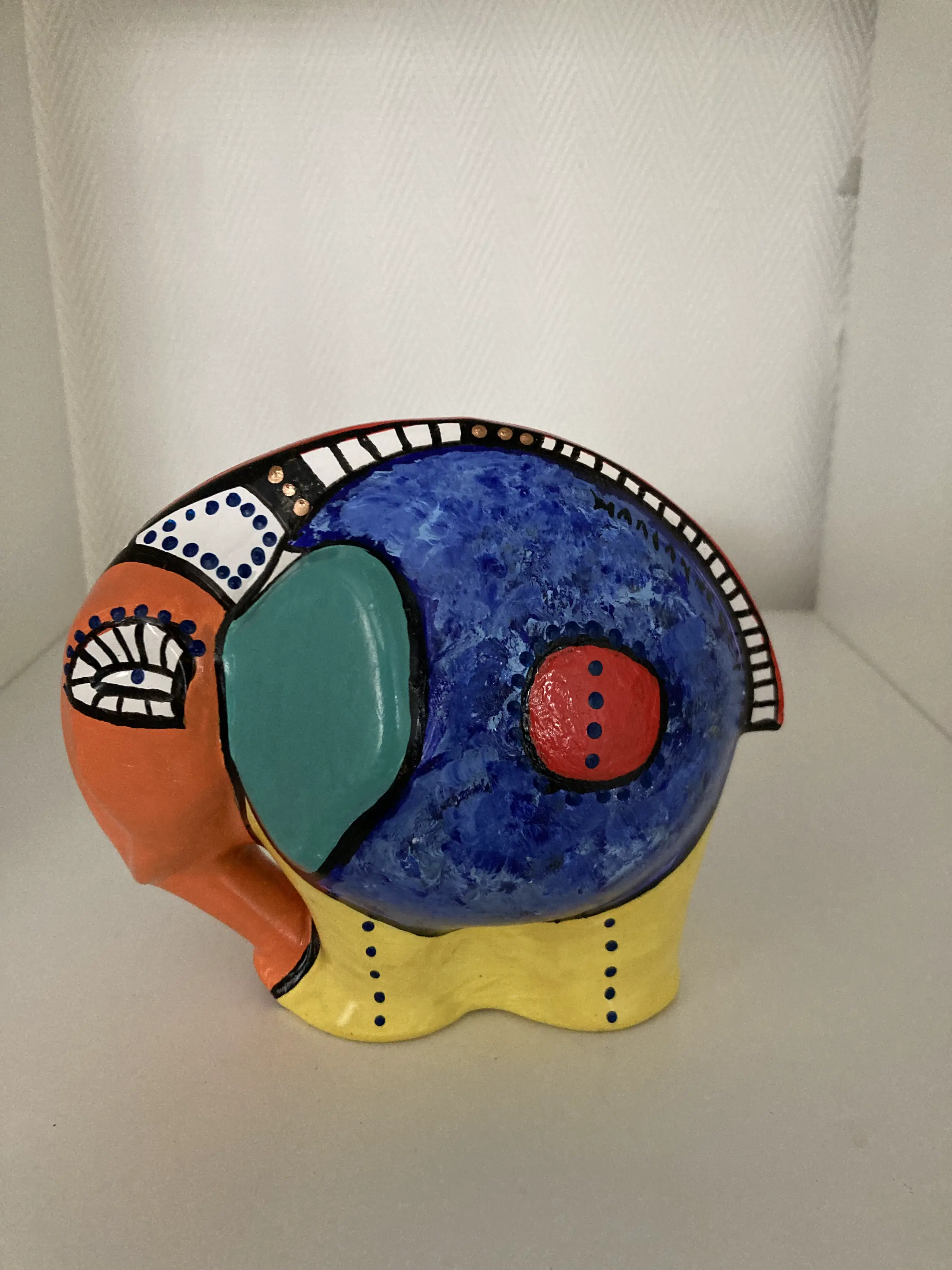 Een uniek en bijzonder keramisch olifantje van designer Marianne Bey Unica en gesigneerd Hand bewerkt en beschilderd . Daarna gebakken in de glasoven op 150 graden . Interessant voor de verzamelaar . Allen MijnKunst items worden aangetekend naar u verstuurd Verzendkosten binnen Nederland : E 9.50’