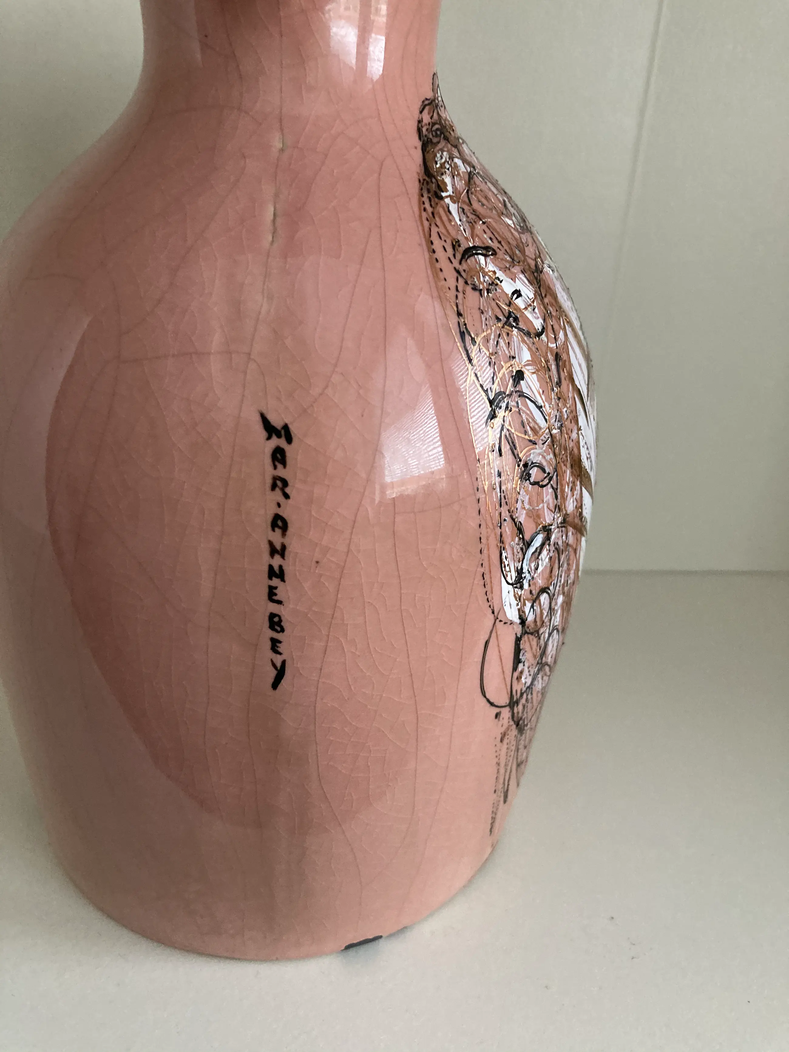 Een unieke keramische kruik / vaas van Marianne Bey Unica en gesigneerd Met certificaat Allen MijnKunst items worden aangetekend verstuurd .