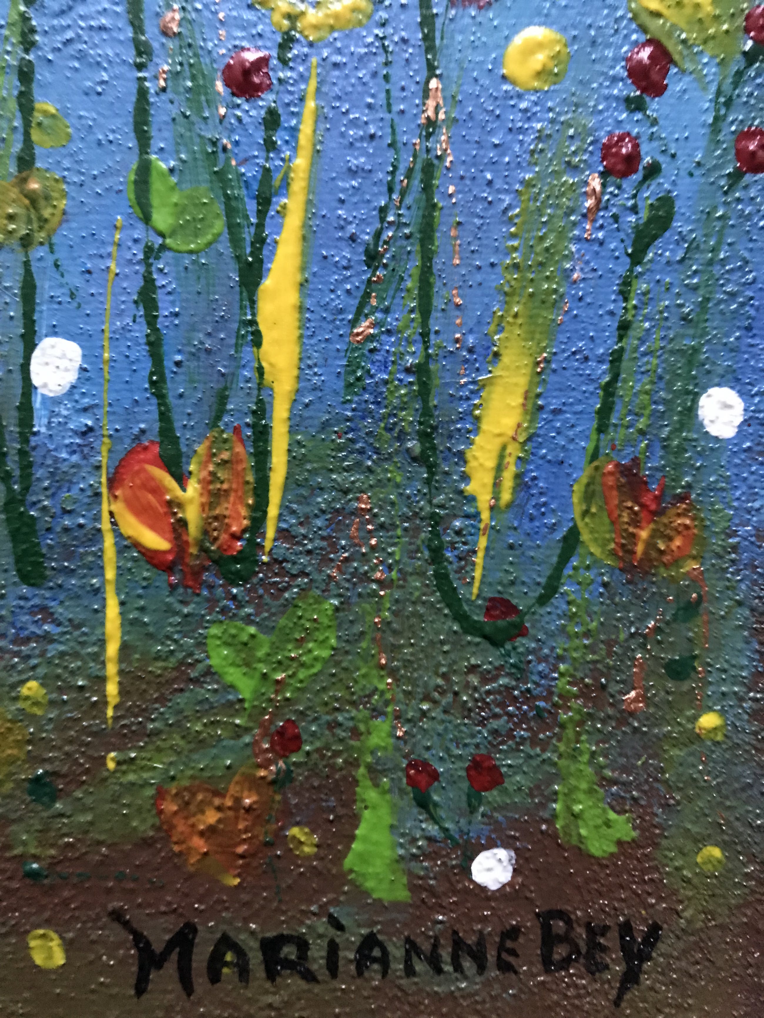 Een uniek gestileerd doek van Marianne Bey Unica en gesigneerd Hand beschilderd Met certificaat van echtheid Alle Marianne Bey items worden aangetekend verstuurd
